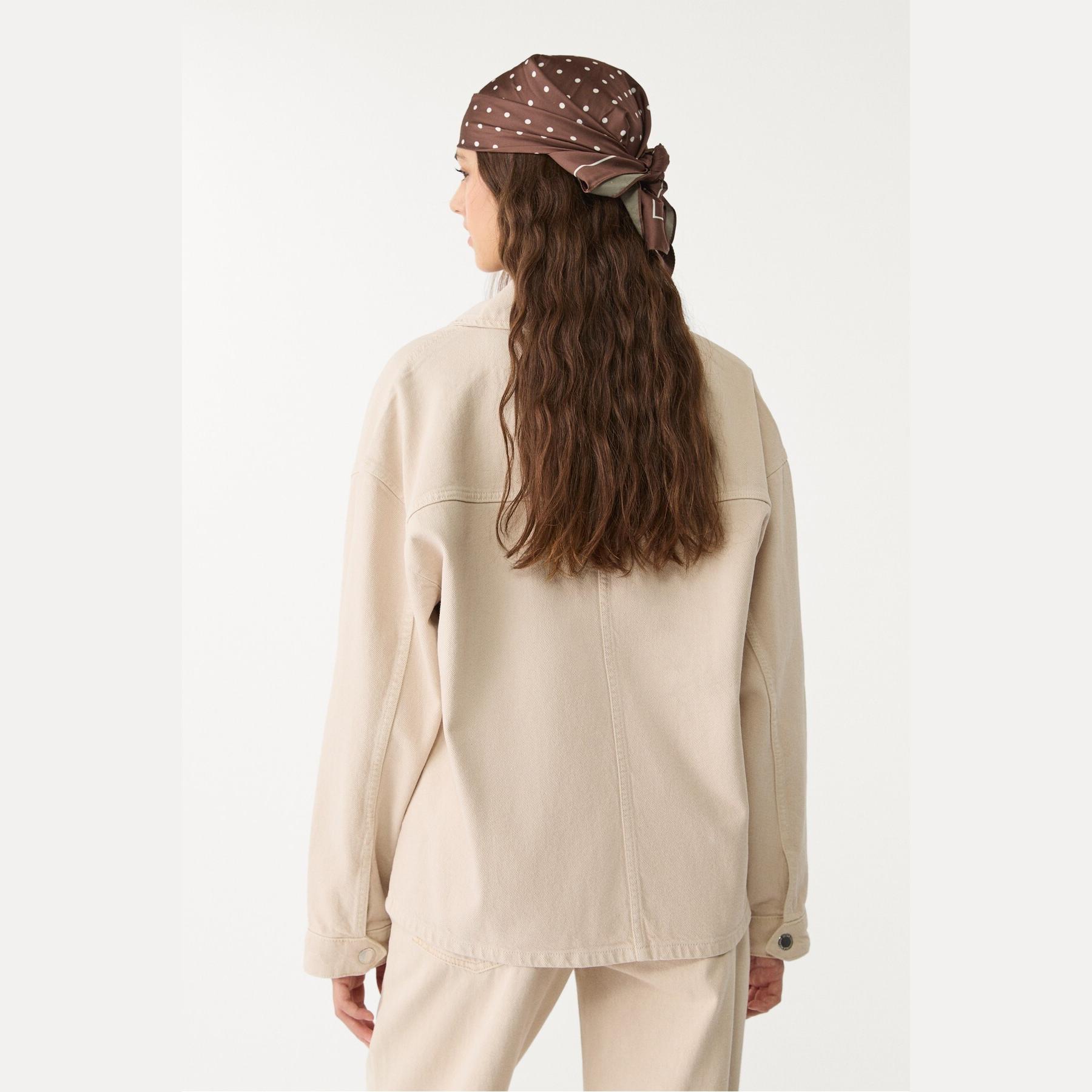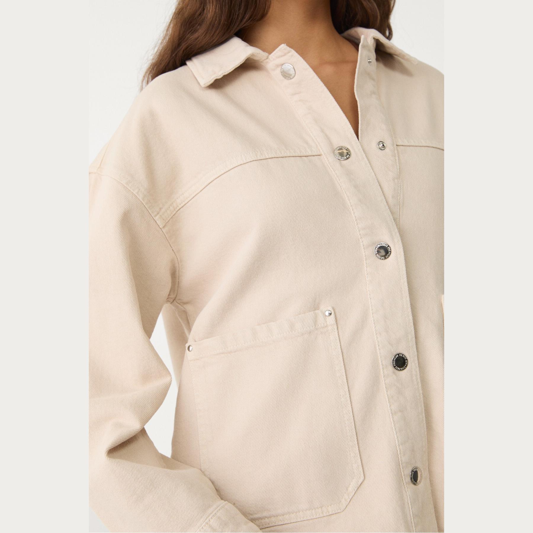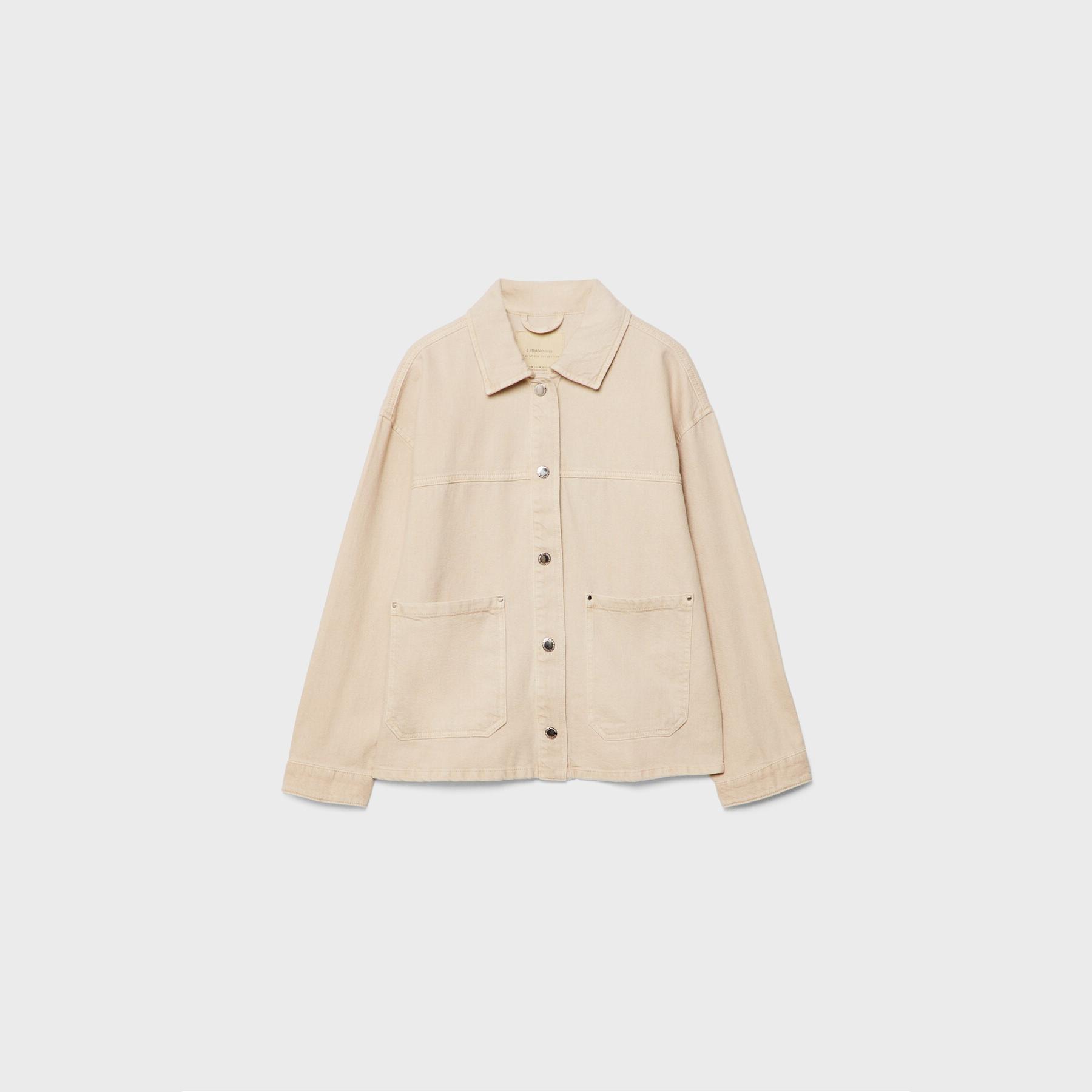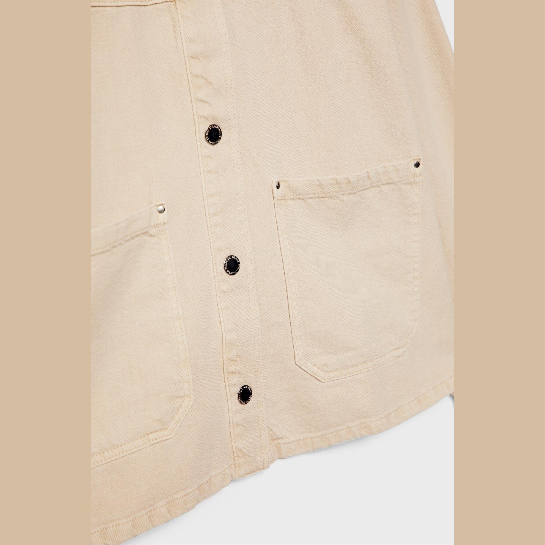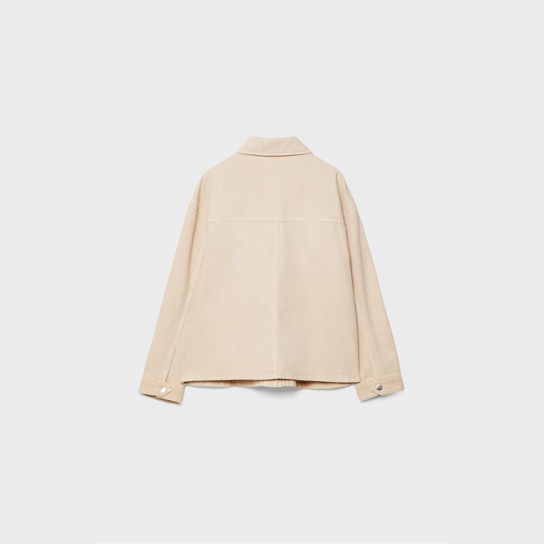 جاكيت أنيق من Stradivarius بلون كريمي، مصنوع من خامة قطنية بتركيبة 100% قطن، يتميز بقصة Regular Fit، ياقة كلاسيكية، أكمام طويلة، إغلاق أمامي بأزرار معدنية، مزود بجيوب أمامية بارزة، تصميم سادة بملمس مخطط بارز (fitilli)، بدون بطانة، ملمس داخلي ناعم، مثالي للتنسيق مع بنطال رسمي أو كاجوال لإطلالة خريفية أو يومية مريحة.