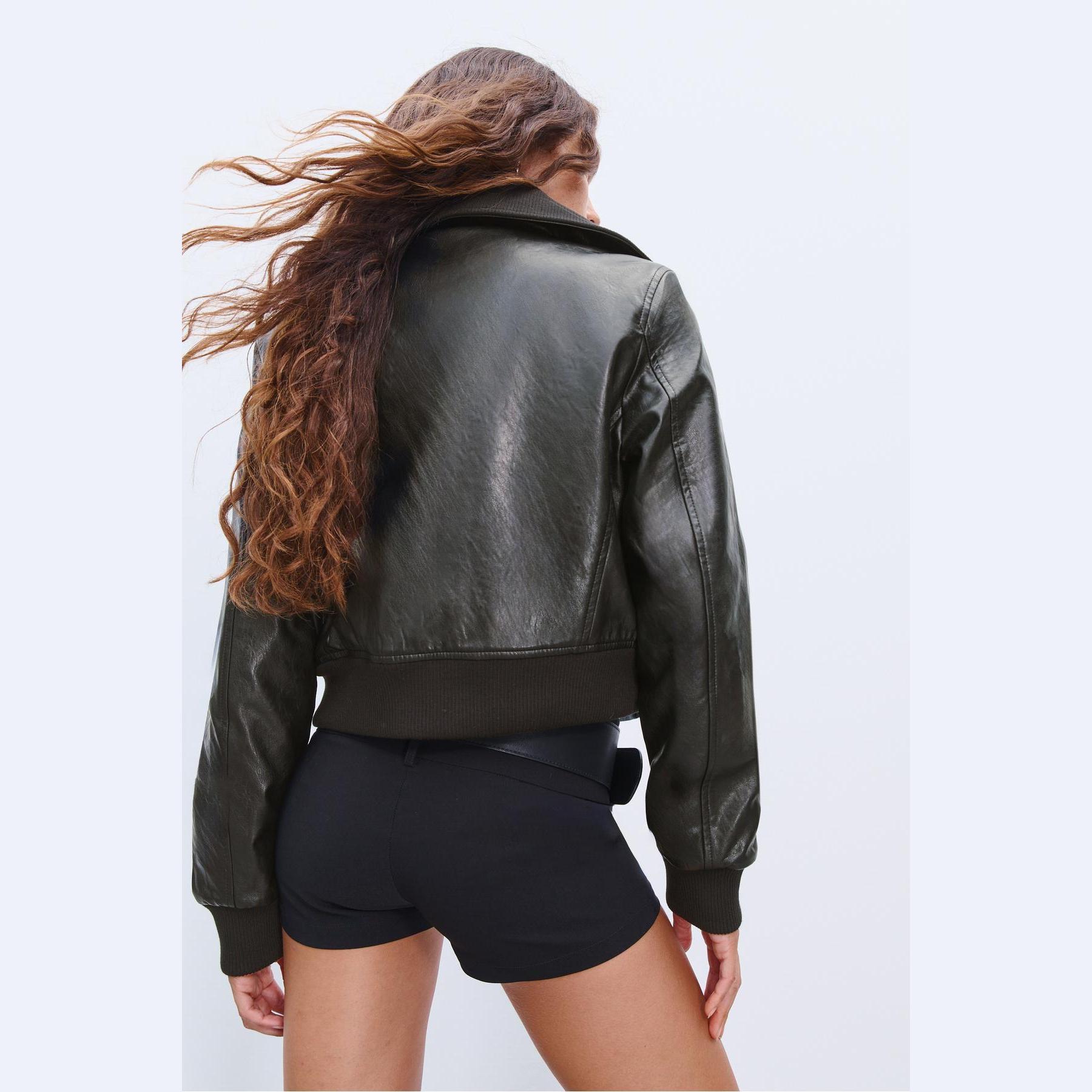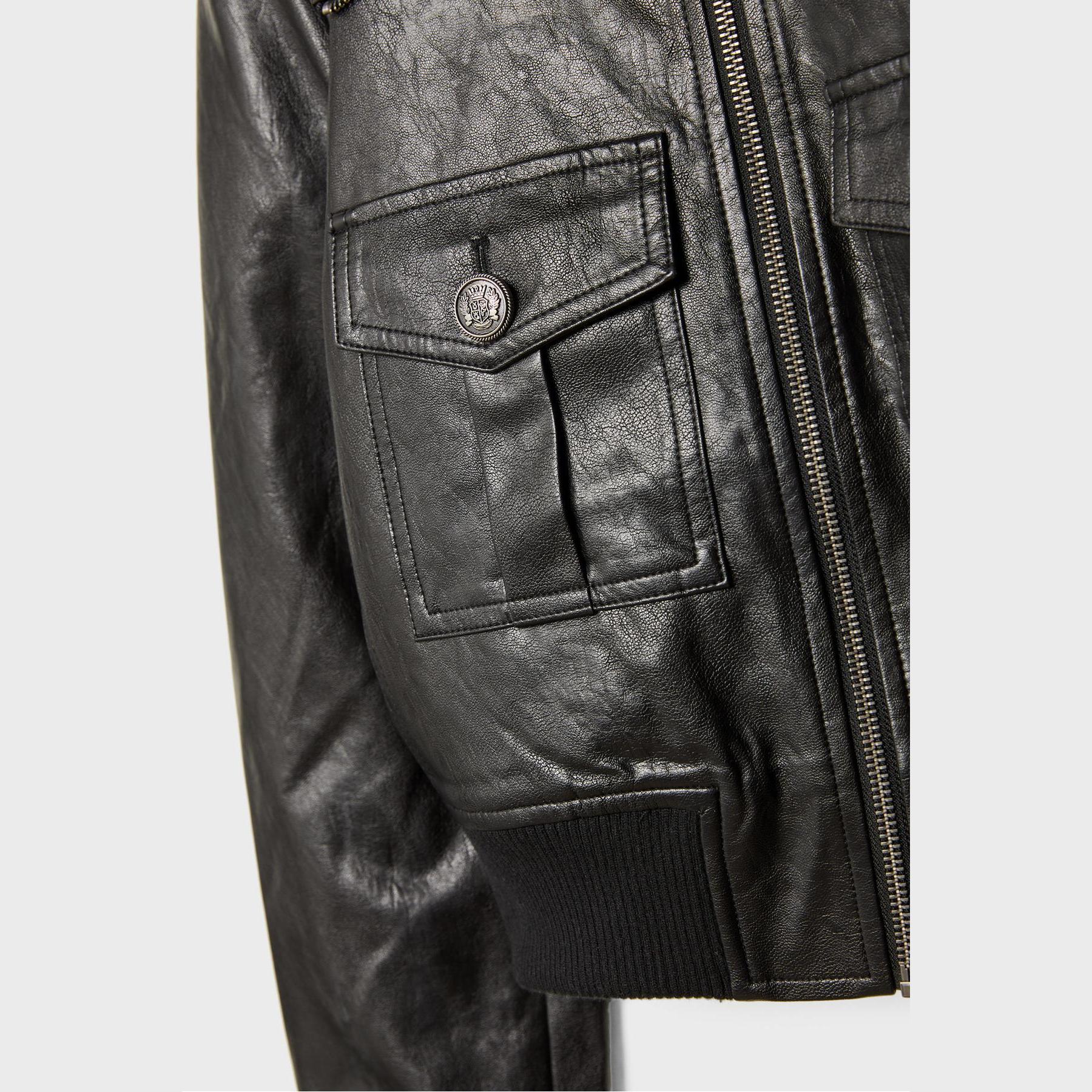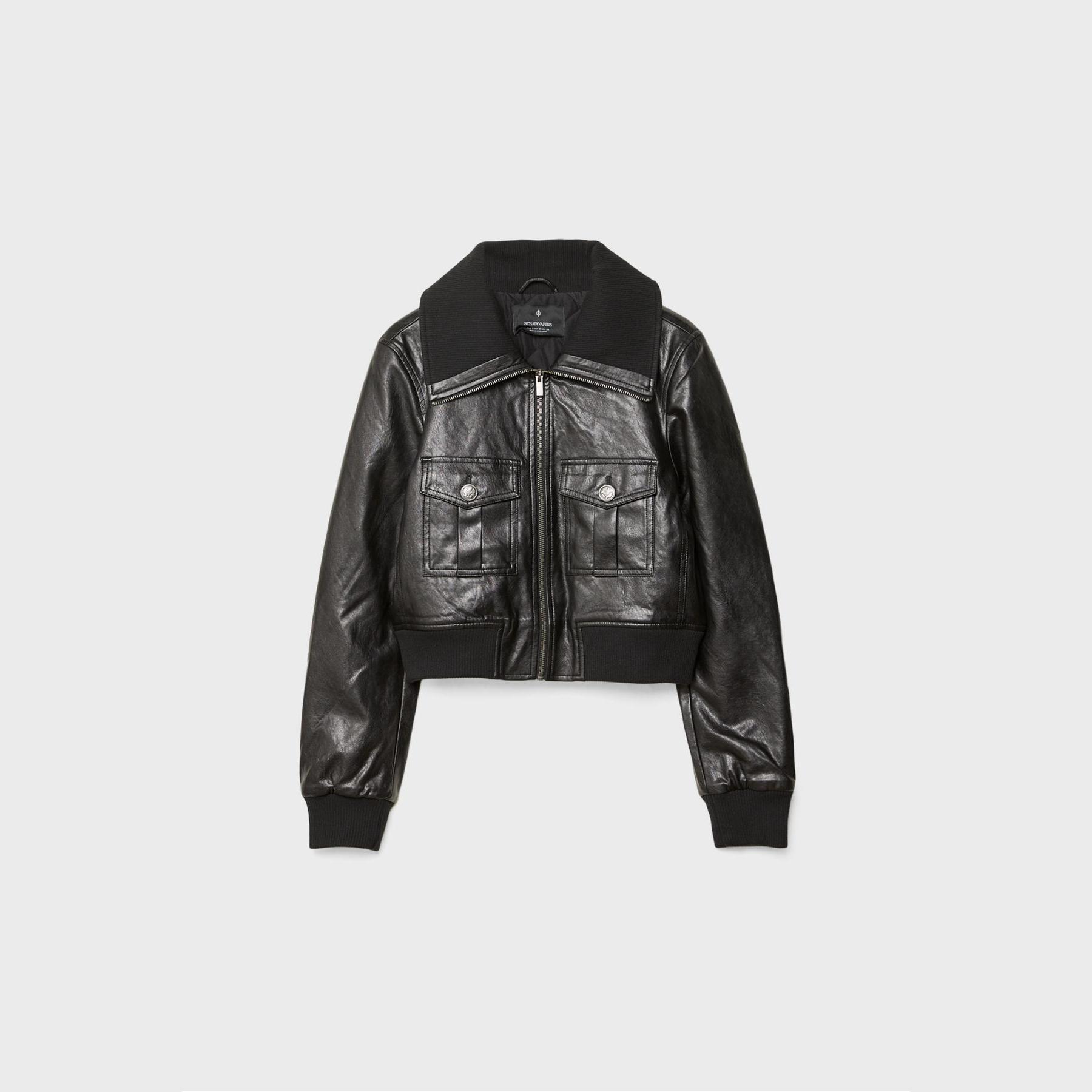 جاكيت قصير من الجلد الصناعي بجيوب أمامية – أسود من Stradivarius