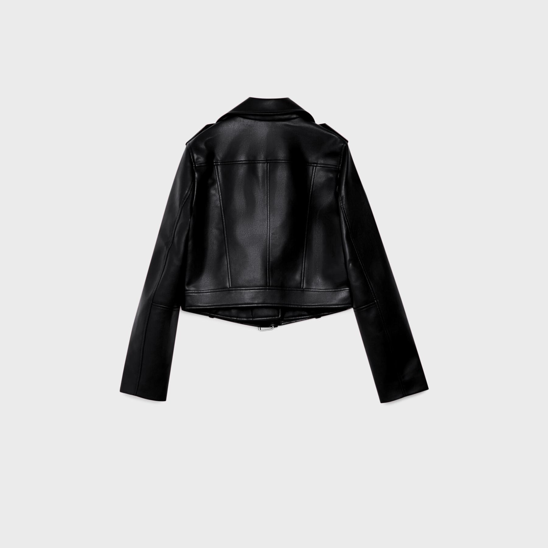 جاكيت بايكر من الجلد الصناعي مع حزام – أسود من Stradivarius