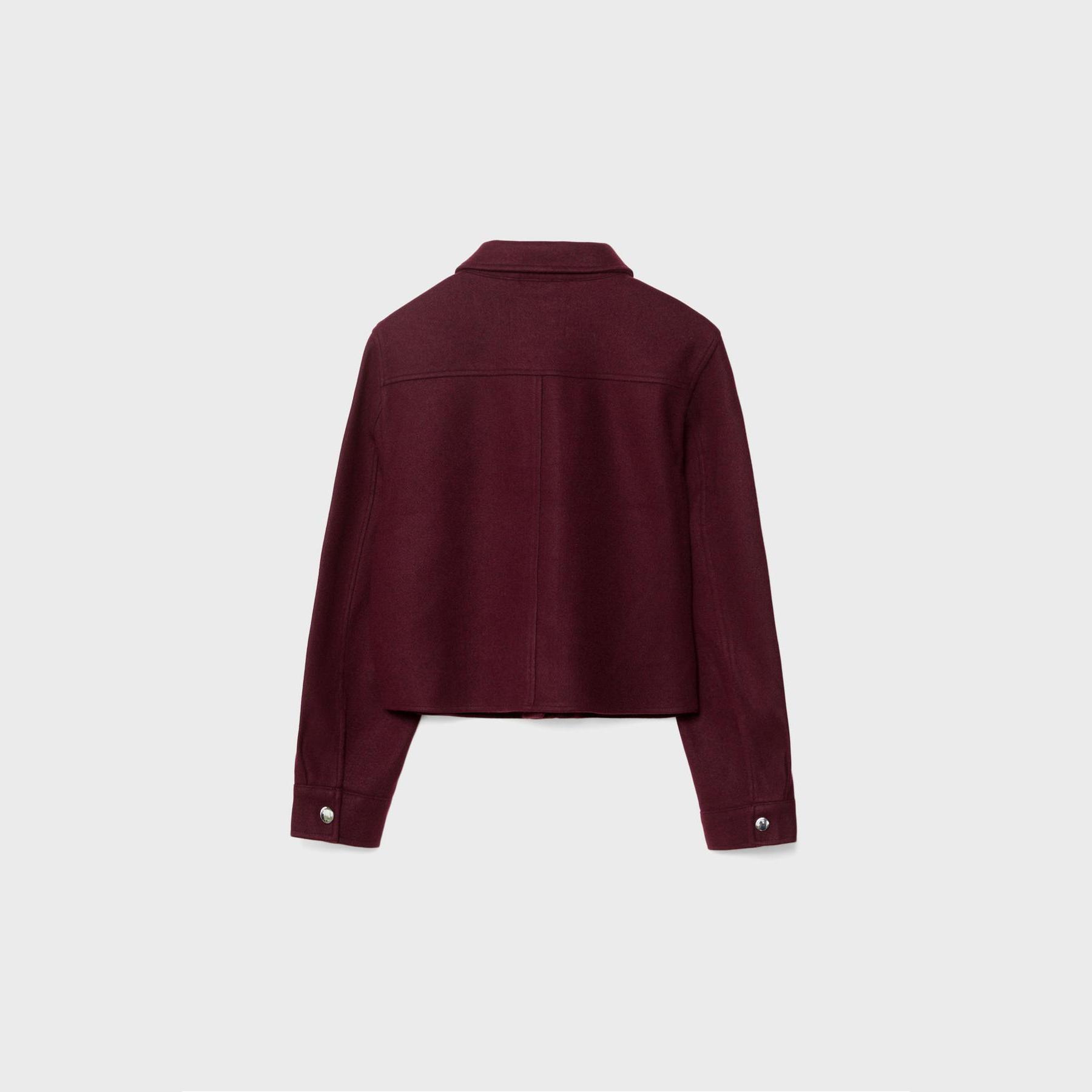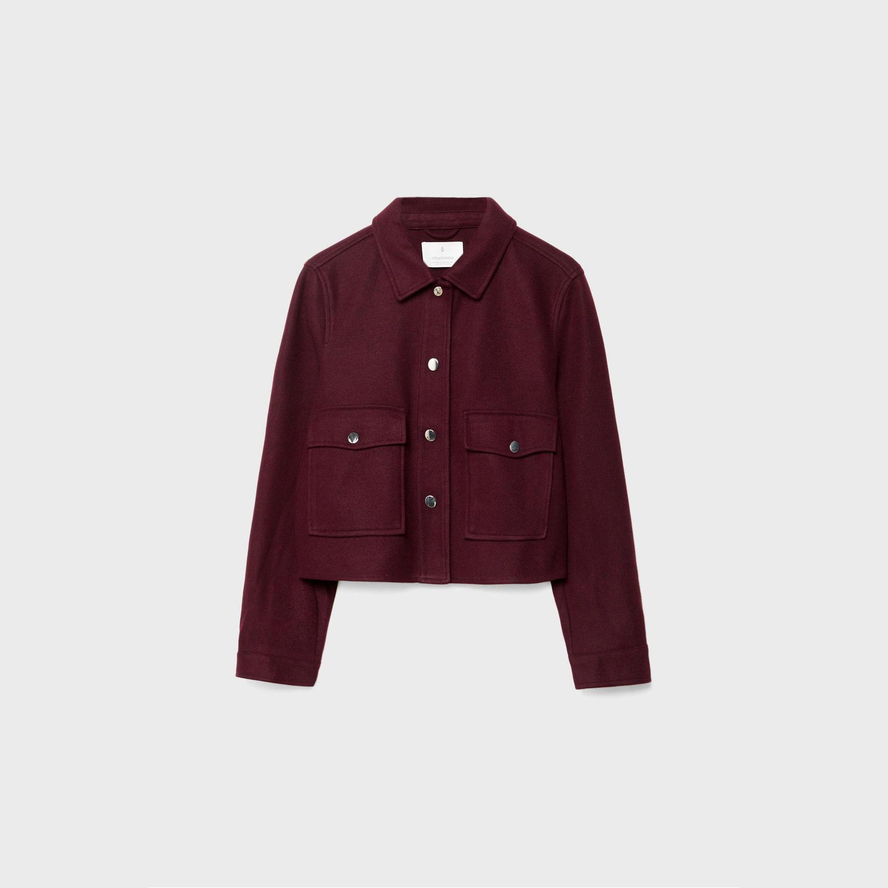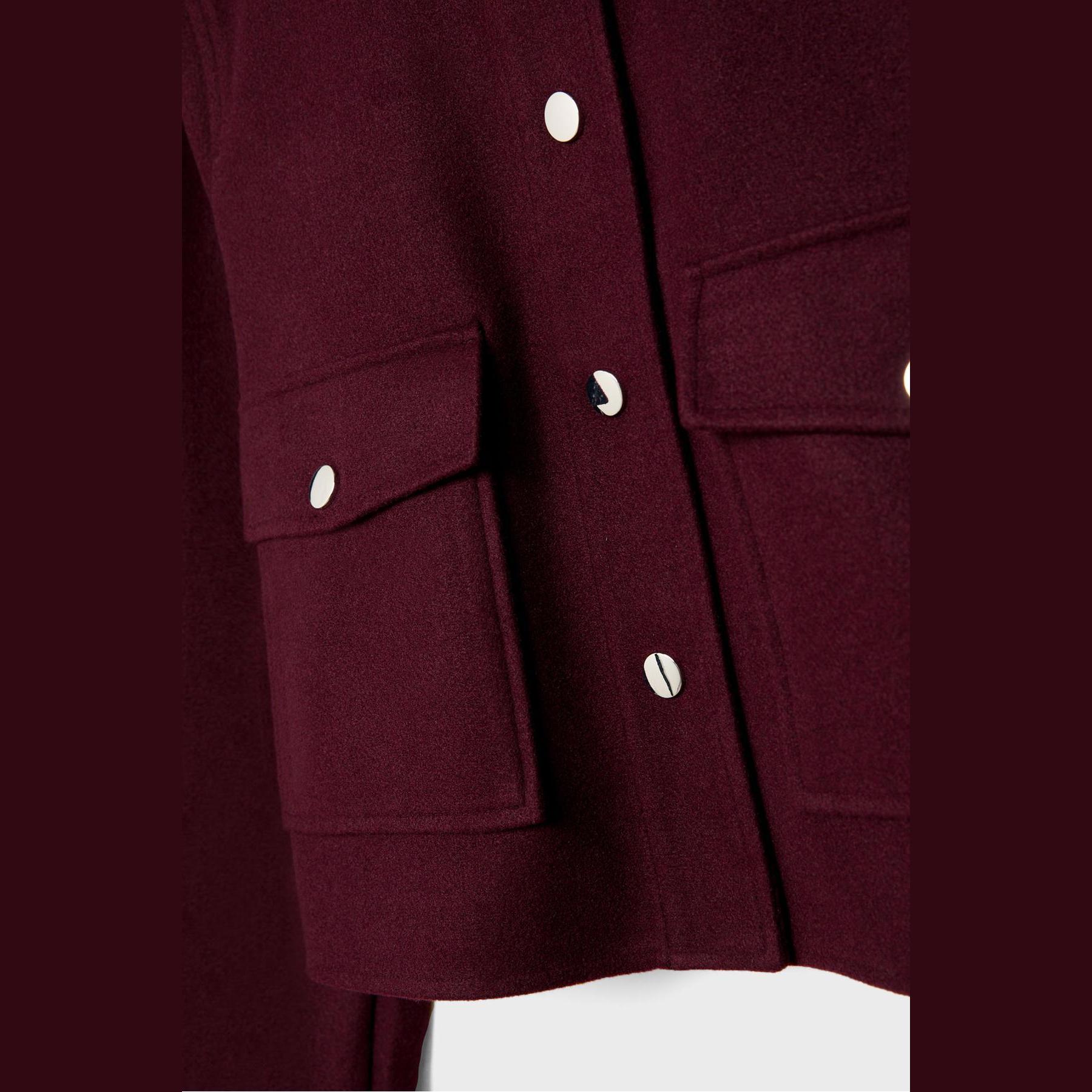 جاكيت عملي من Stradivarius بلون بوردو بنقشة مربعات، مصنوع من خامة ناعمة بتركيبة 100% بوليستر، يتميز بقصة مستقيمة Straight Fit، ياقة كلاسيكية، أكمام طويلة، إغلاق أمامي بأزرار كبس، مزود بجيبين أماميين بغطاء، تصميم بملمس مخملي ناعم، بدون بطانة، مثالي للتنسيق مع بنطال جينز أو تنورة قصيرة لإطلالة يومية دافئة.