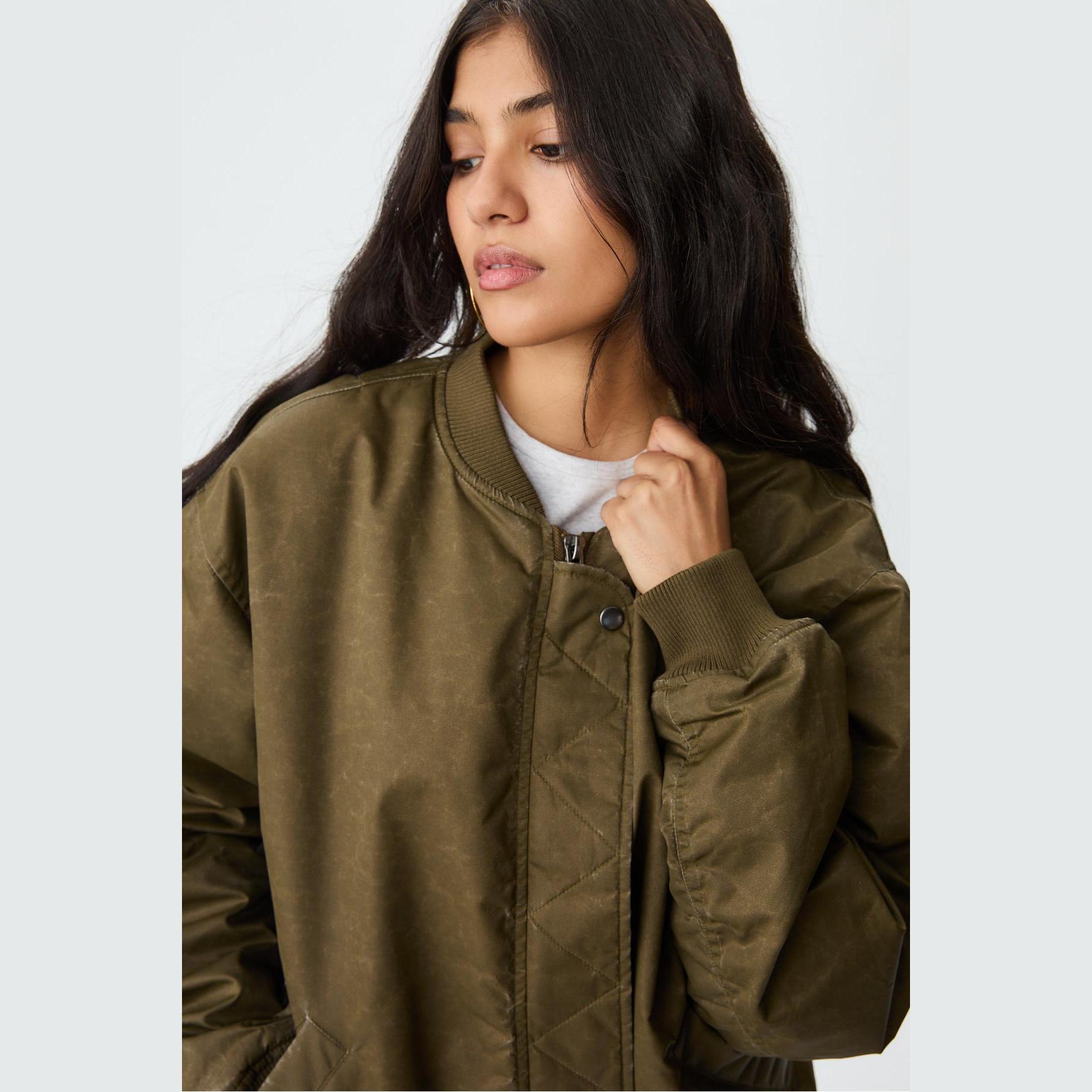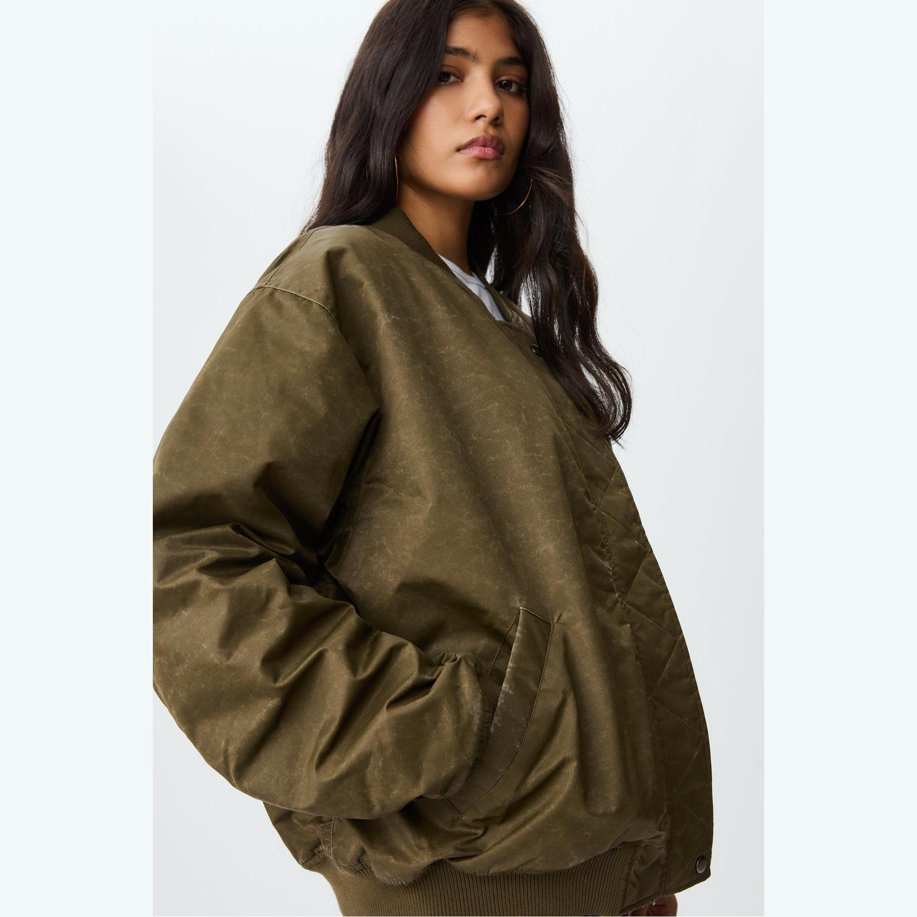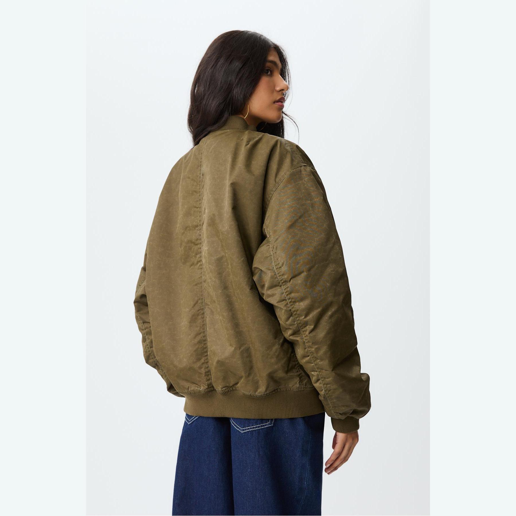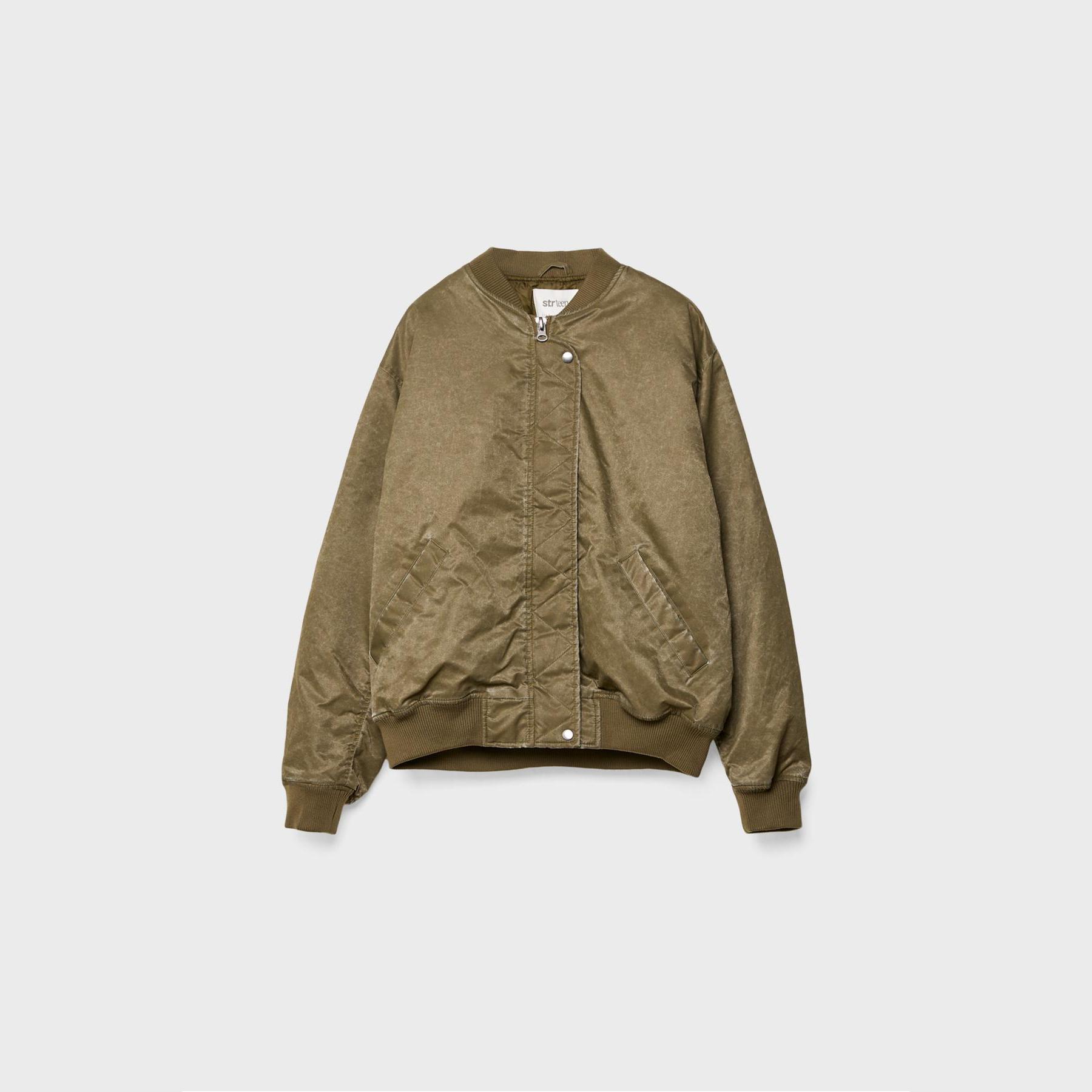 جاكيت بومبر بملمس مغسول – أخضر داكن من Stradivarius