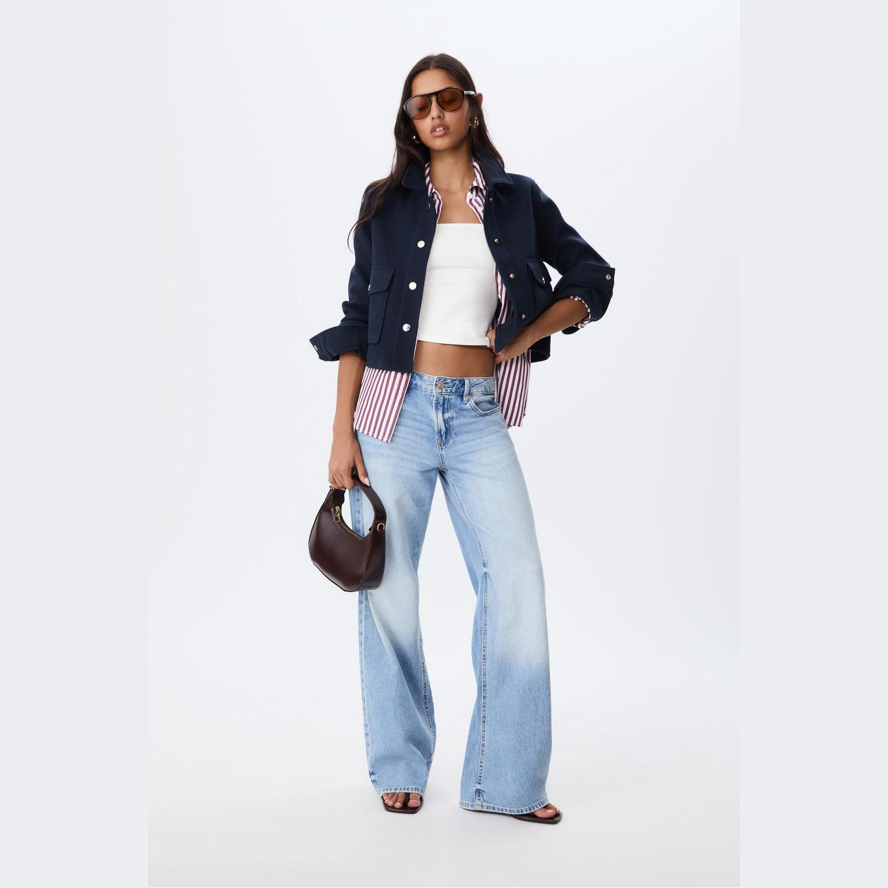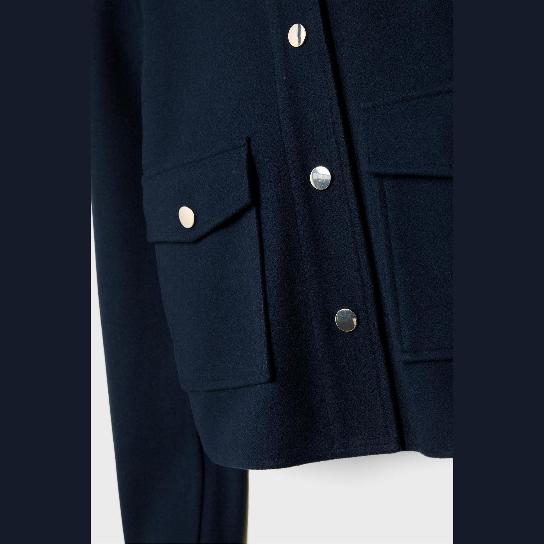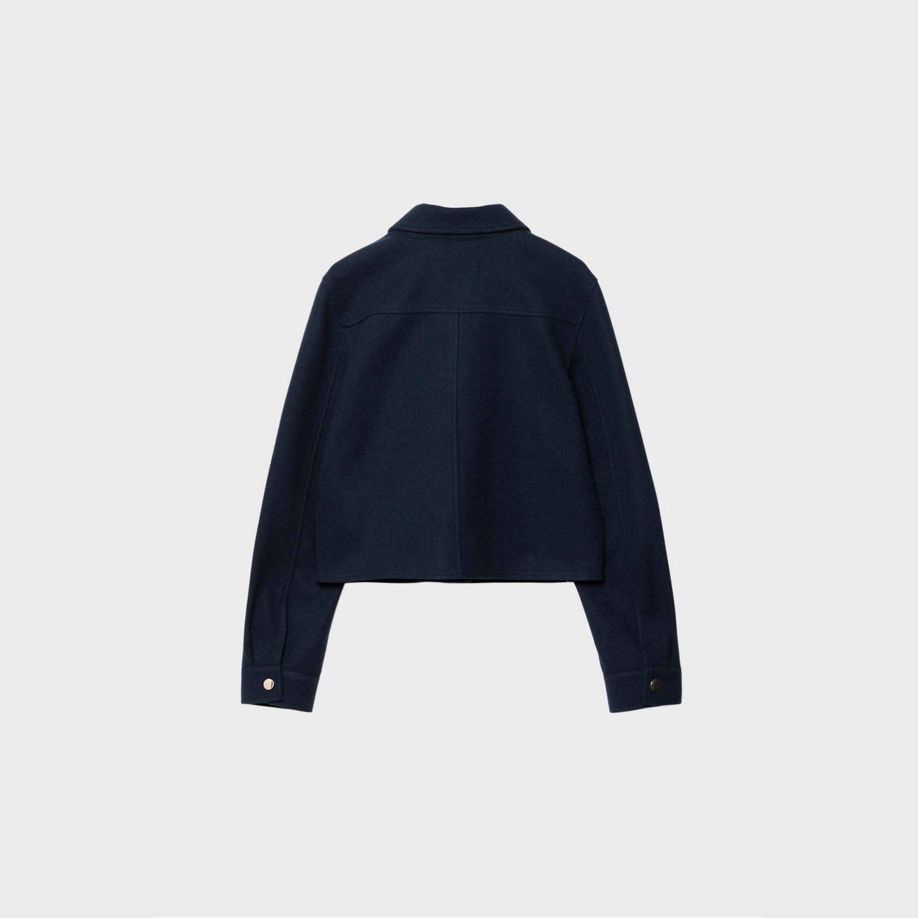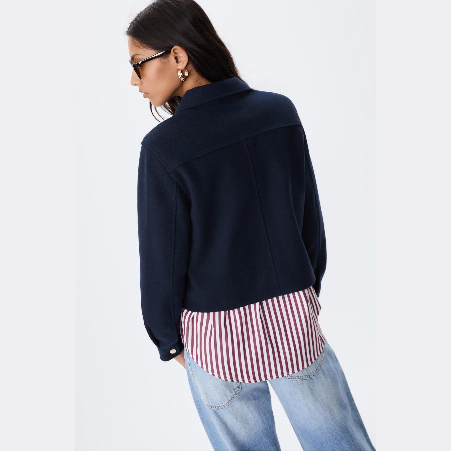 جاكيت عملي من Stradivarius بلون كحلي بنقشة مربعات، مصنوع من خامة ناعمة بتركيبة 100% بوليستر، يتميز بقصة Regular Fit، ياقة قميص كلاسيكية، أكمام طويلة مع أساور، إغلاق أمامي بأزرار كبس، مزود بجيوب أمامية بغطاء، تصميم بملمس مخملي ناعم، بدون بطانة، مثالي للتنسيق مع بنطال جينز أو تنورة قصيرة لإطلالة يومية دافئة.
