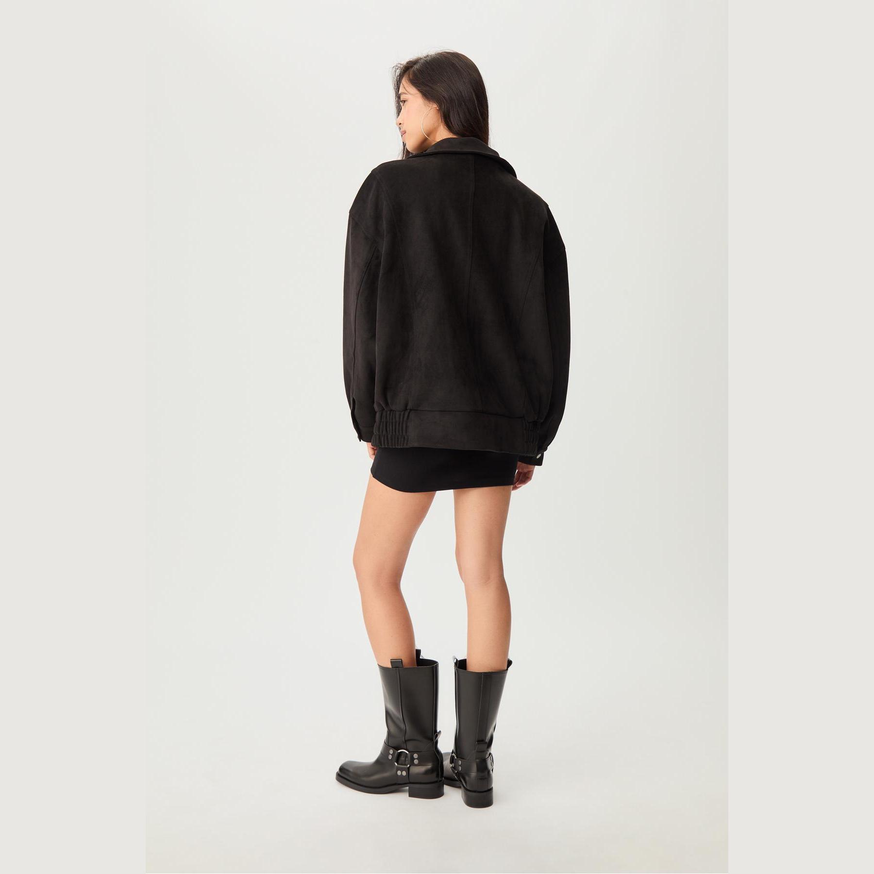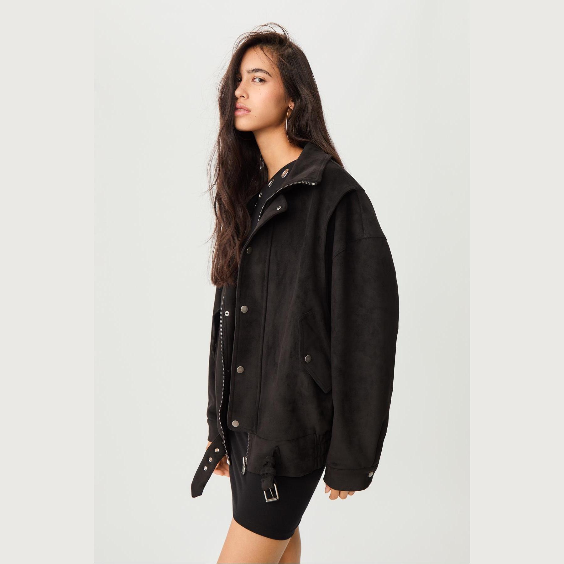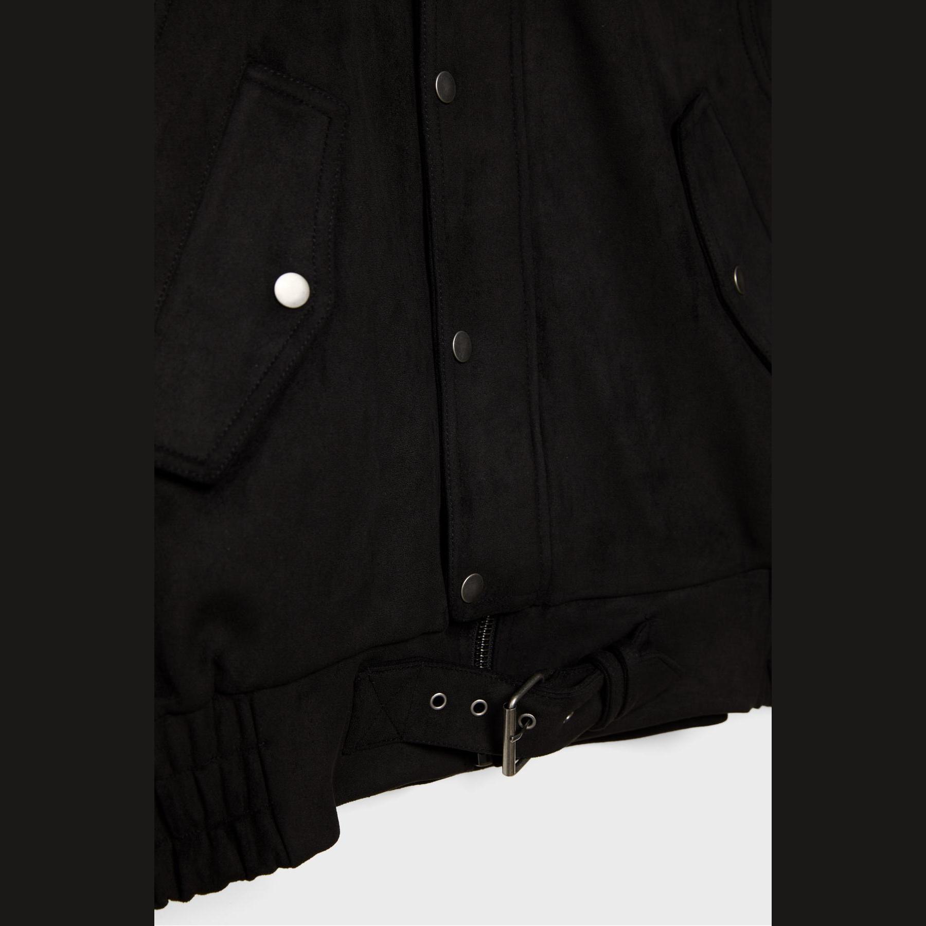 جاكيت بايكر من الشمواه الصناعي – أسود من Stradivarius