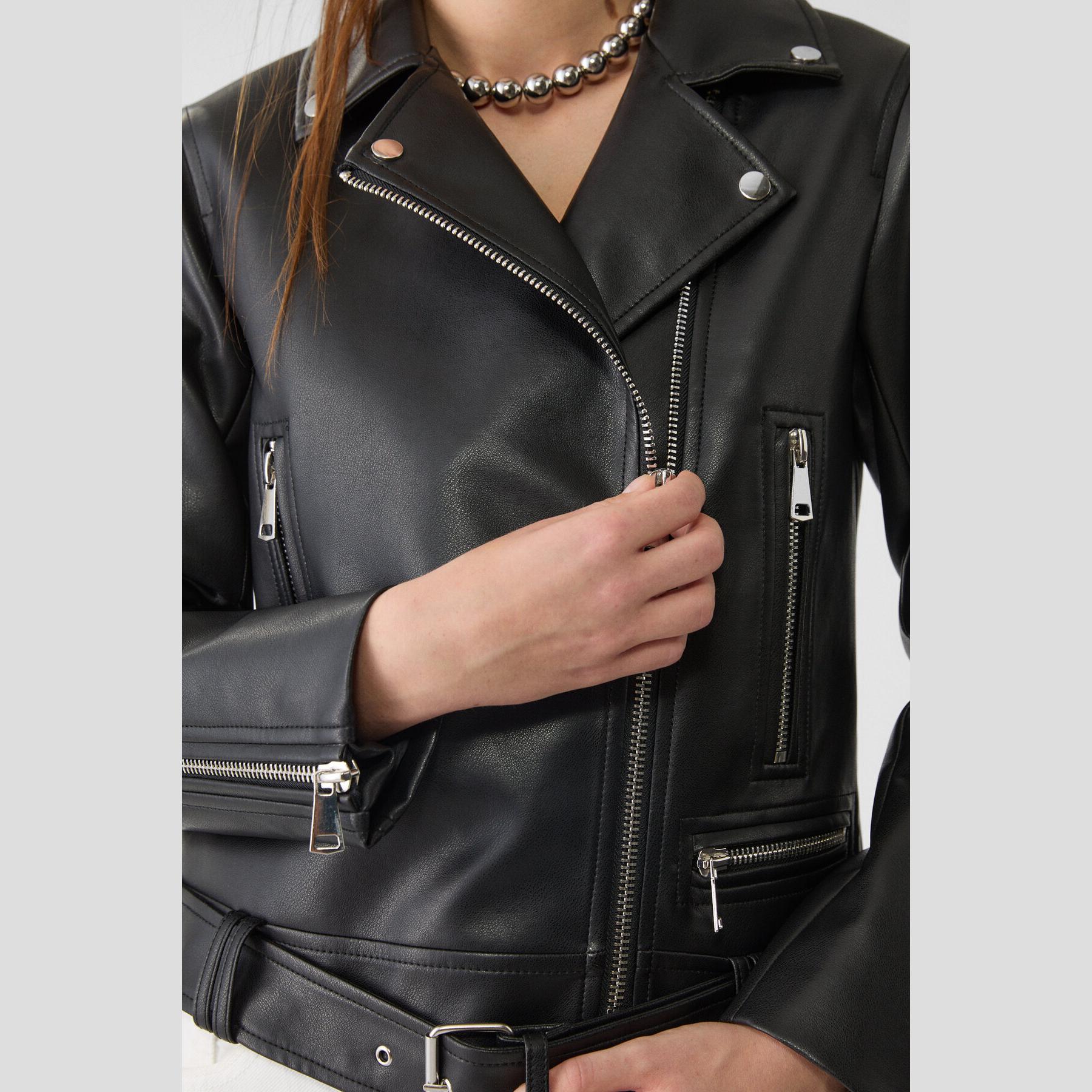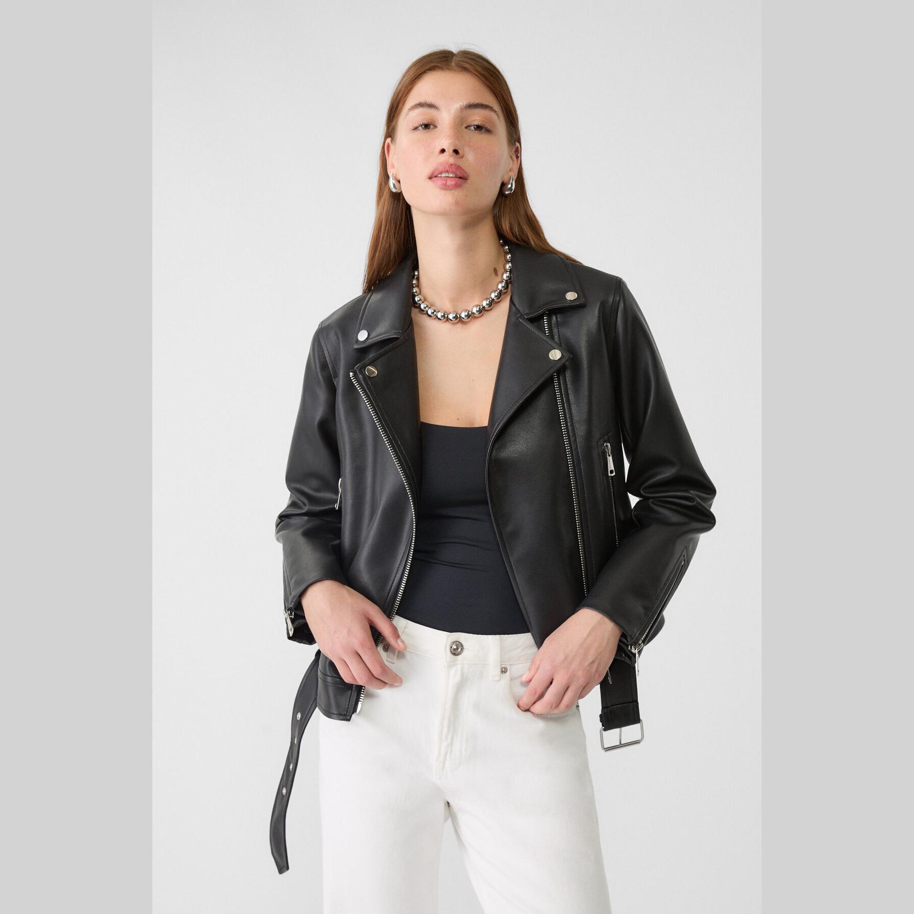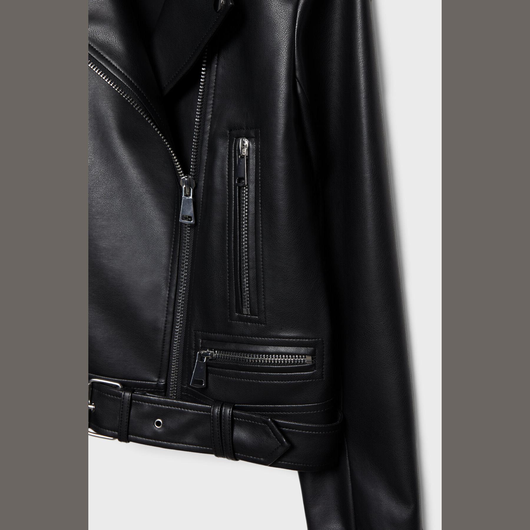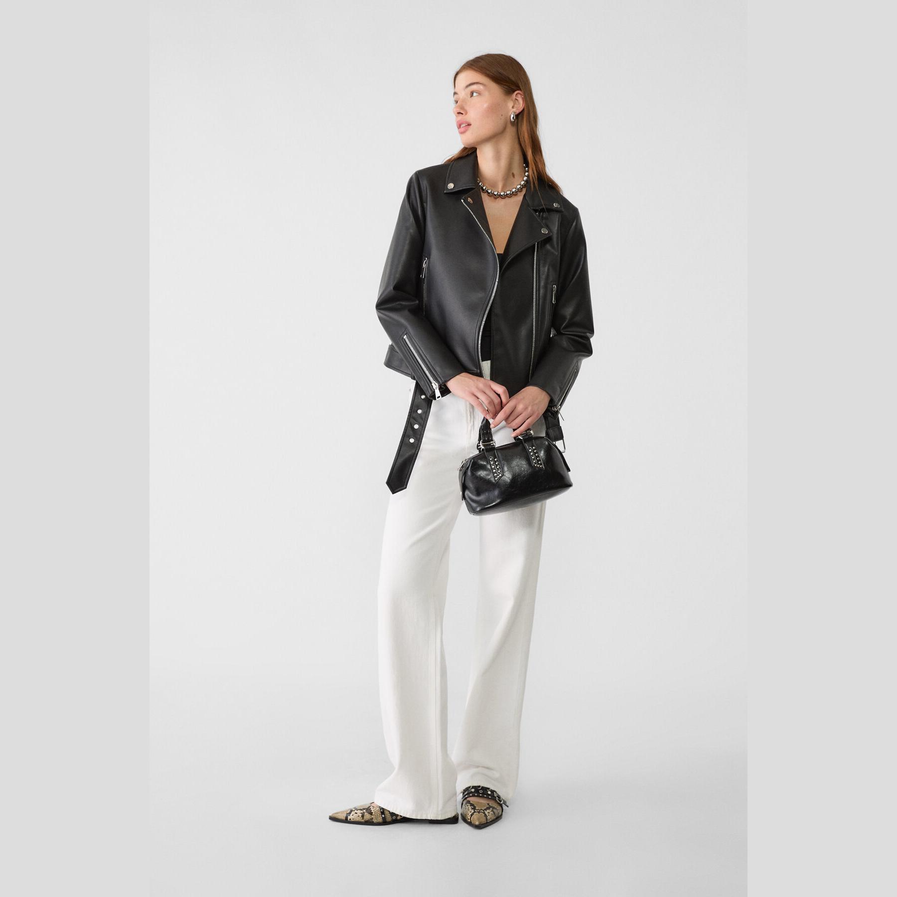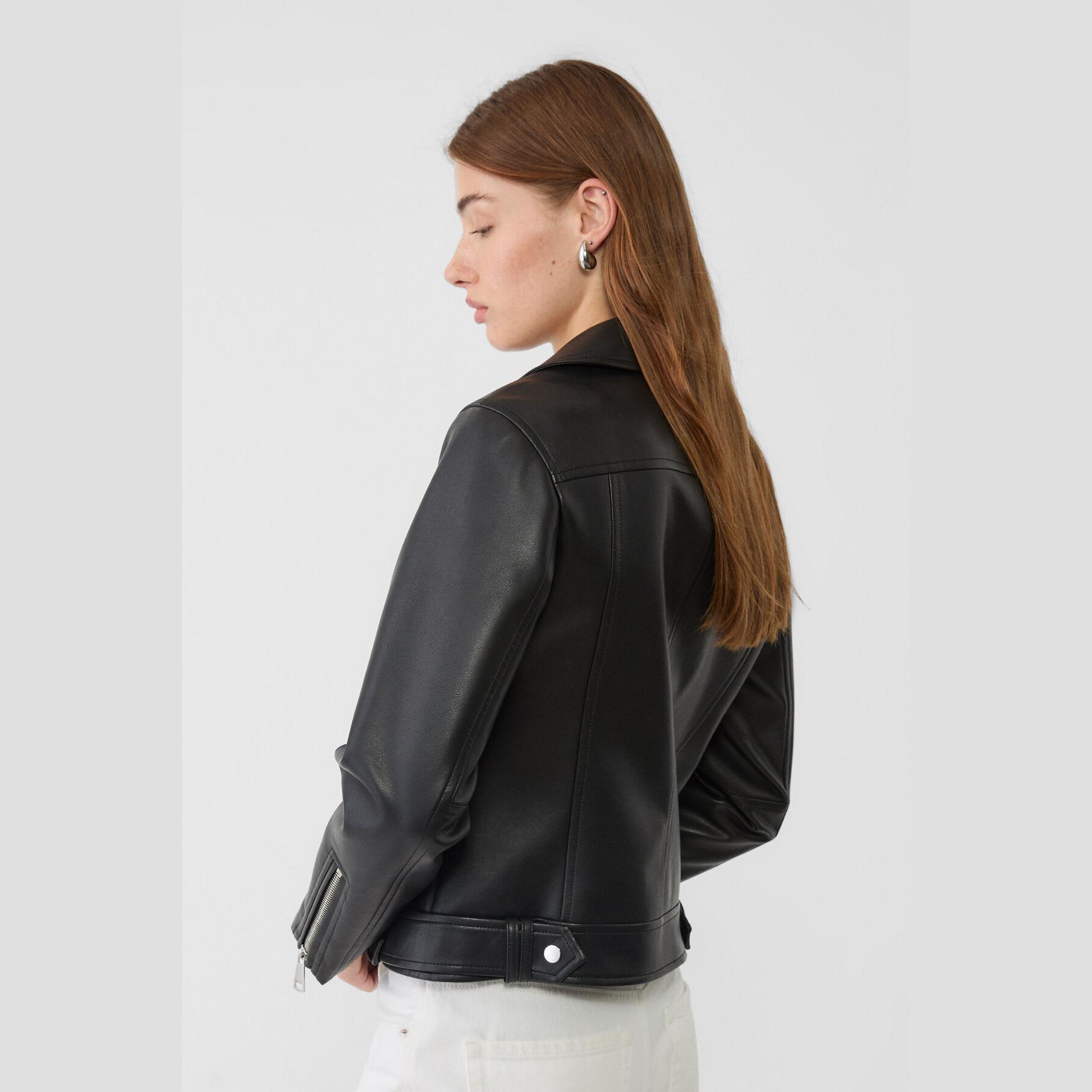 جاكيت بايكر من الجلد الصناعي – أسود من Stradivarius