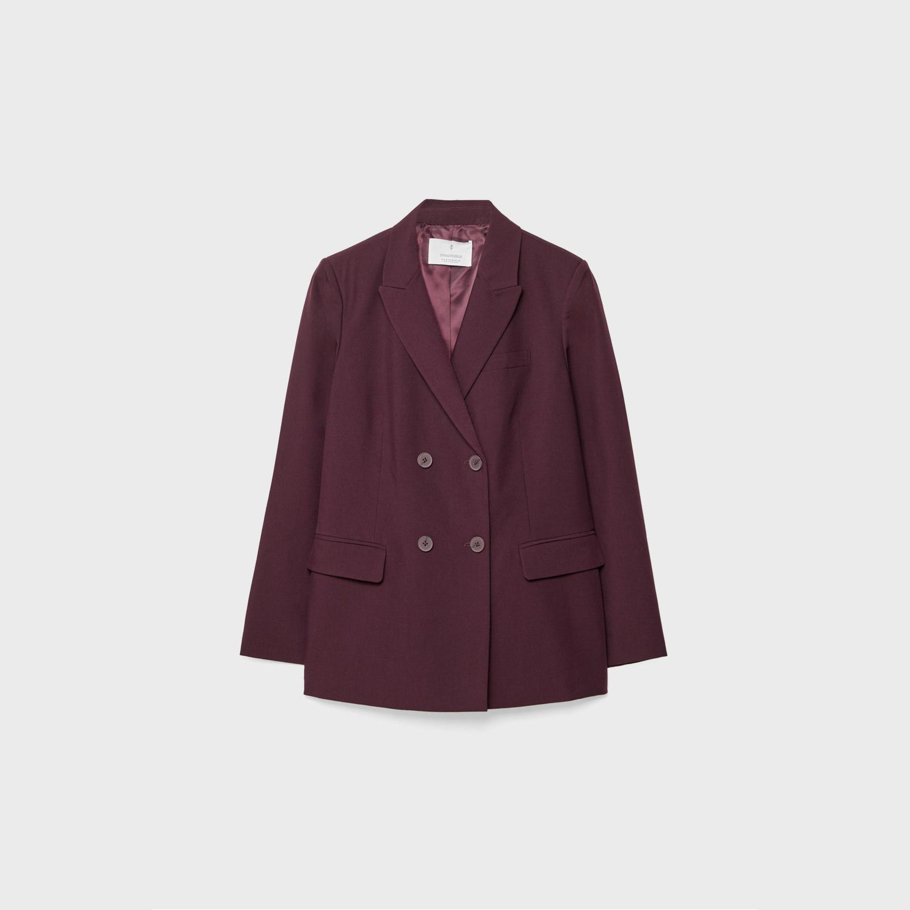 بليزر كروڤاز بأزرار مزدوجة – بوردو بنقشة مربعات من Stradivarius