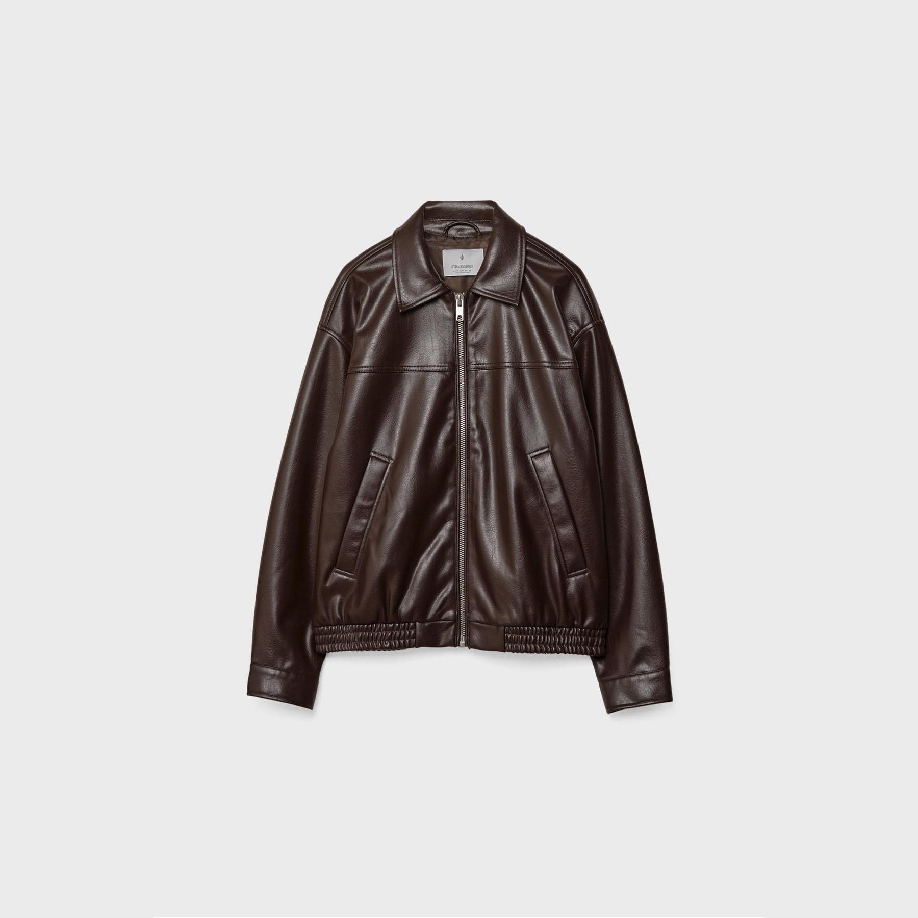 جاكيت واسع من الجلد الصناعي – بني من Stradivarius