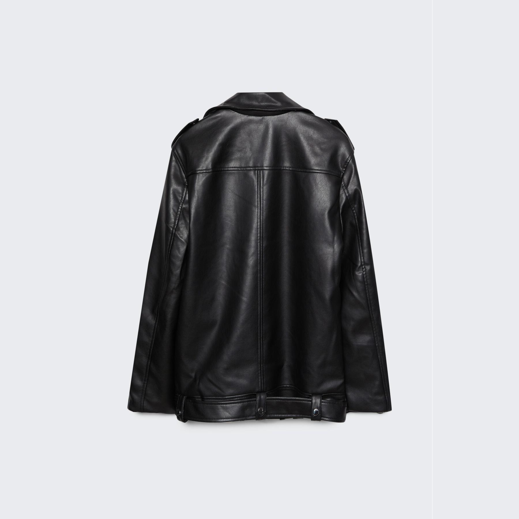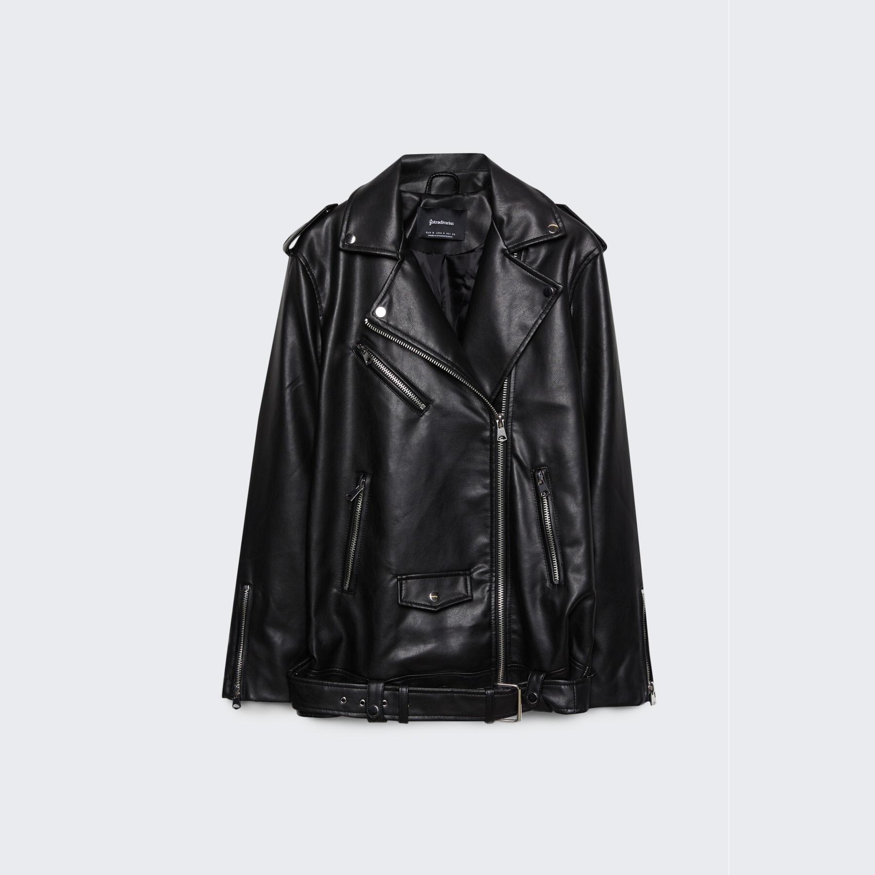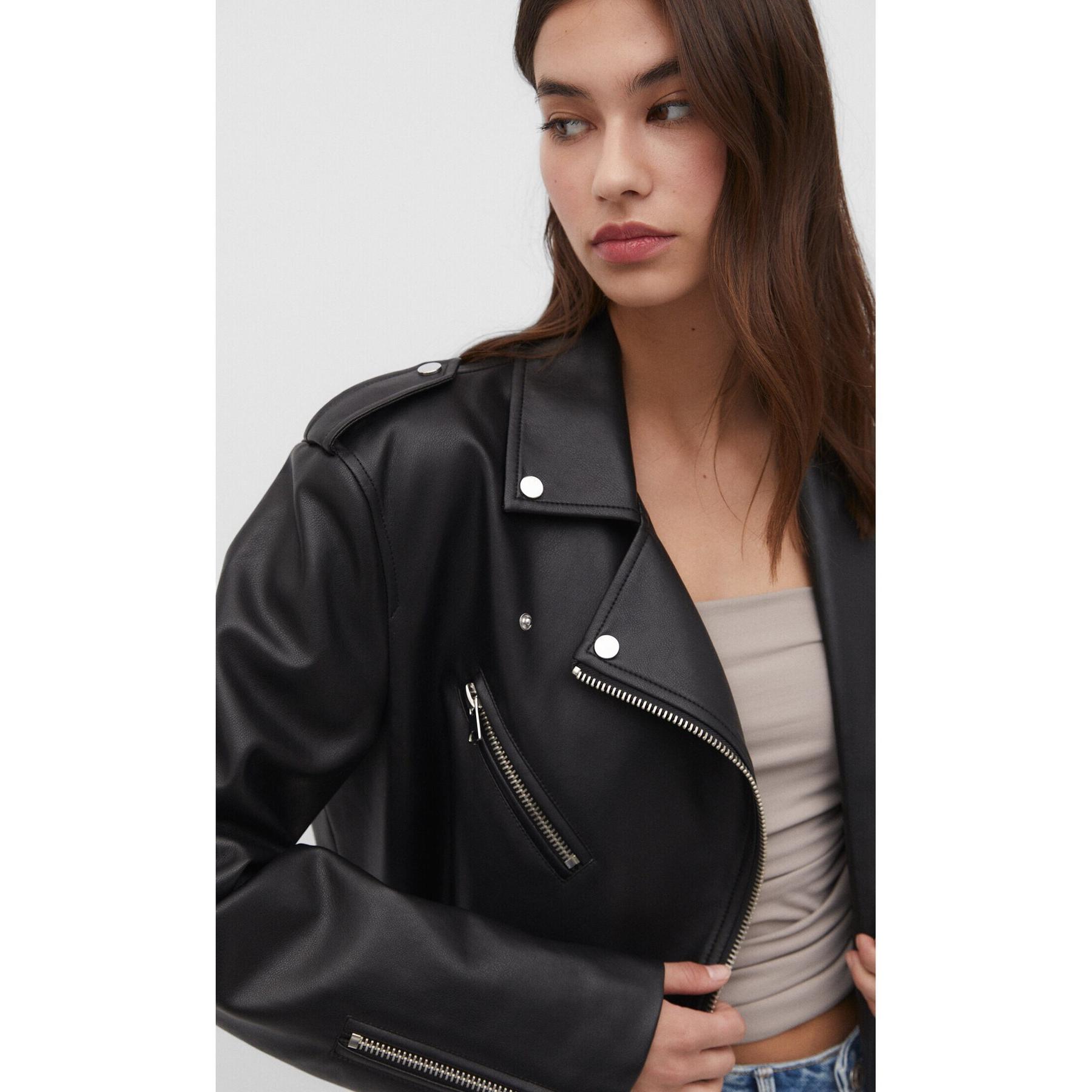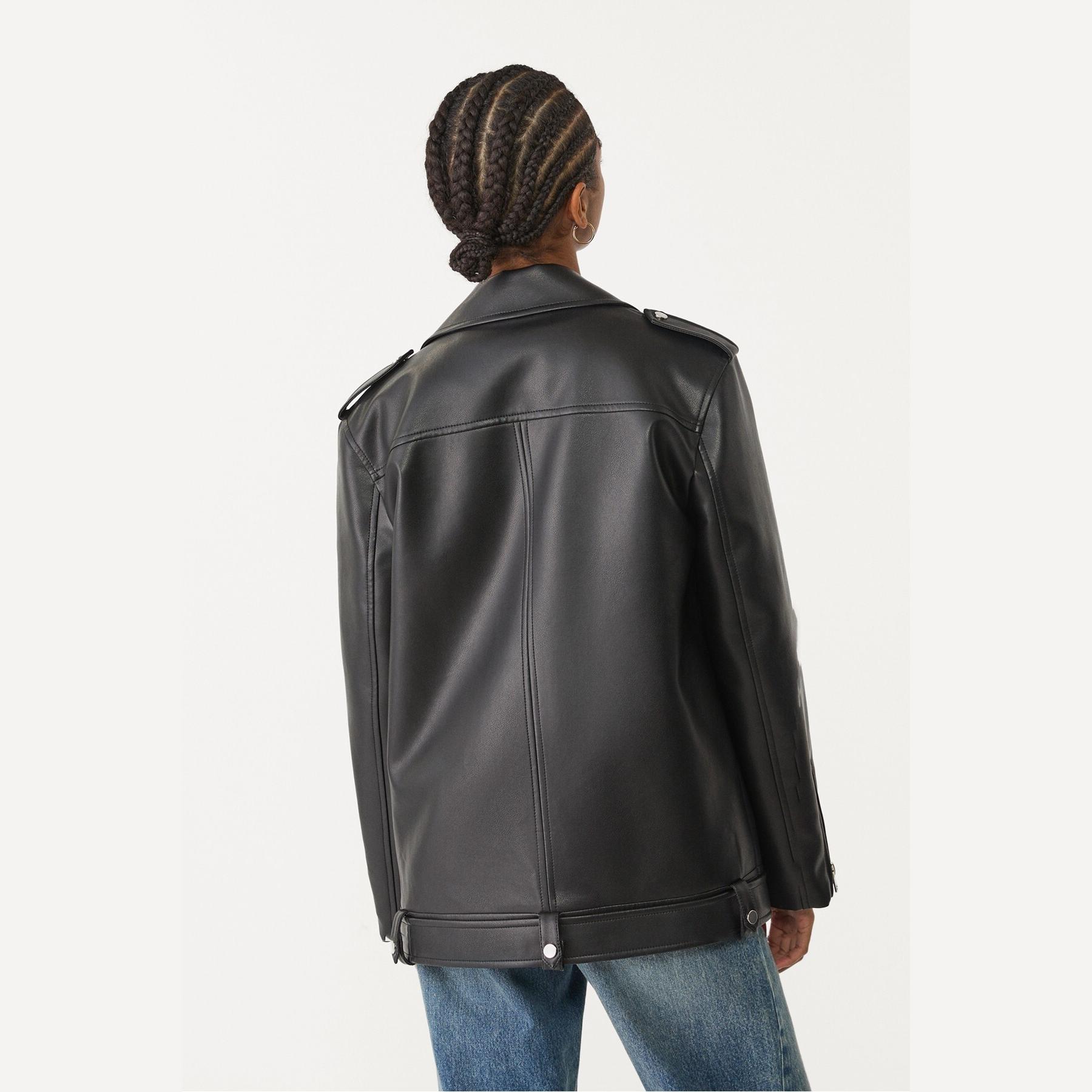 جاكيت بايكر واسع من الجلد الصناعي – أسود من Stradivarius