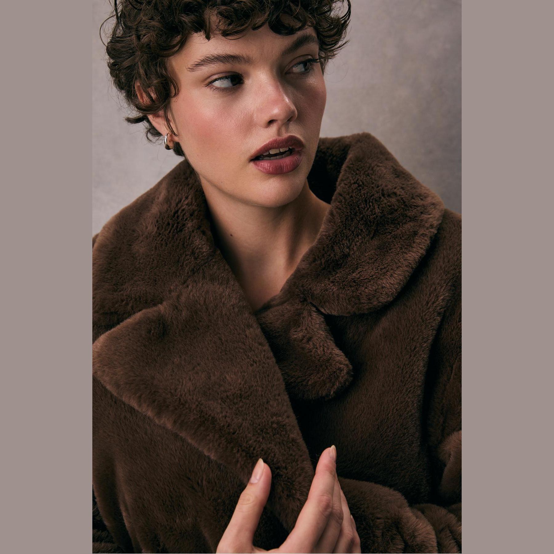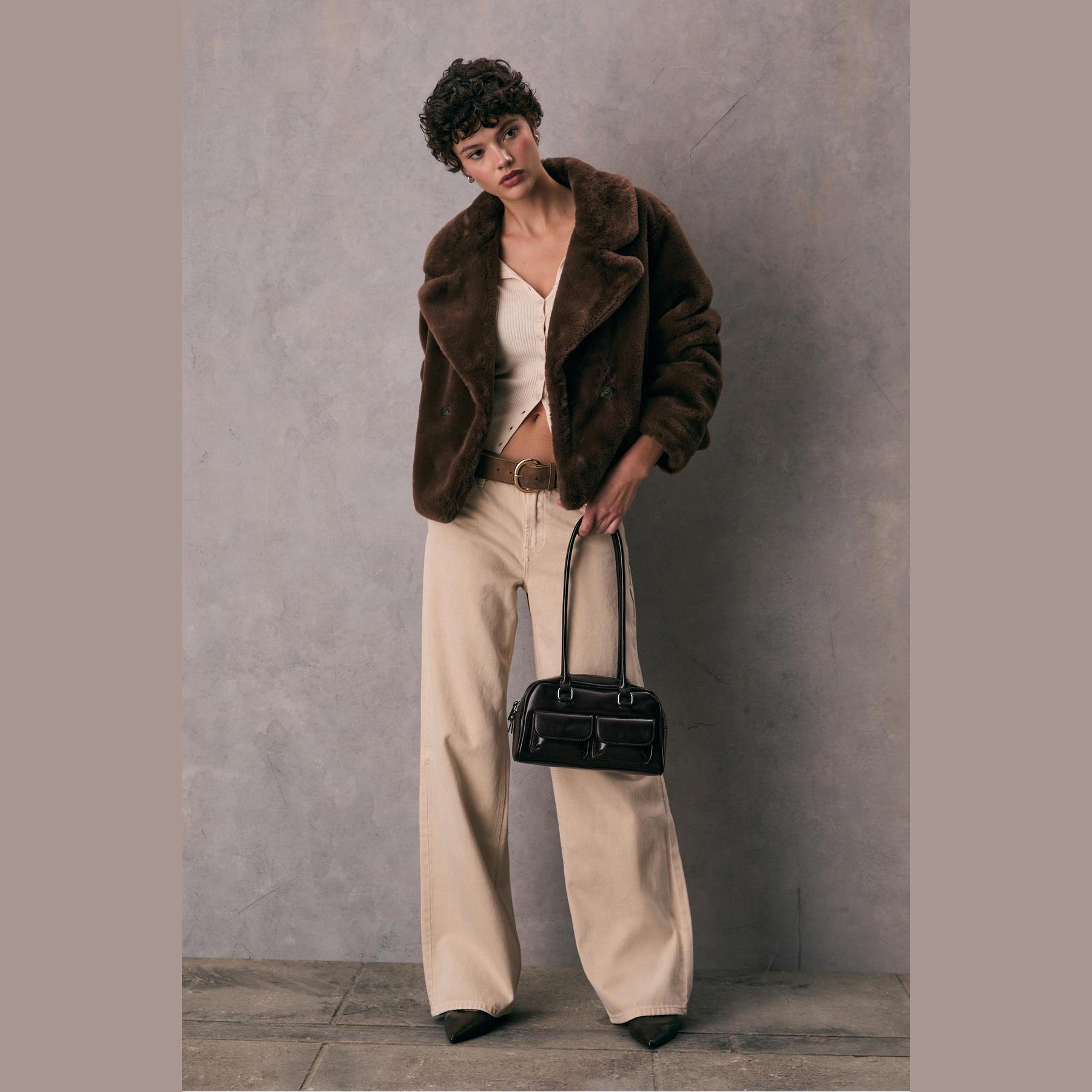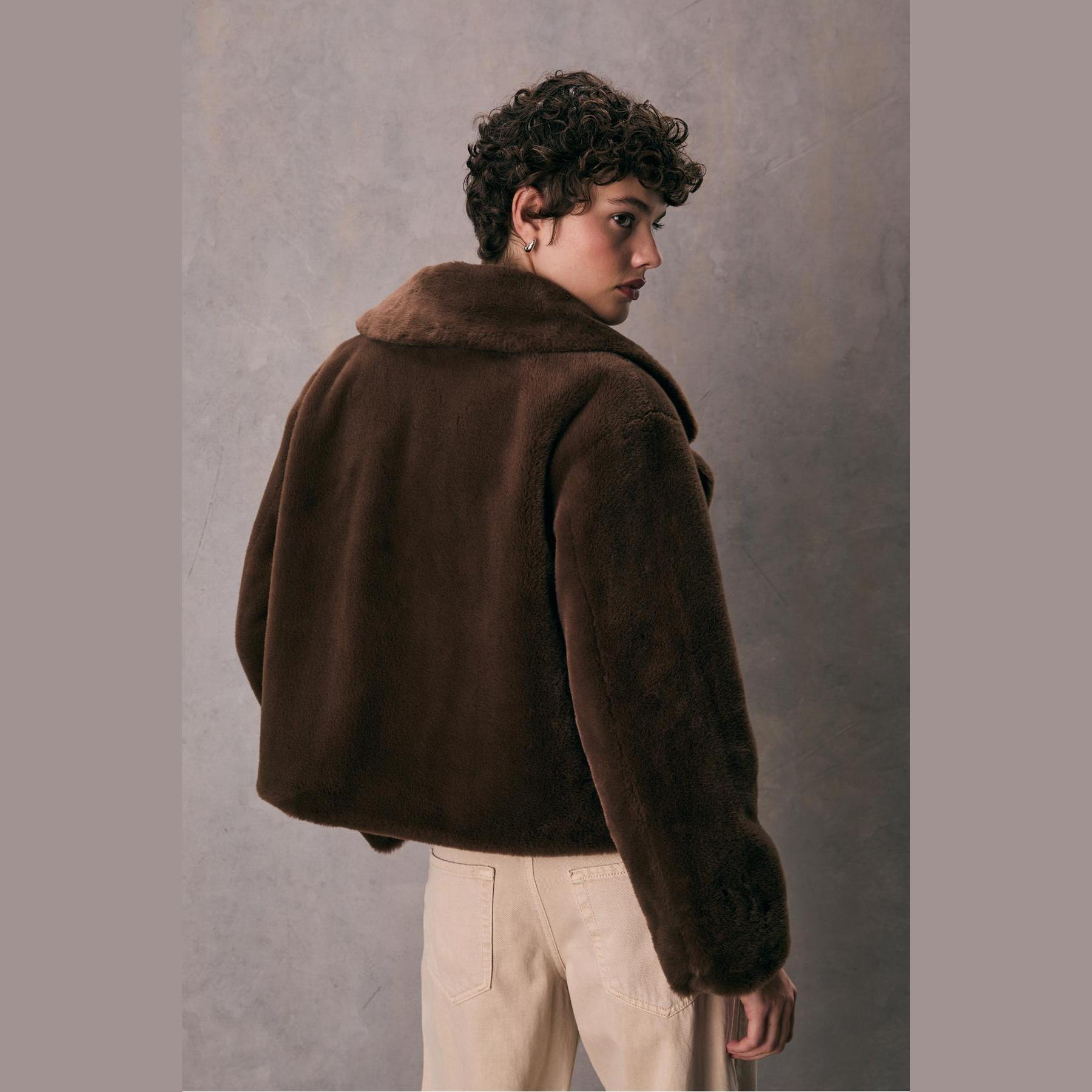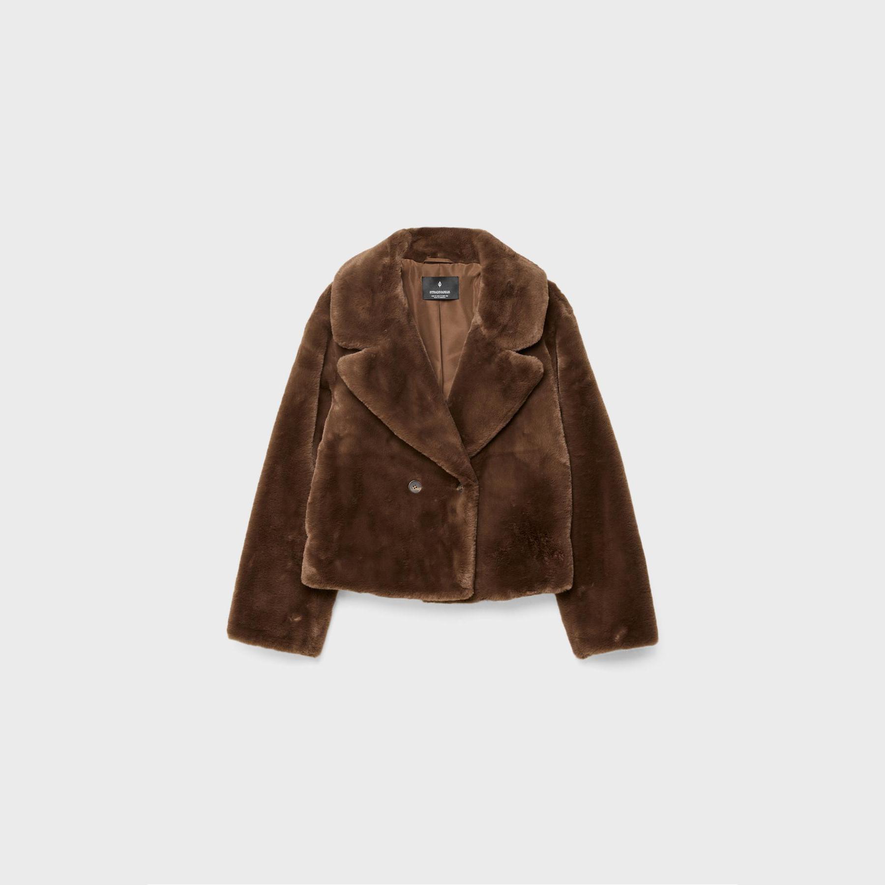 جاكيت كروڤاز بتأثير الفرو الصناعي – بني من Stradivarius