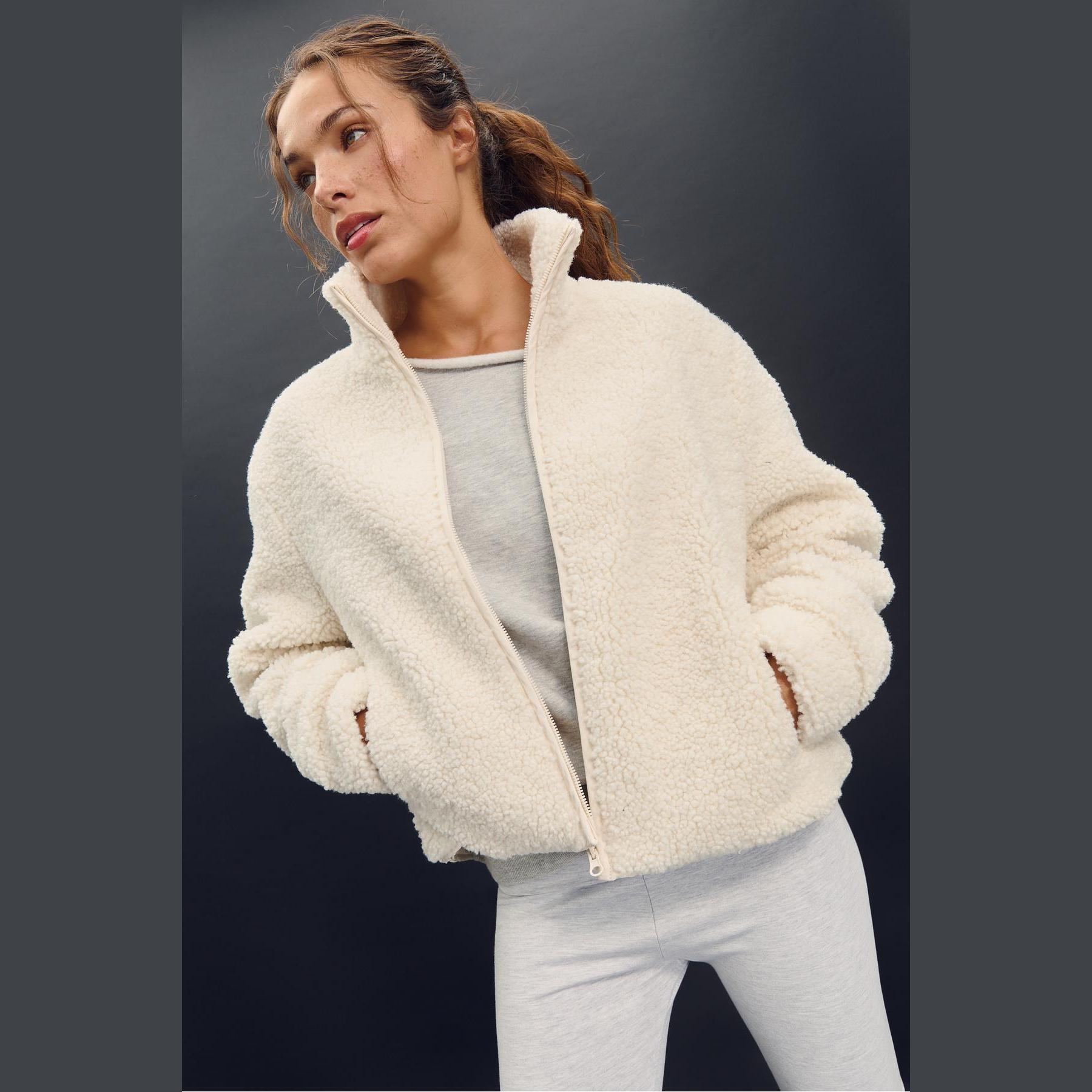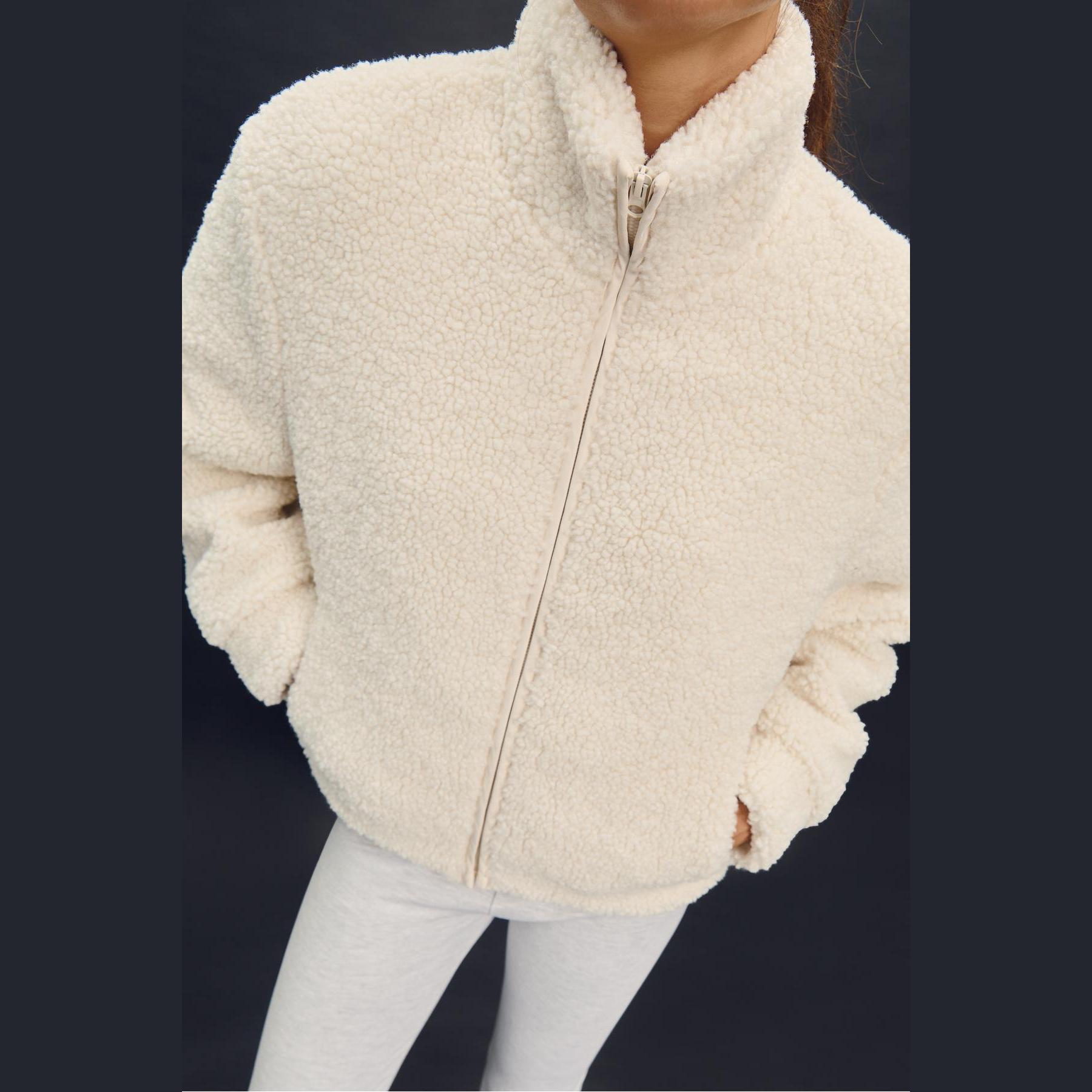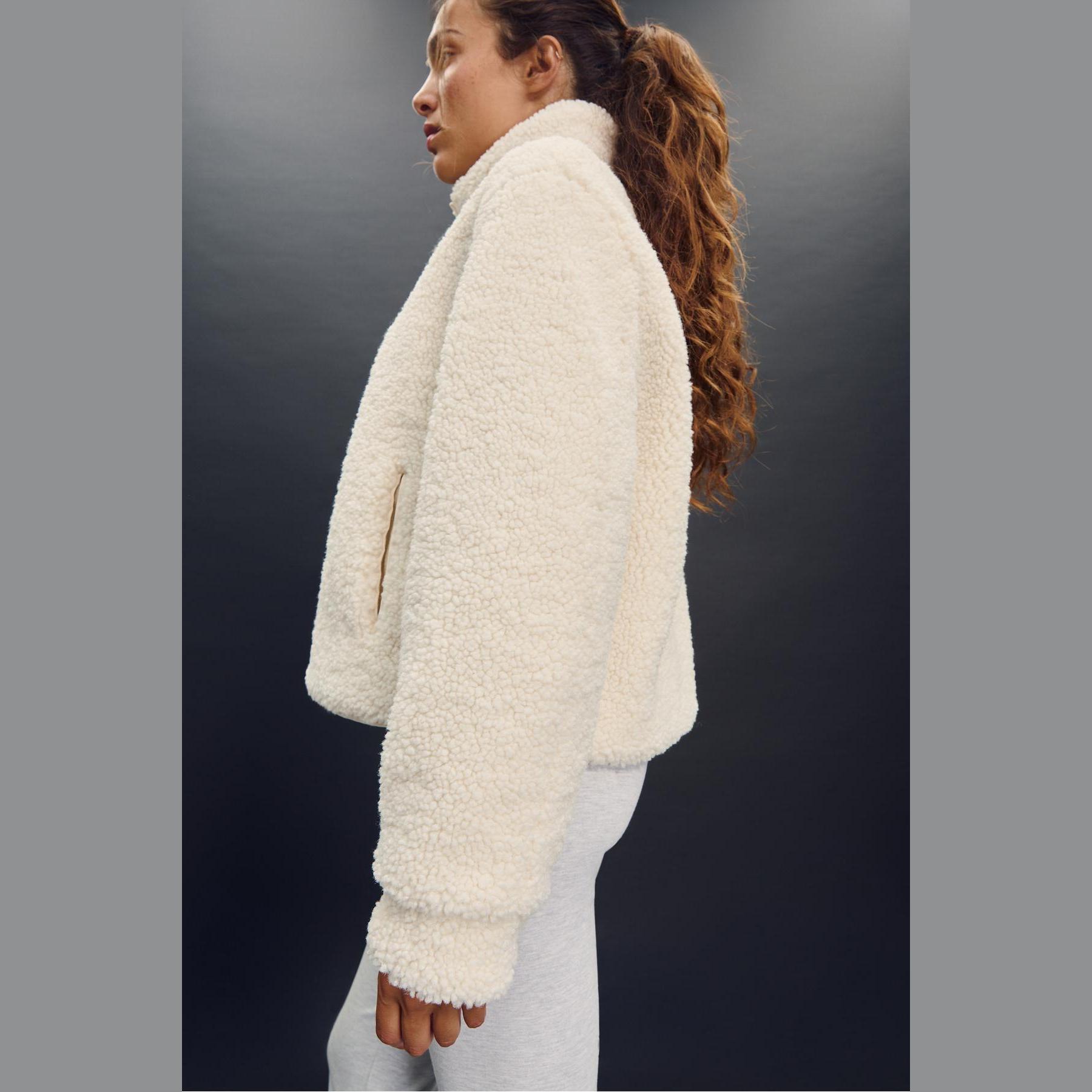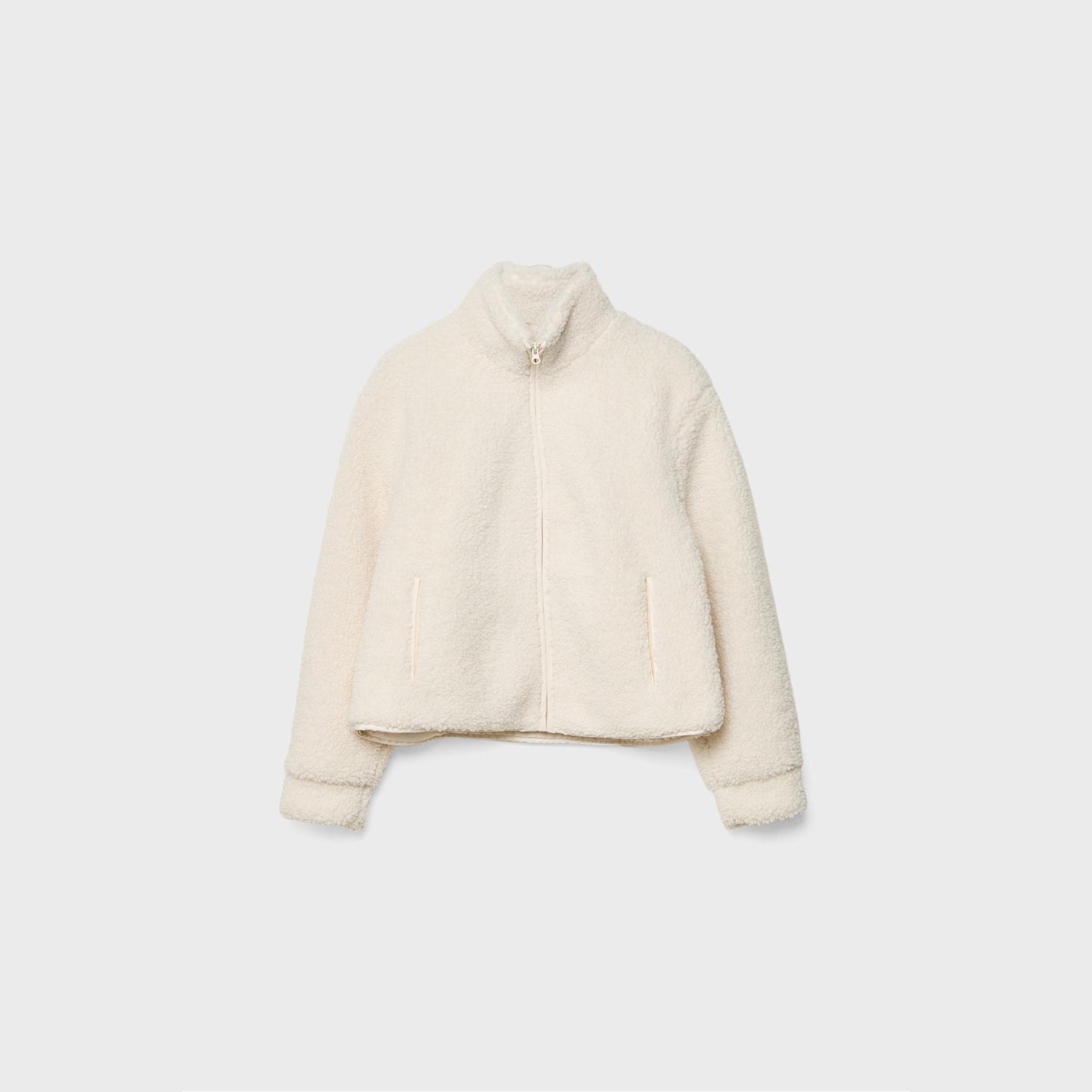 جاكيت بملمس الصوف الصناعي بسحاب أمامي – إكرو من Stradivarius