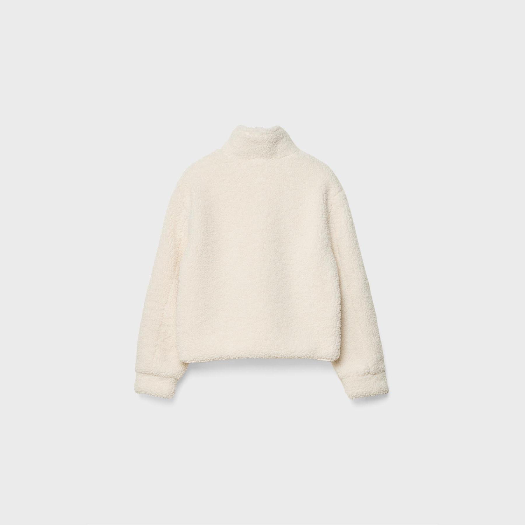 جاكيت شتوي أنيق من Stradivarius بلون إكرو، مصنوع من خامة ناعمة بتركيبة 100% بوليستر، يتميز بقصة Regular Fit، ياقة نصف عالية (نصف بولو)، أكمام طويلة مع أساور، إغلاق أمامي بسحاب معدني، مزود بجيبين جانبيين بِييه، حافة سفلية قابلة للتعديل بحبل مطاطي مع ستوبر، تصميم سادة بملمس يشبه الصوف الصناعي، بدون بطانة، مثالي للتنسيق مع قطع كاجوال لإطلالة شتوية دافئة وعملية.