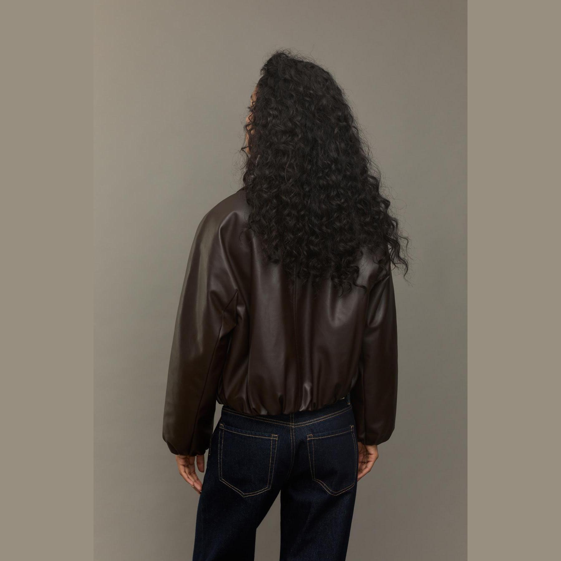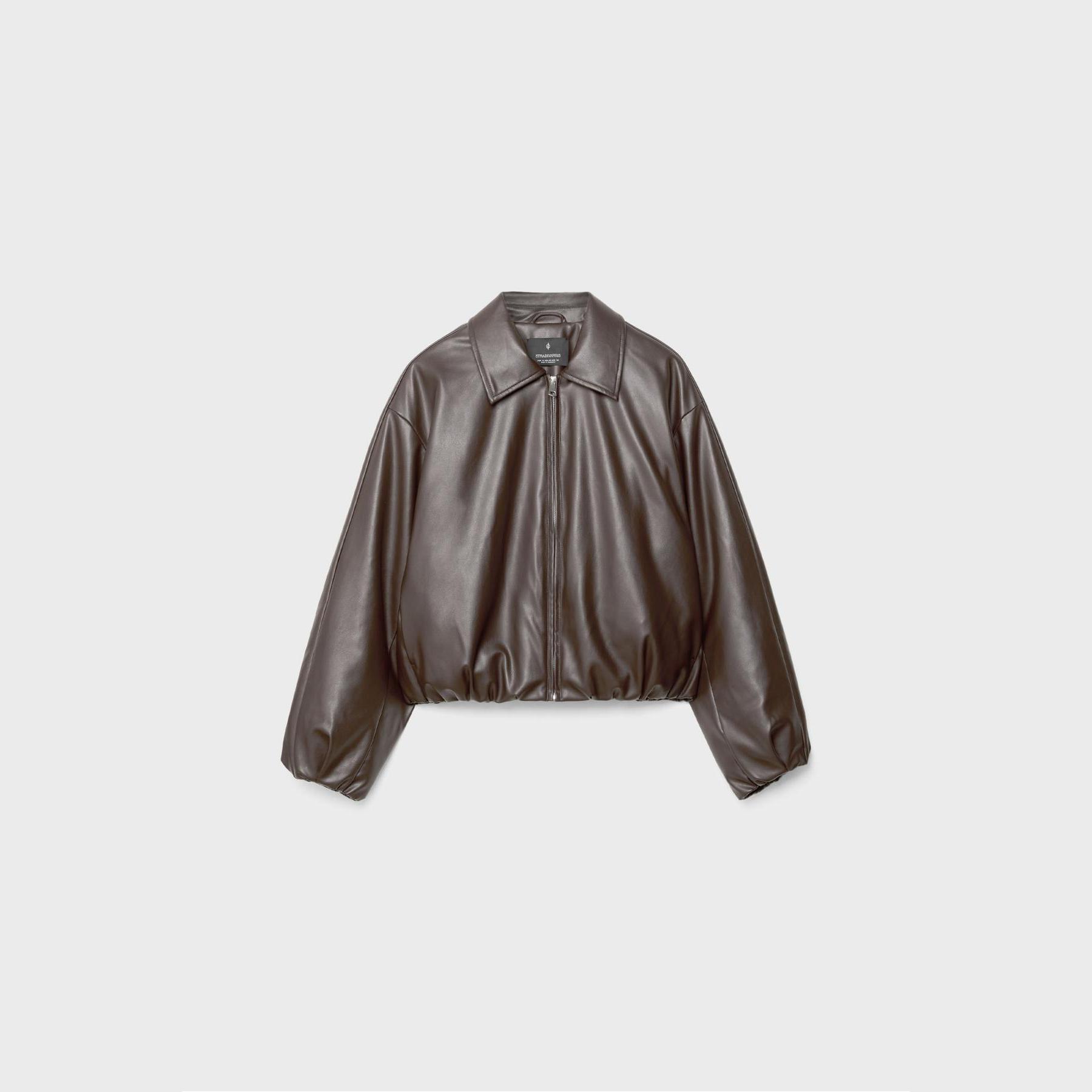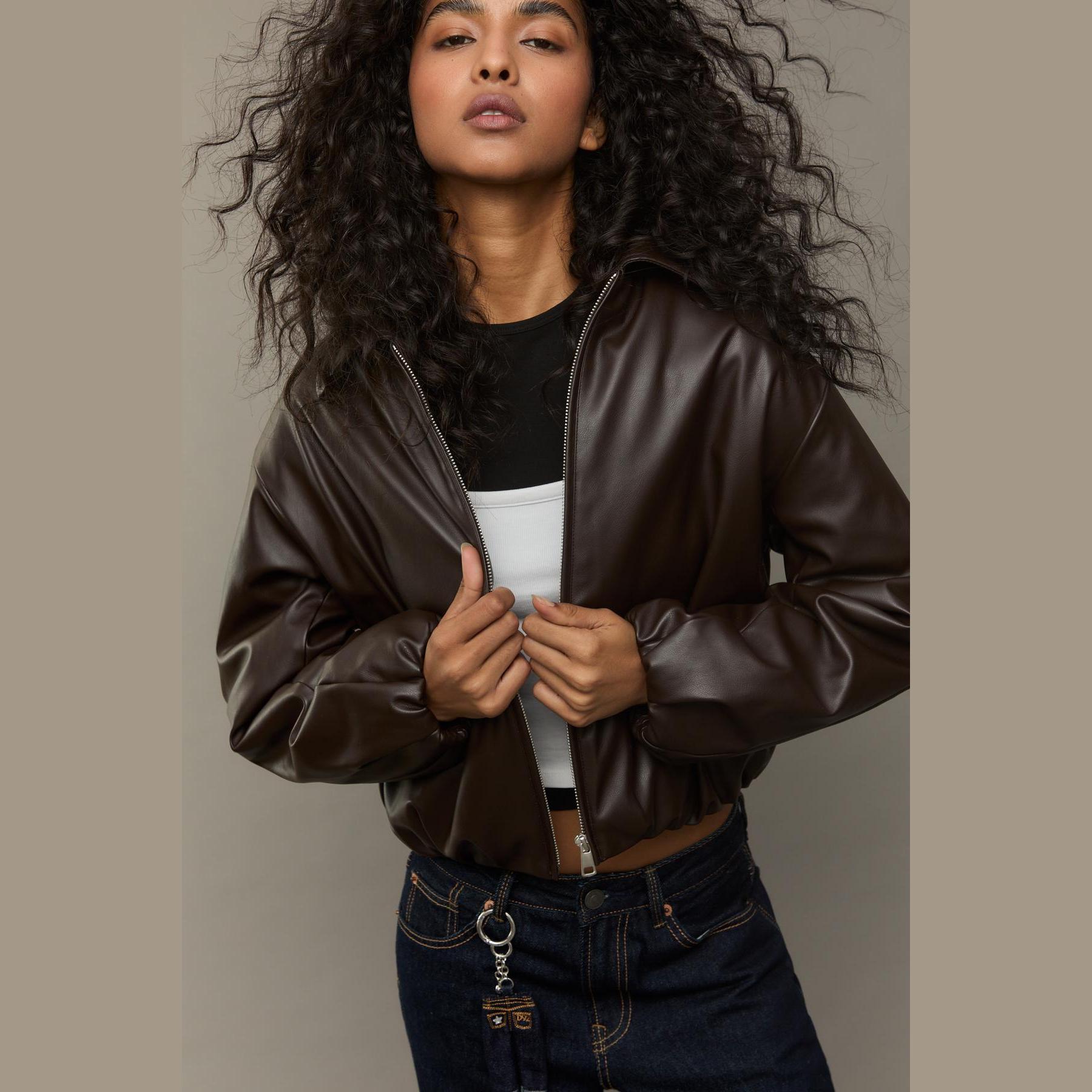 جاكيت بومبر مبطن من الجلد الصناعي – بني من Stradivarius