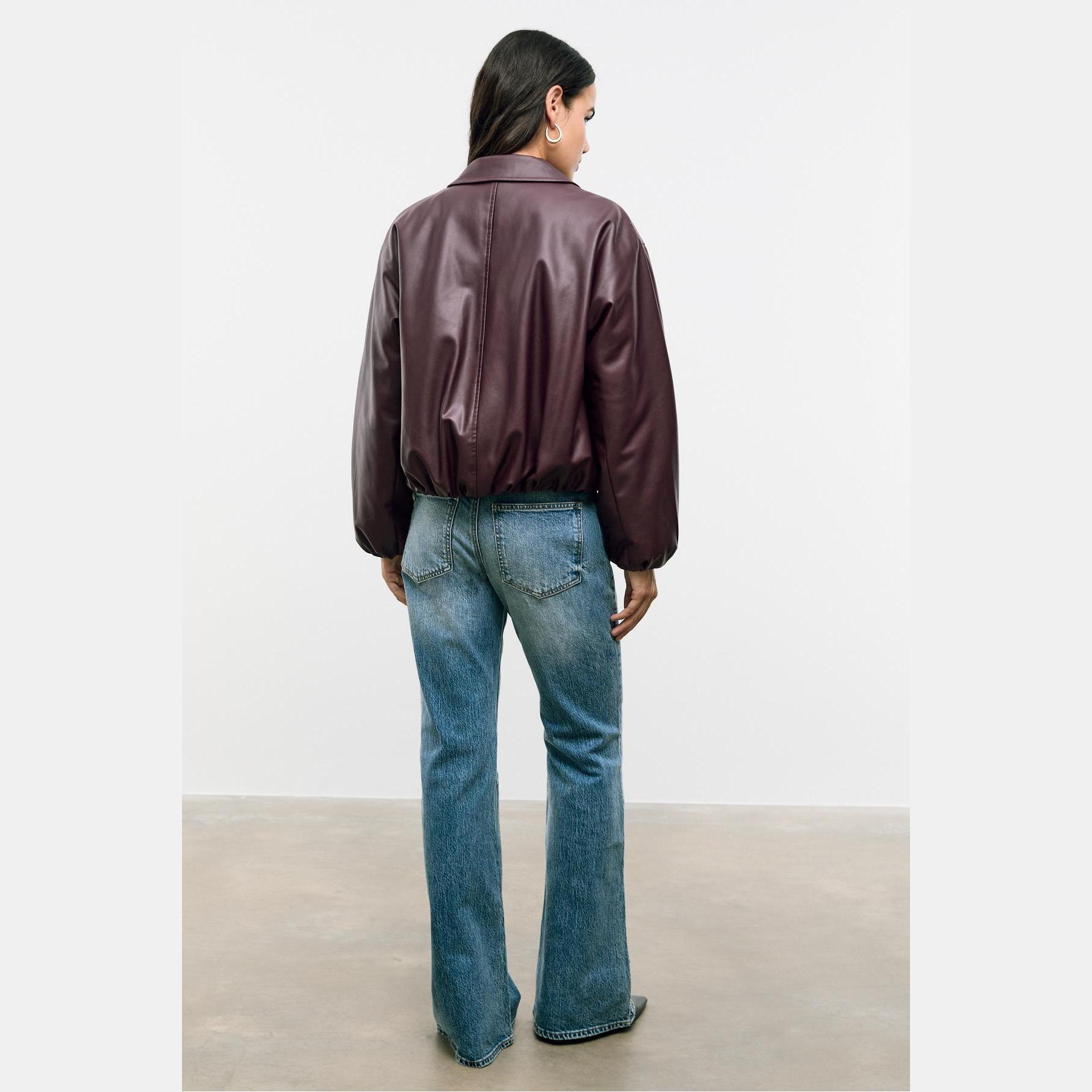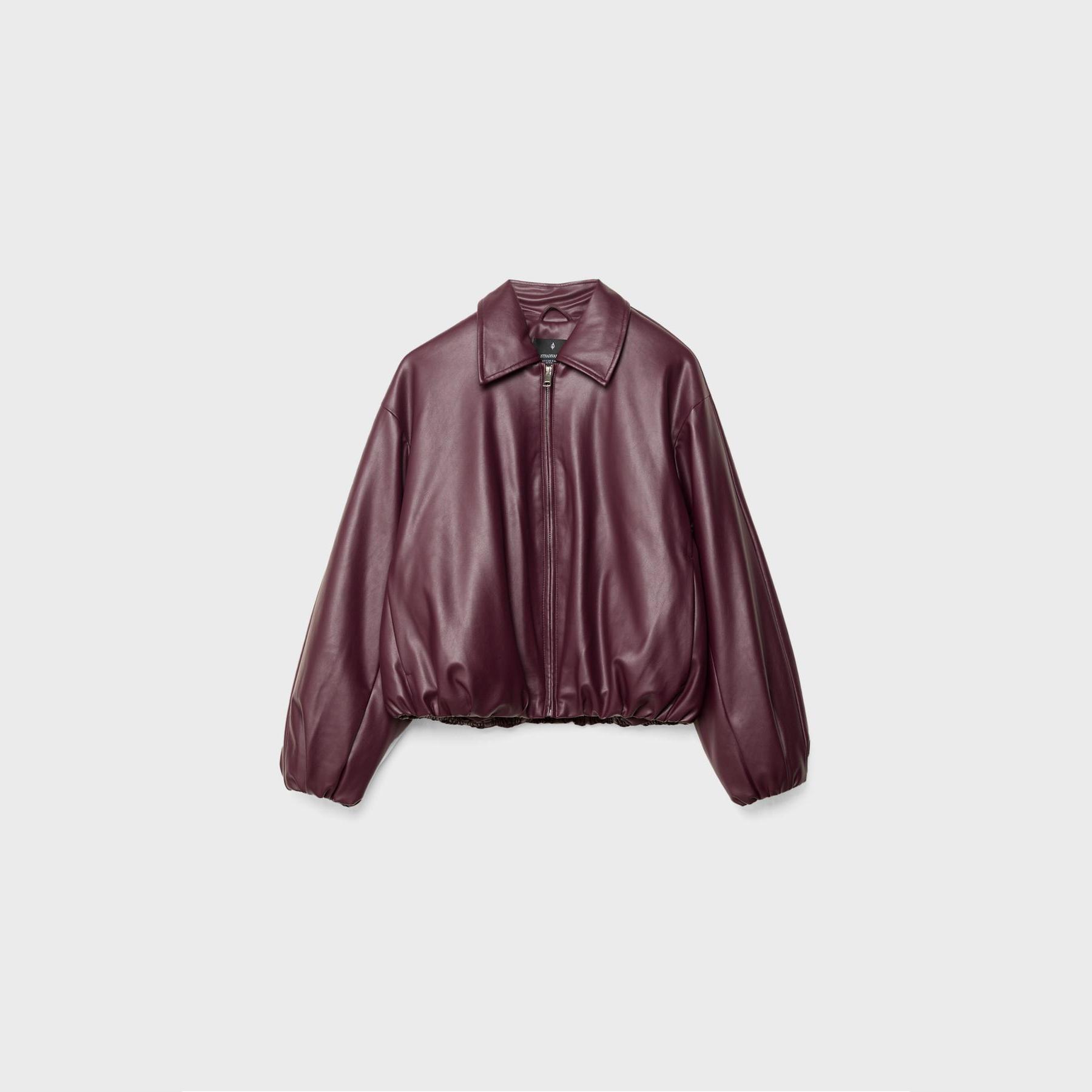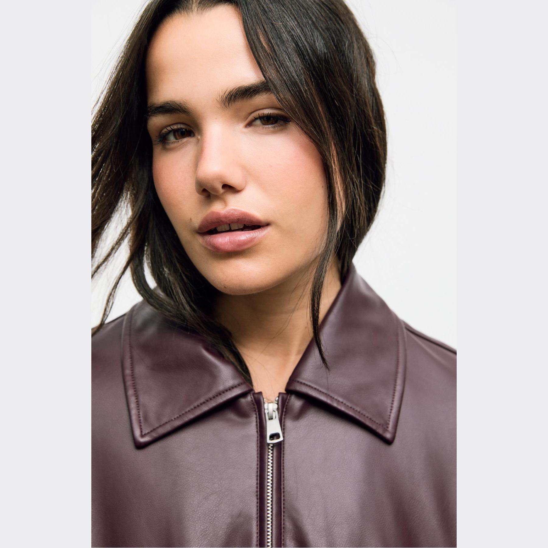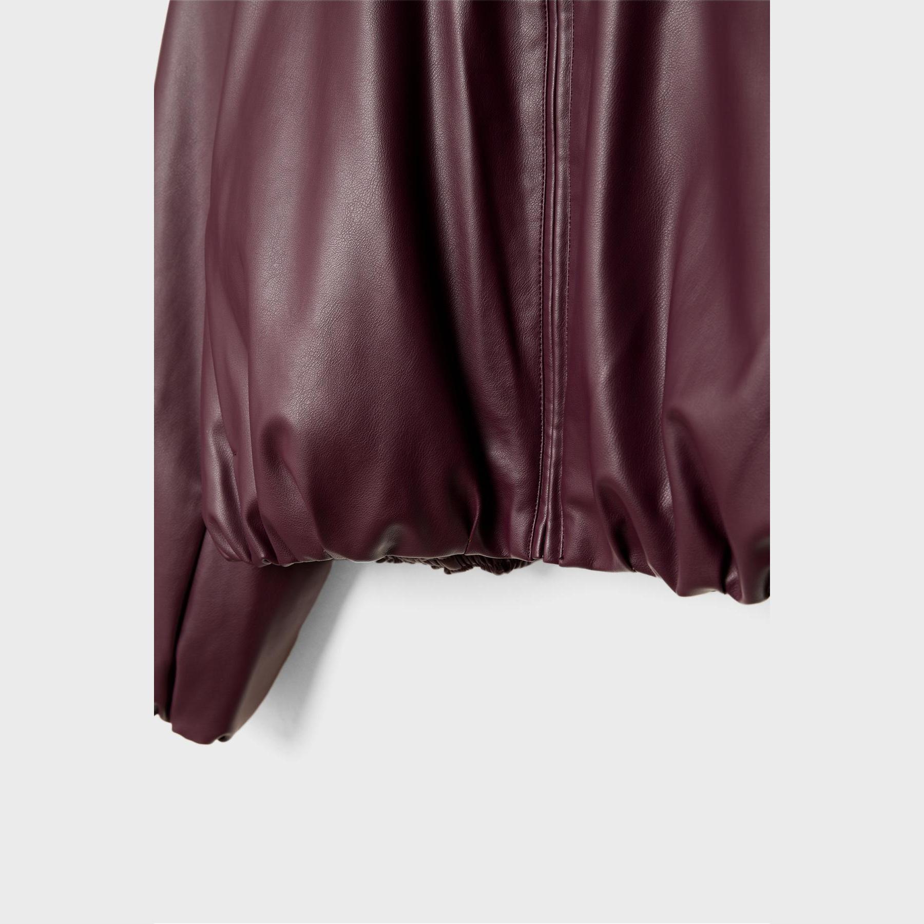 جاكيت بومبر مبطن من الجلد الصناعي – بوردو من Stradivarius