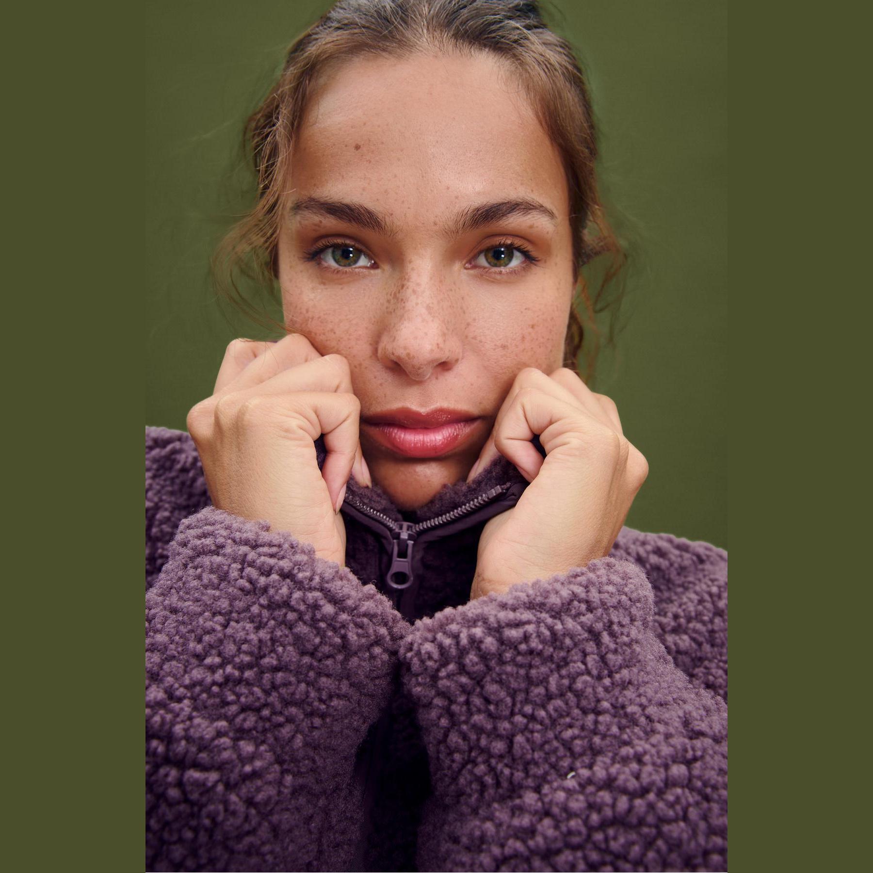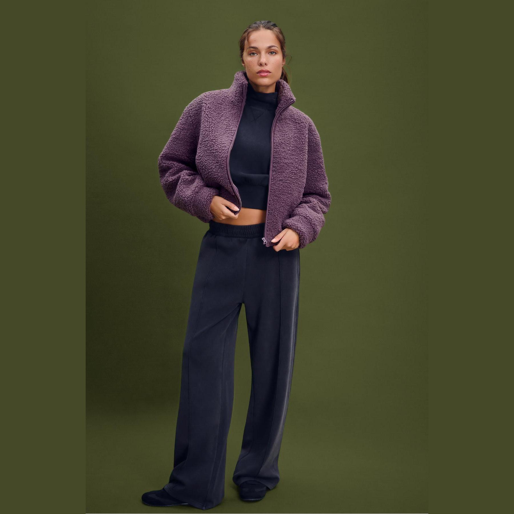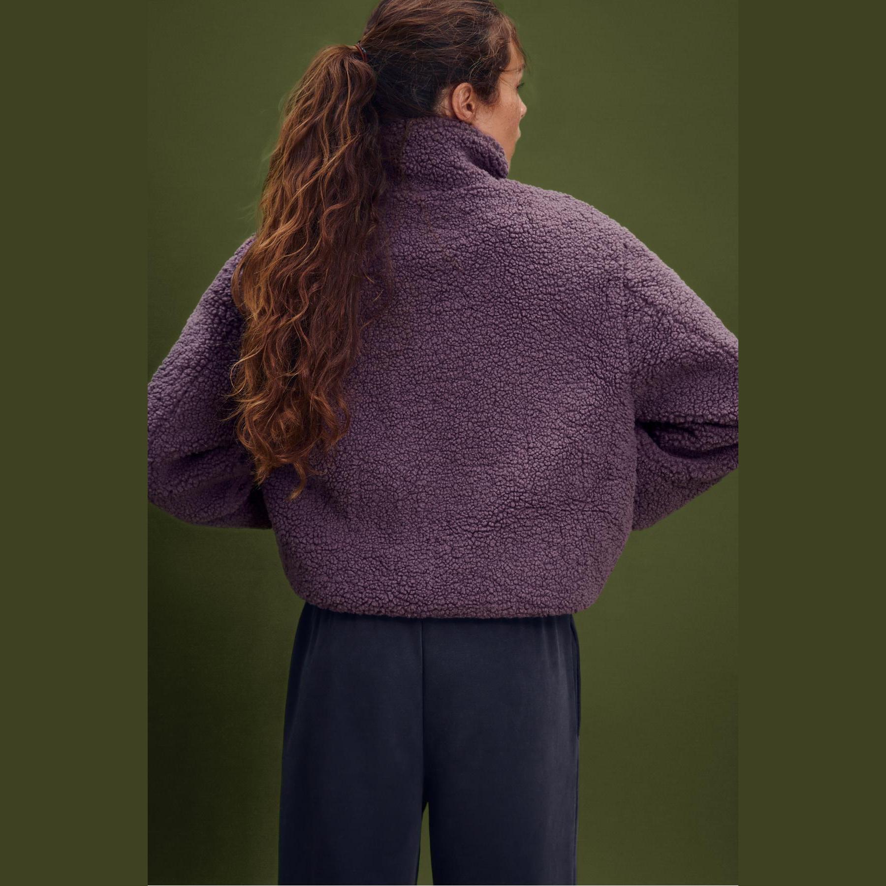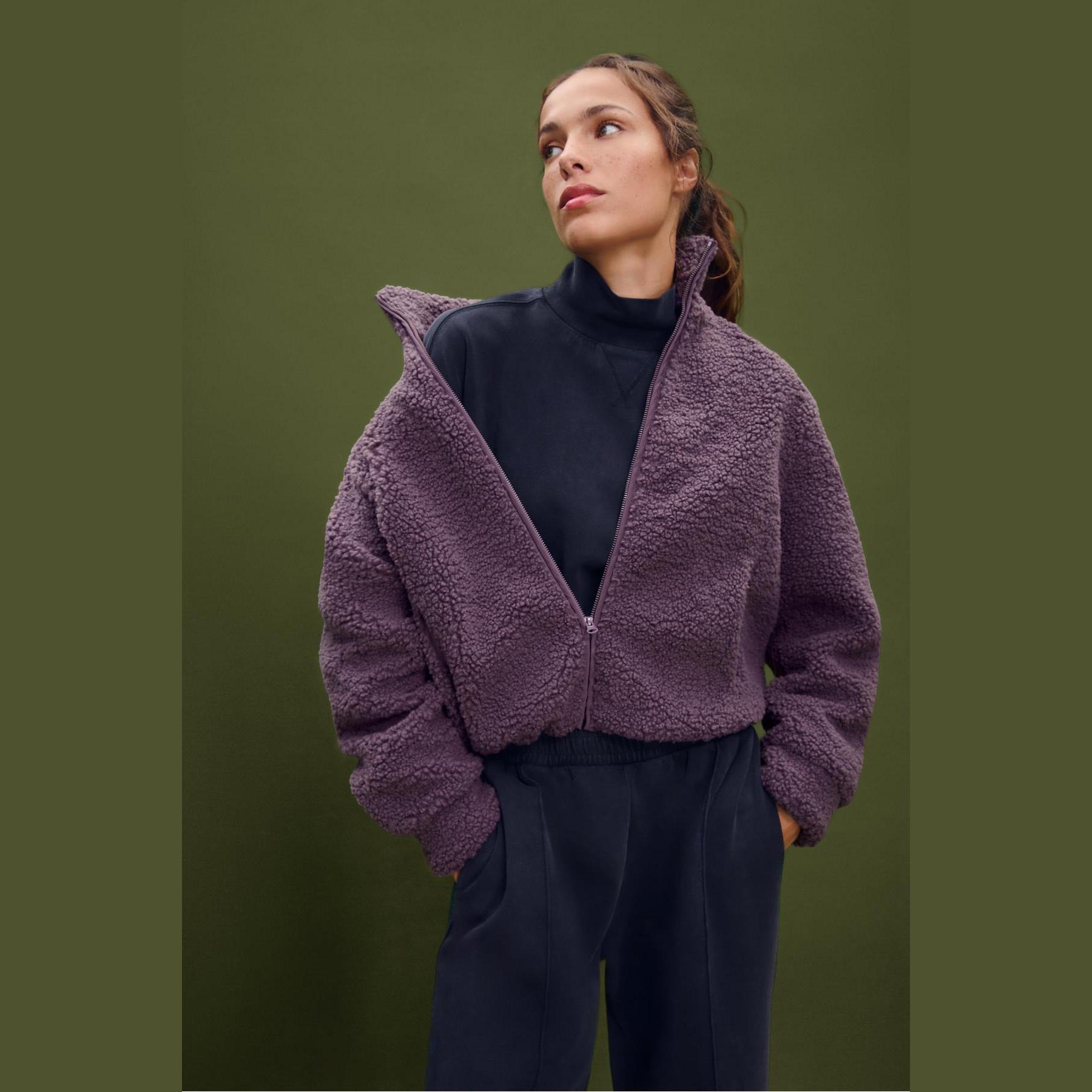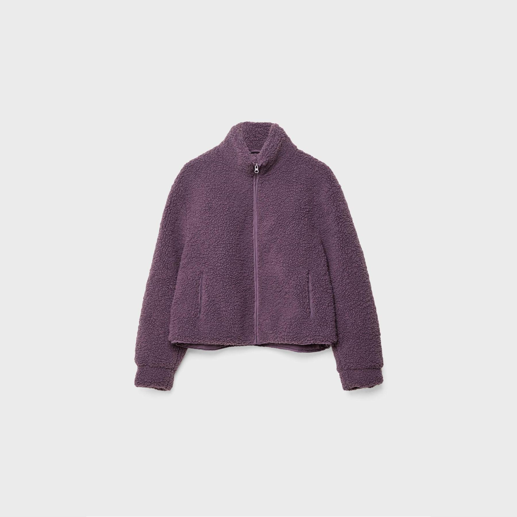 جاكيت بملمس الصوف الصناعي بسحاب أمامي – بنفسجي من Stradivarius