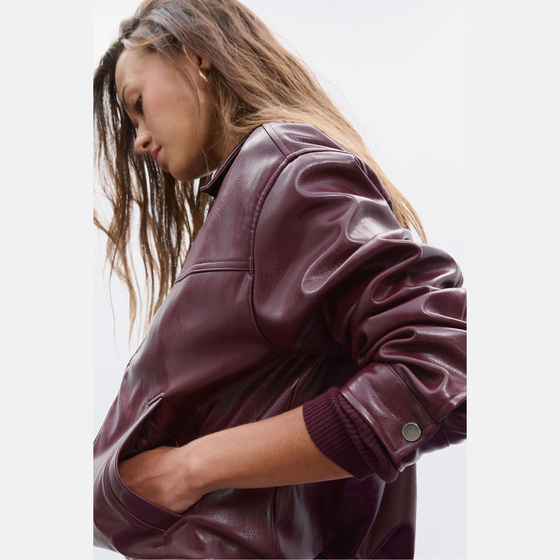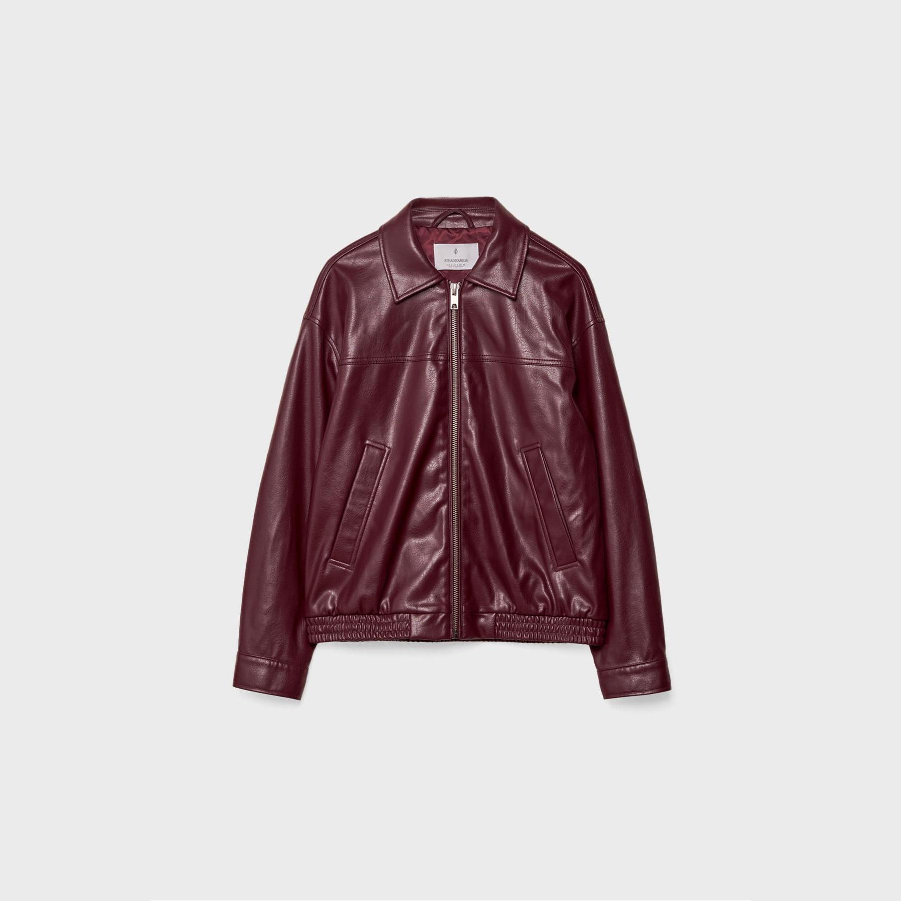 جاكيت واسع من الجلد الصناعي – بوردو من Stradivarius
