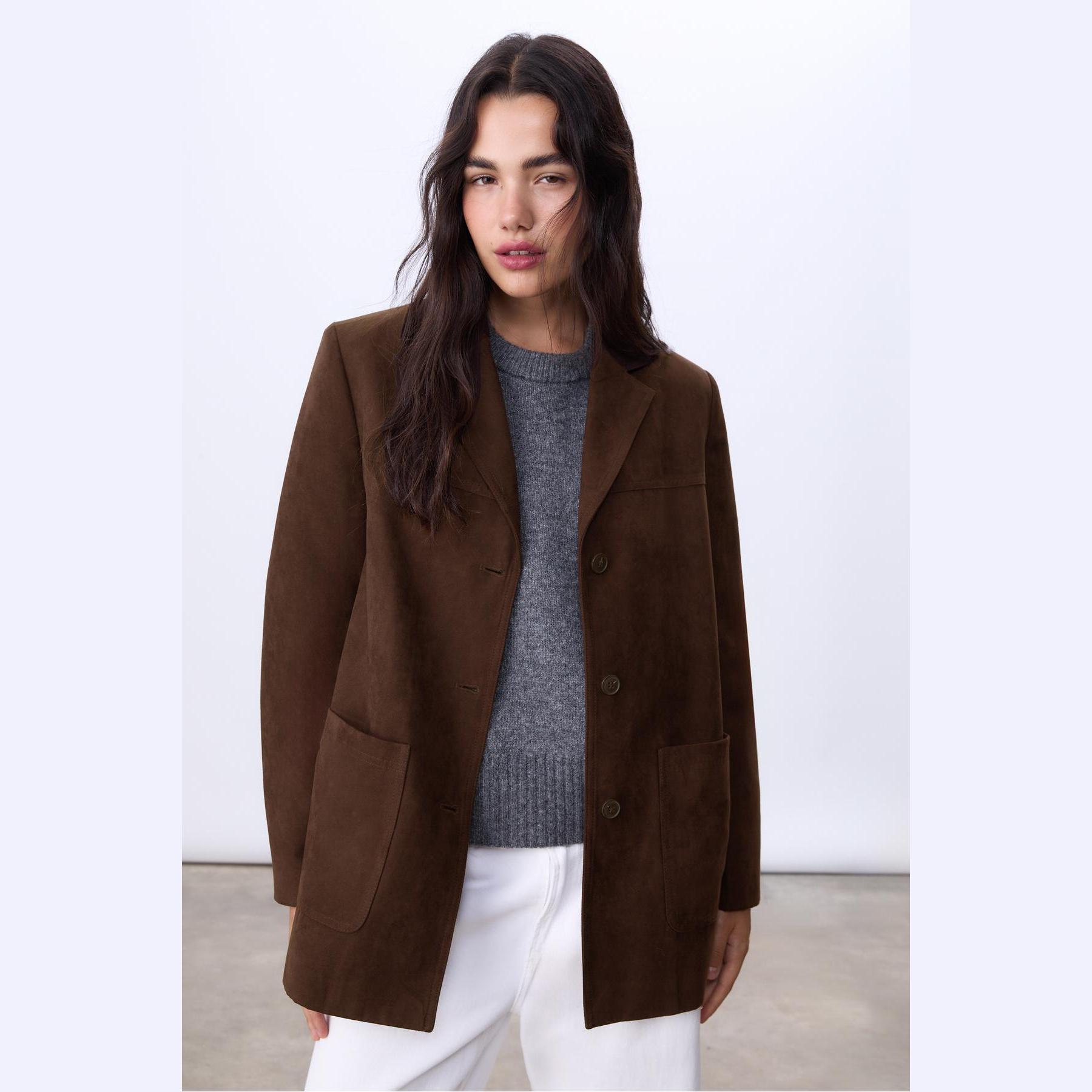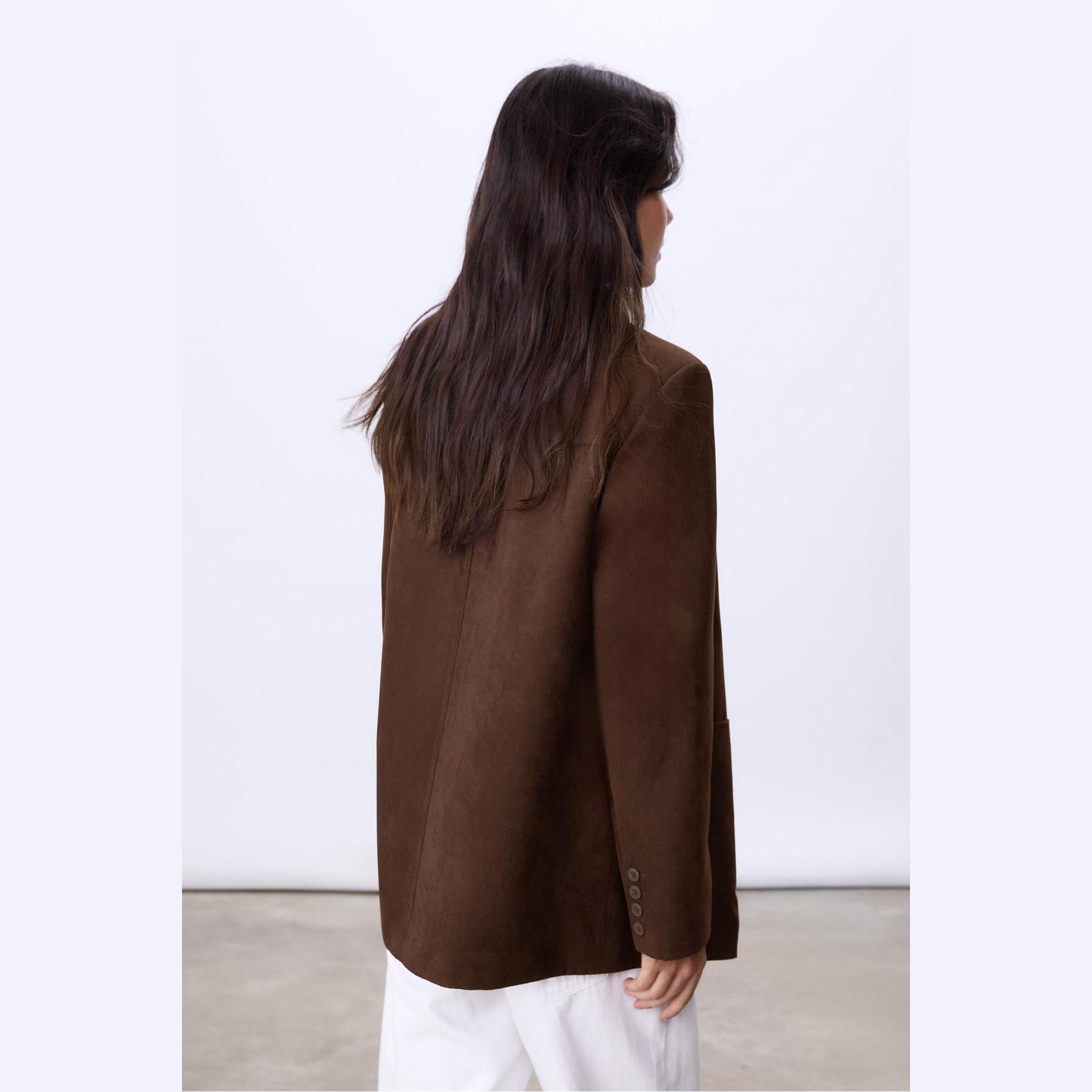 بليزر بقصة عادية من السويِد الصناعي – بني من Stradivarius
