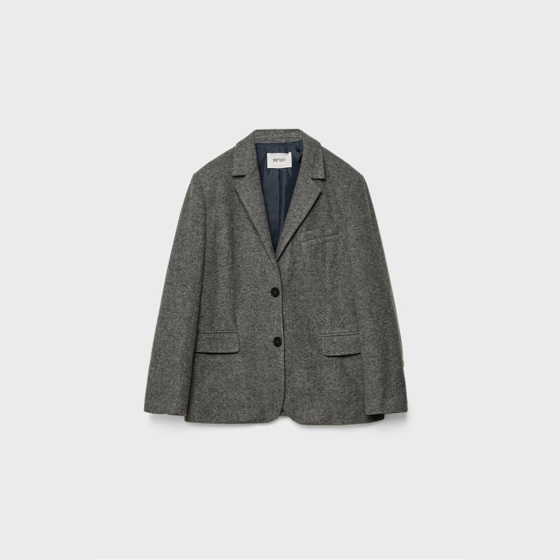 بليزر واسع بنقشة عظم السمكة – رمادي من Stradivarius