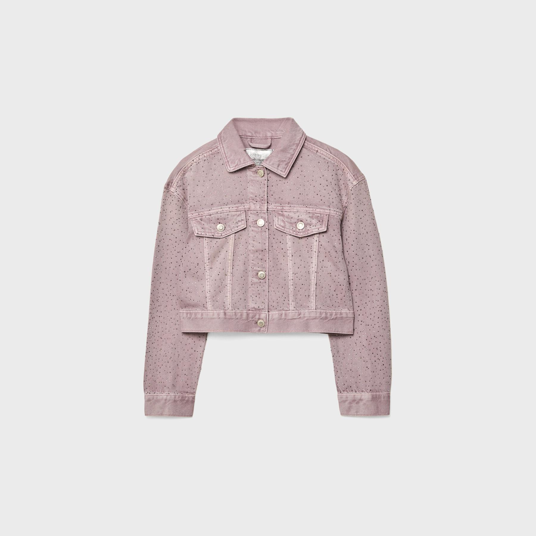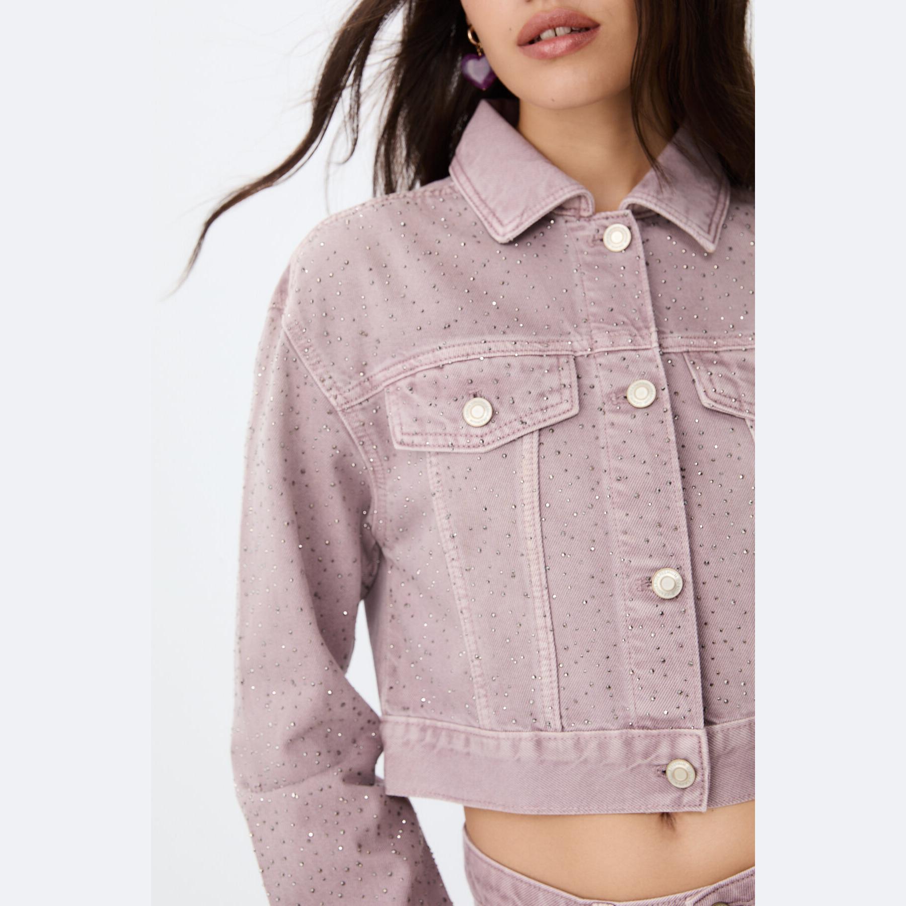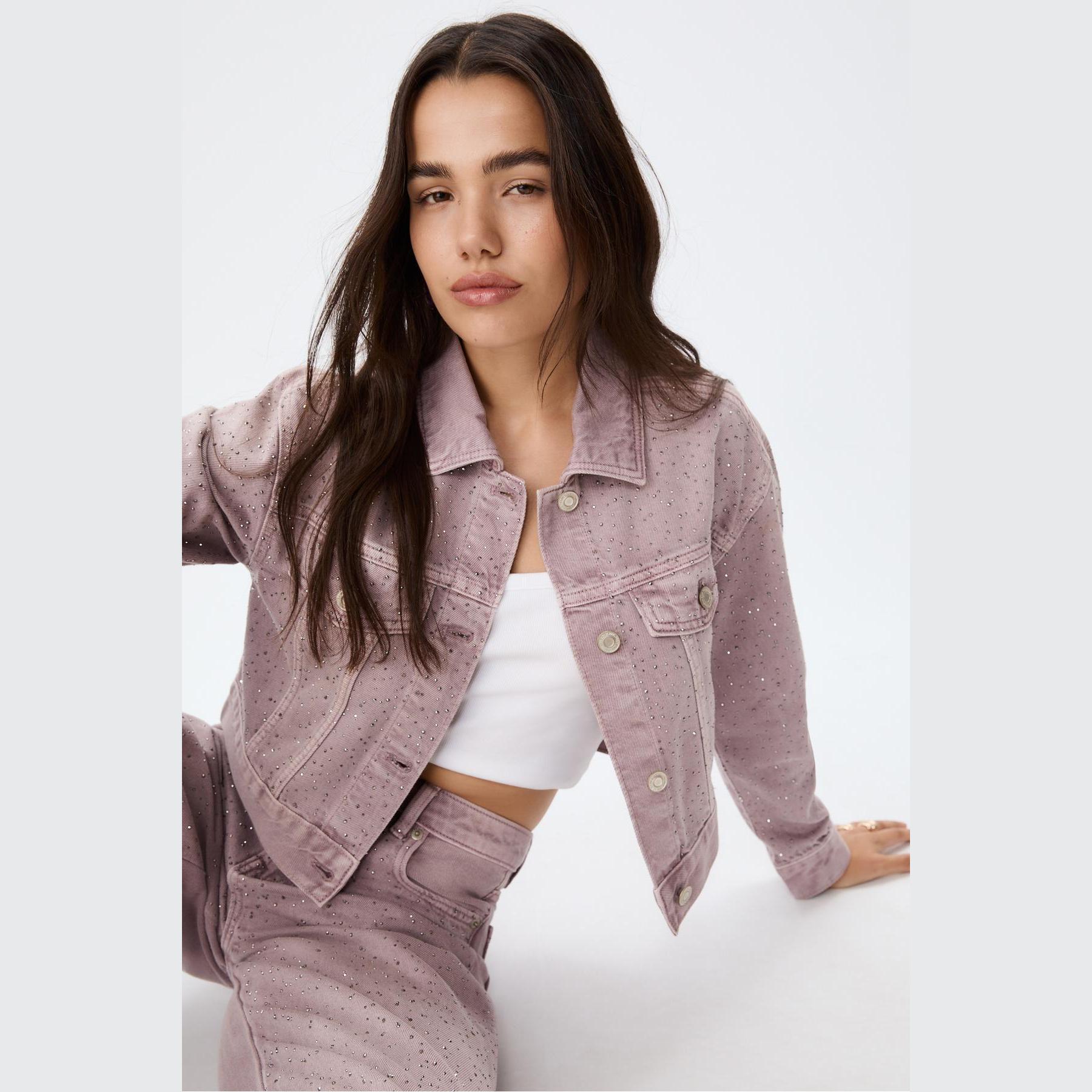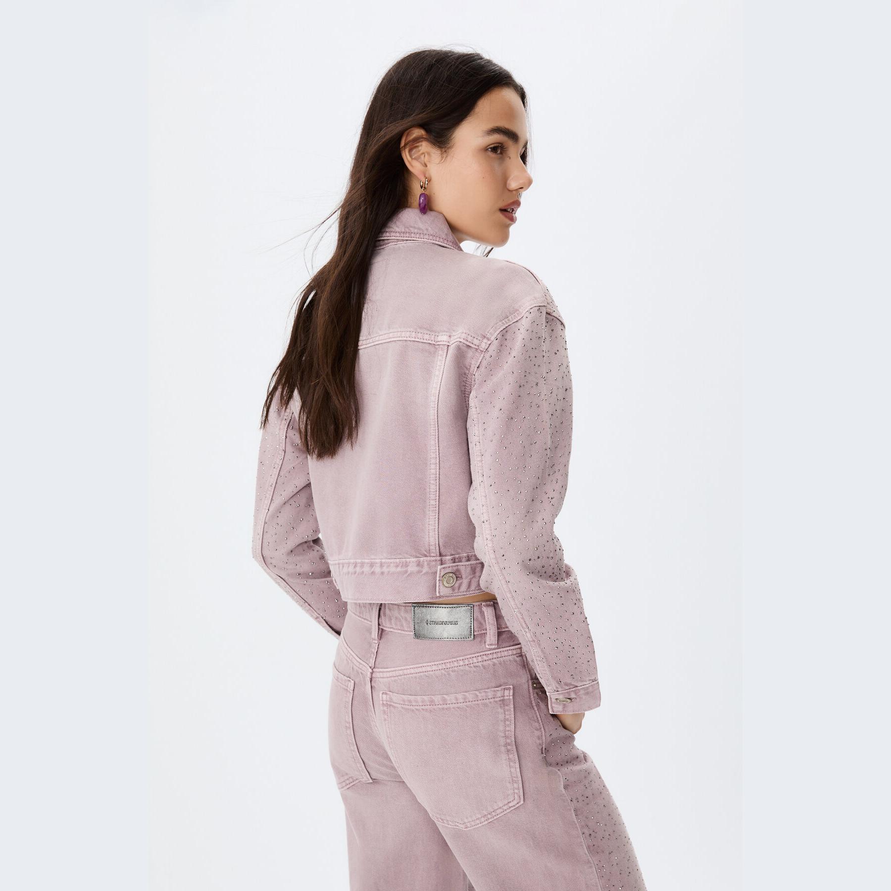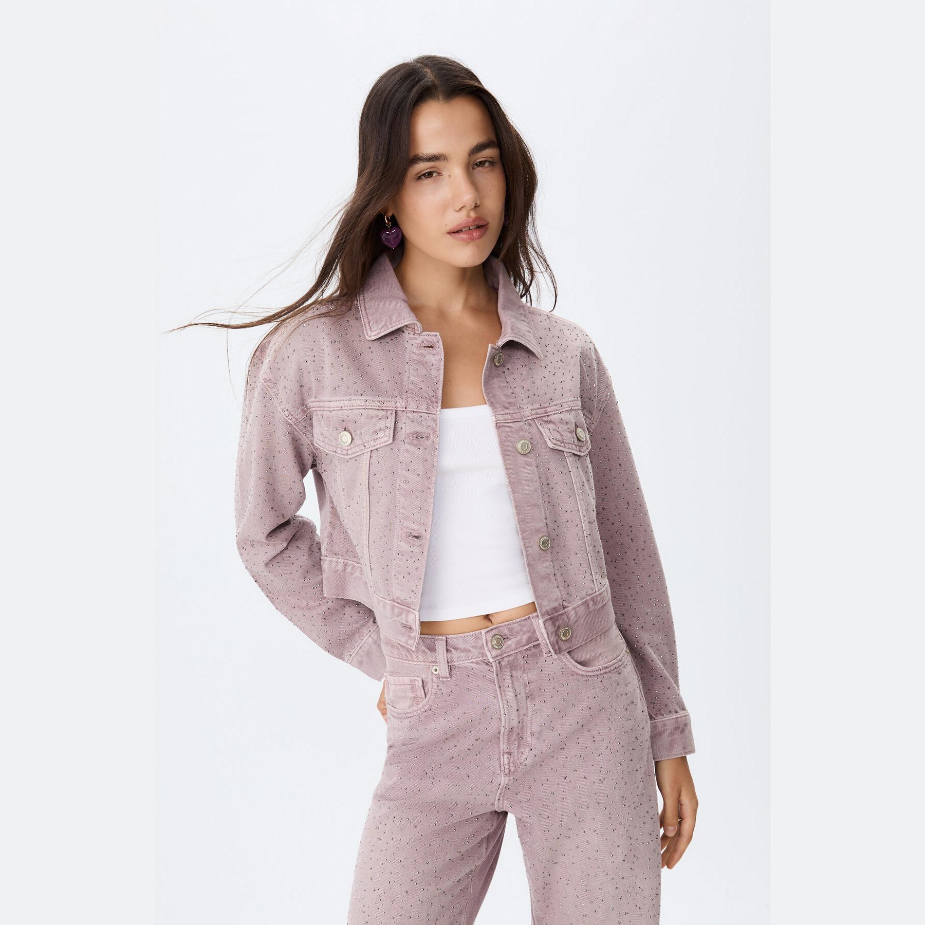 جاكيت دنيم بتفاصيل لامعة – بنفسجي من Stradivarius