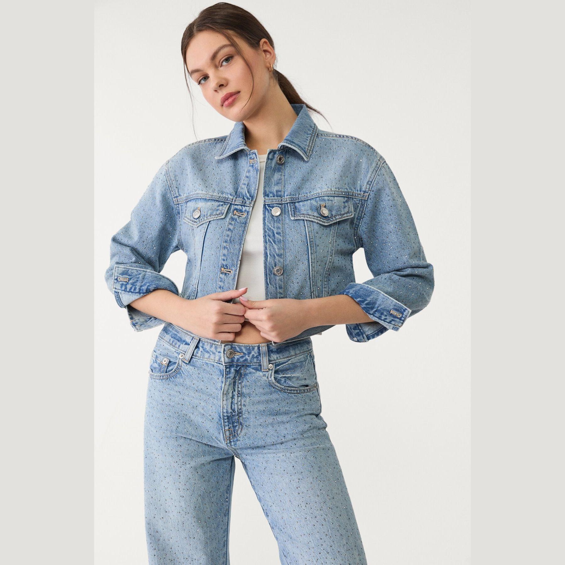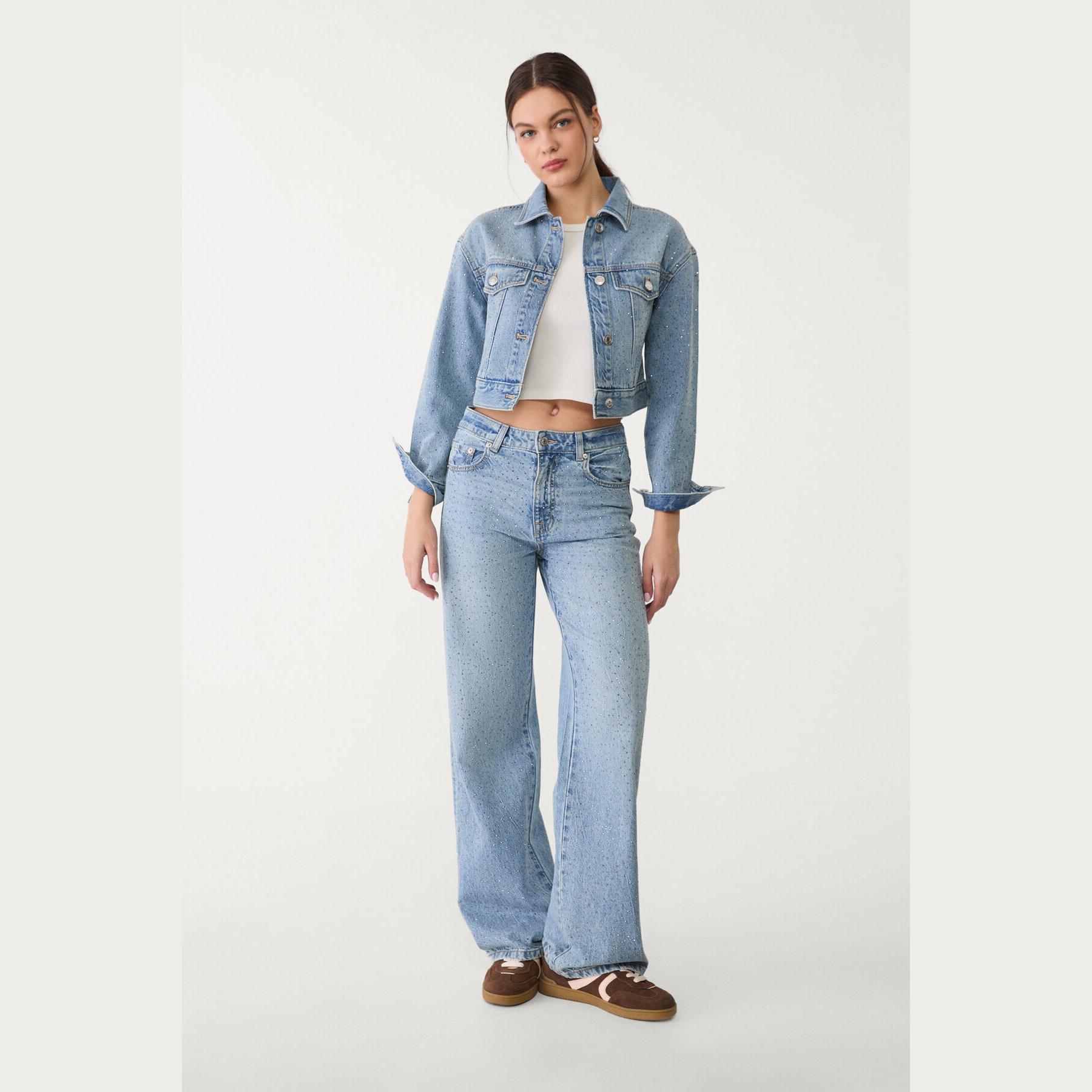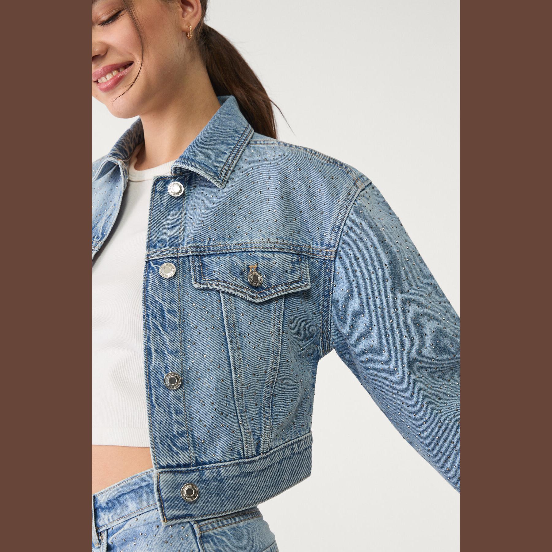 جاكيت دنيم بتفاصيل لامعة – أزرق من Stradivarius