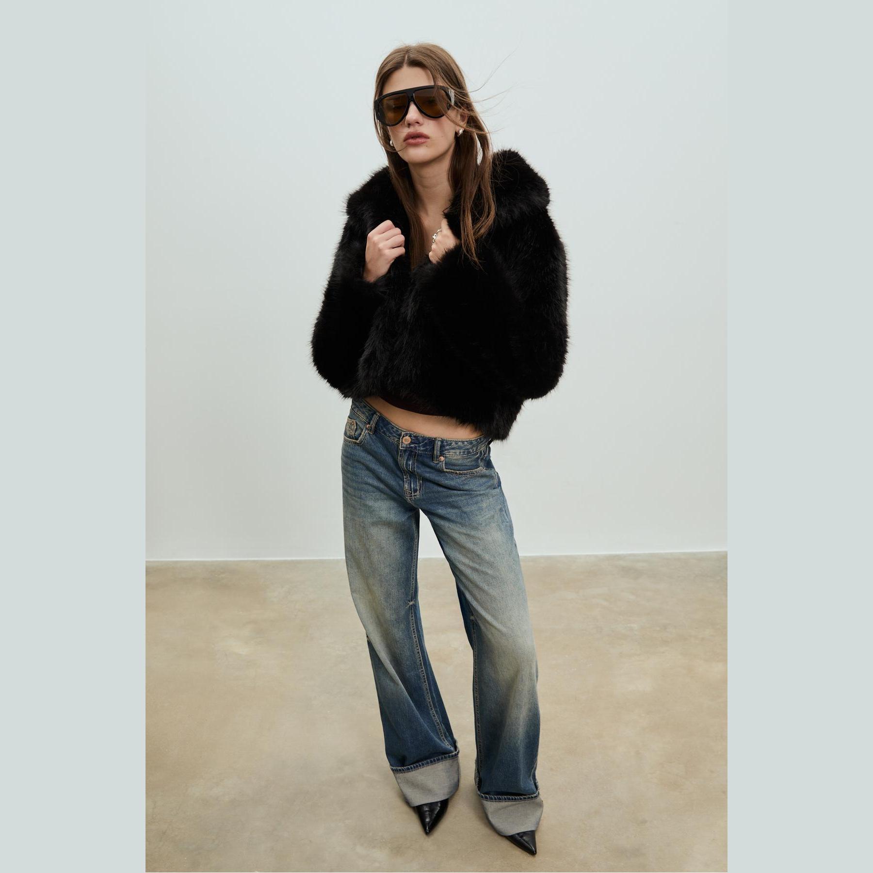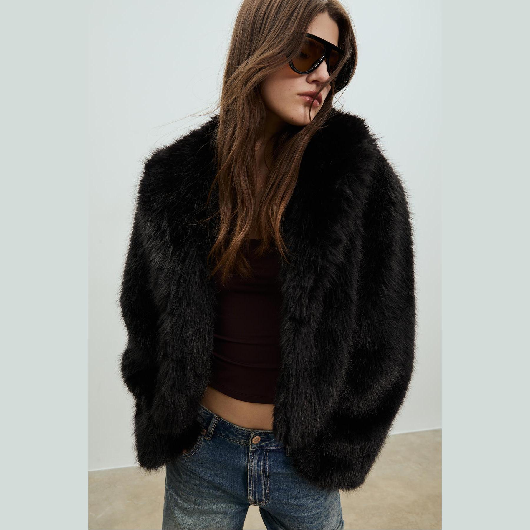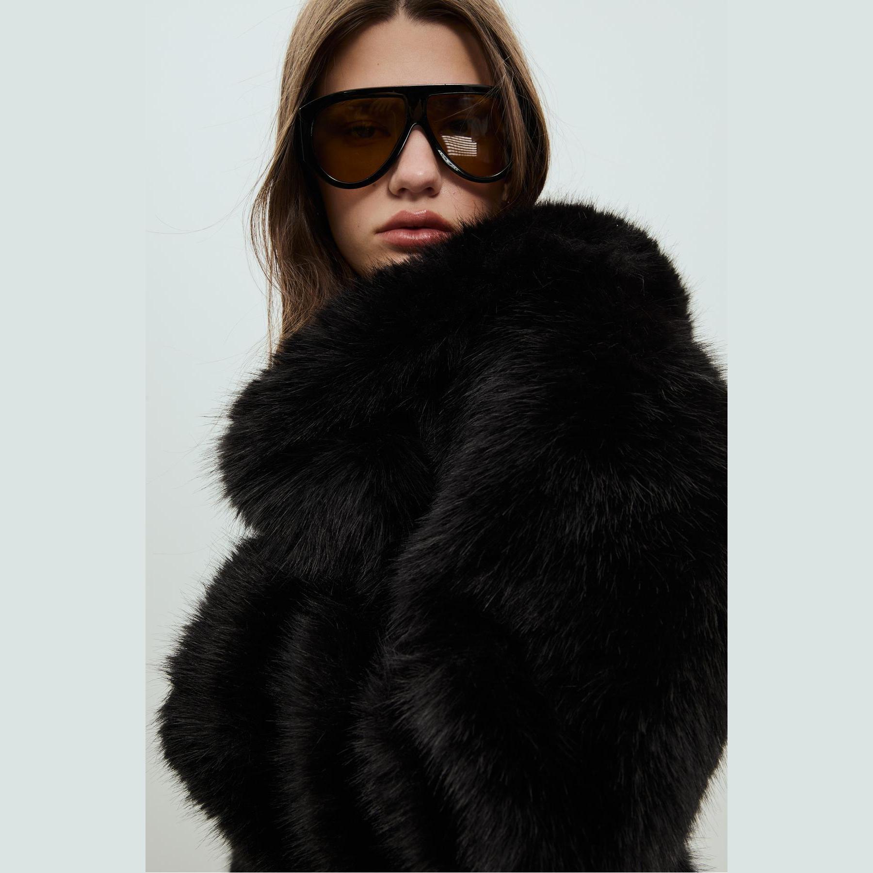 جاكيت من الفرو الصناعي – أسود من Stradivarius