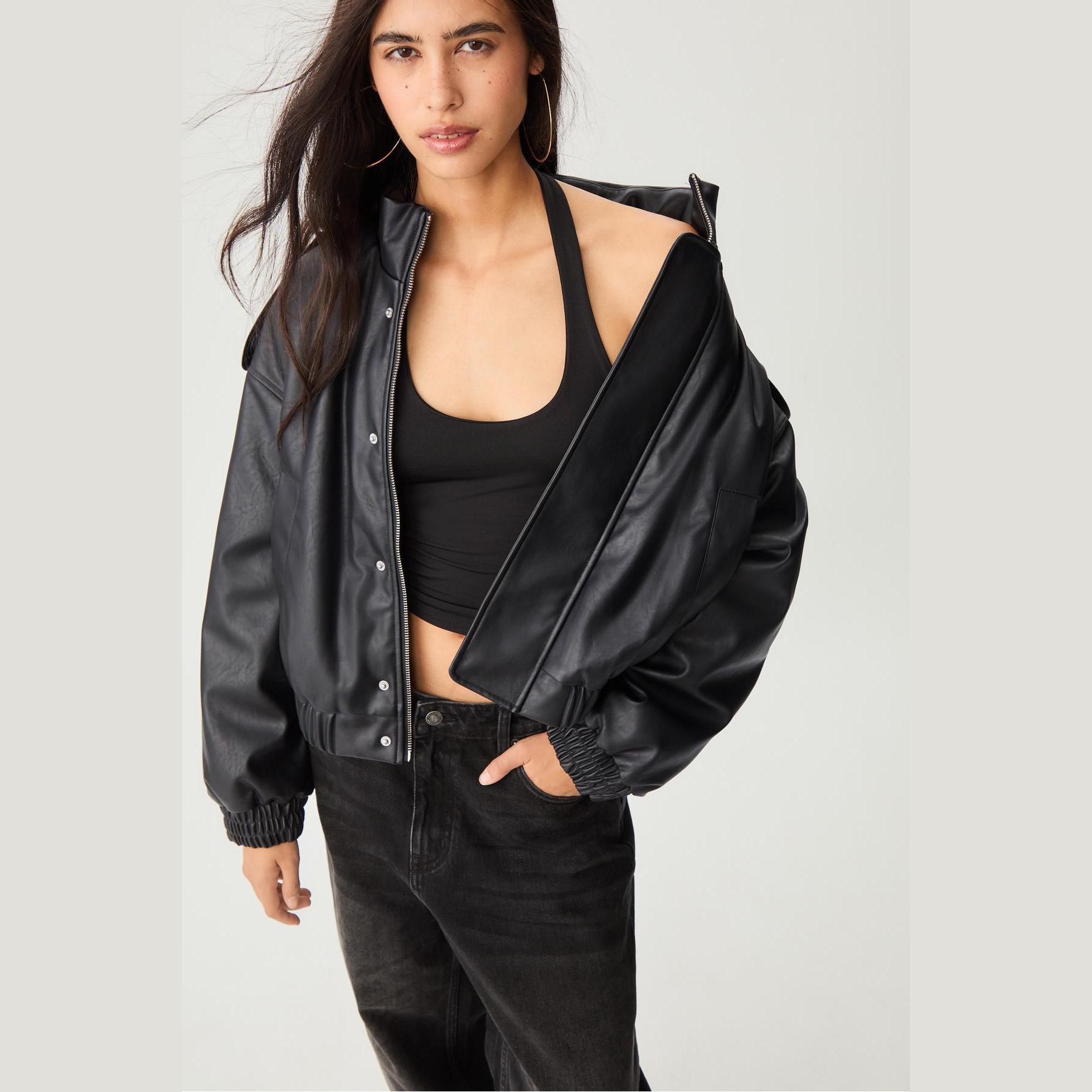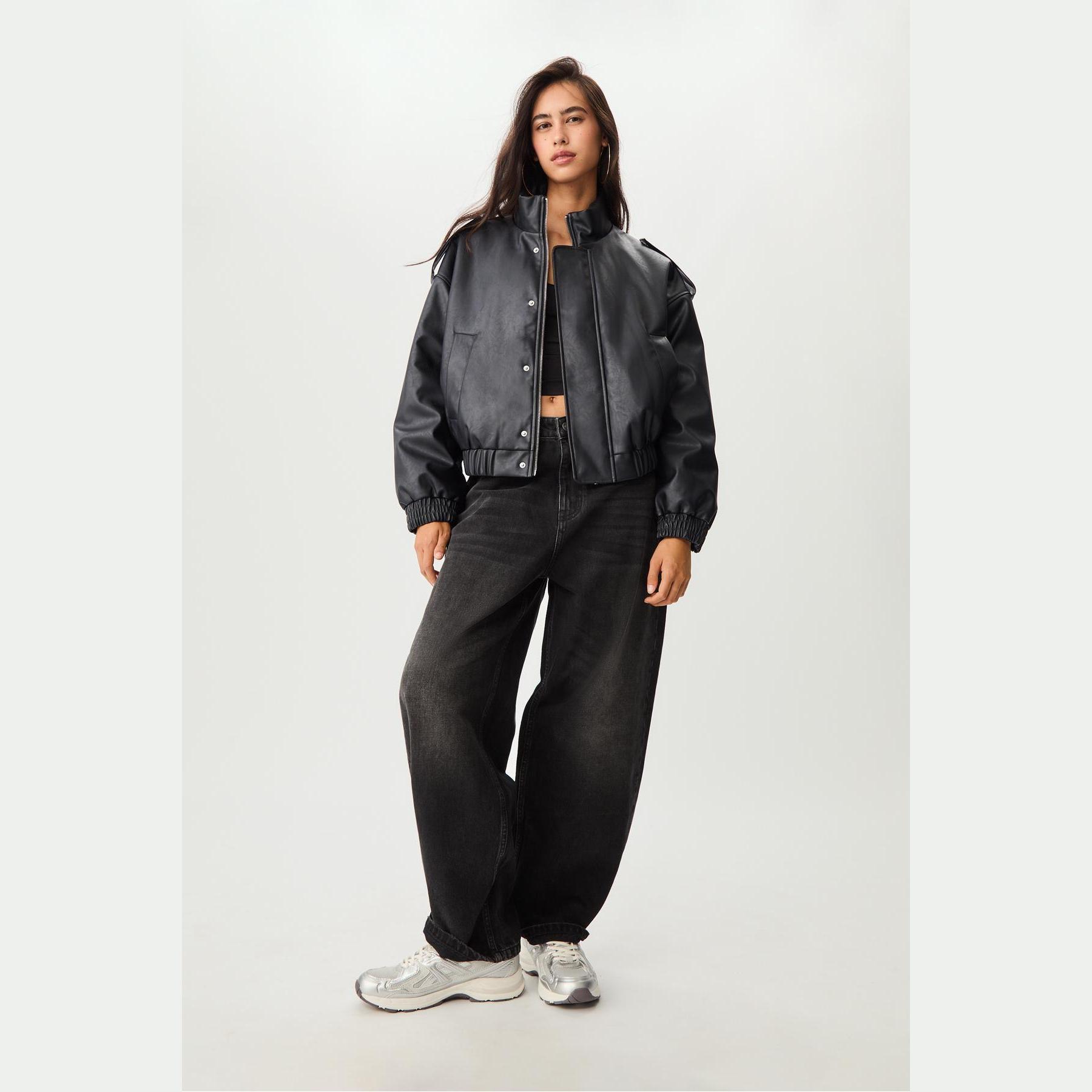 جاكيت بومبر من الجلد الصناعي – أسود من Stradivarius