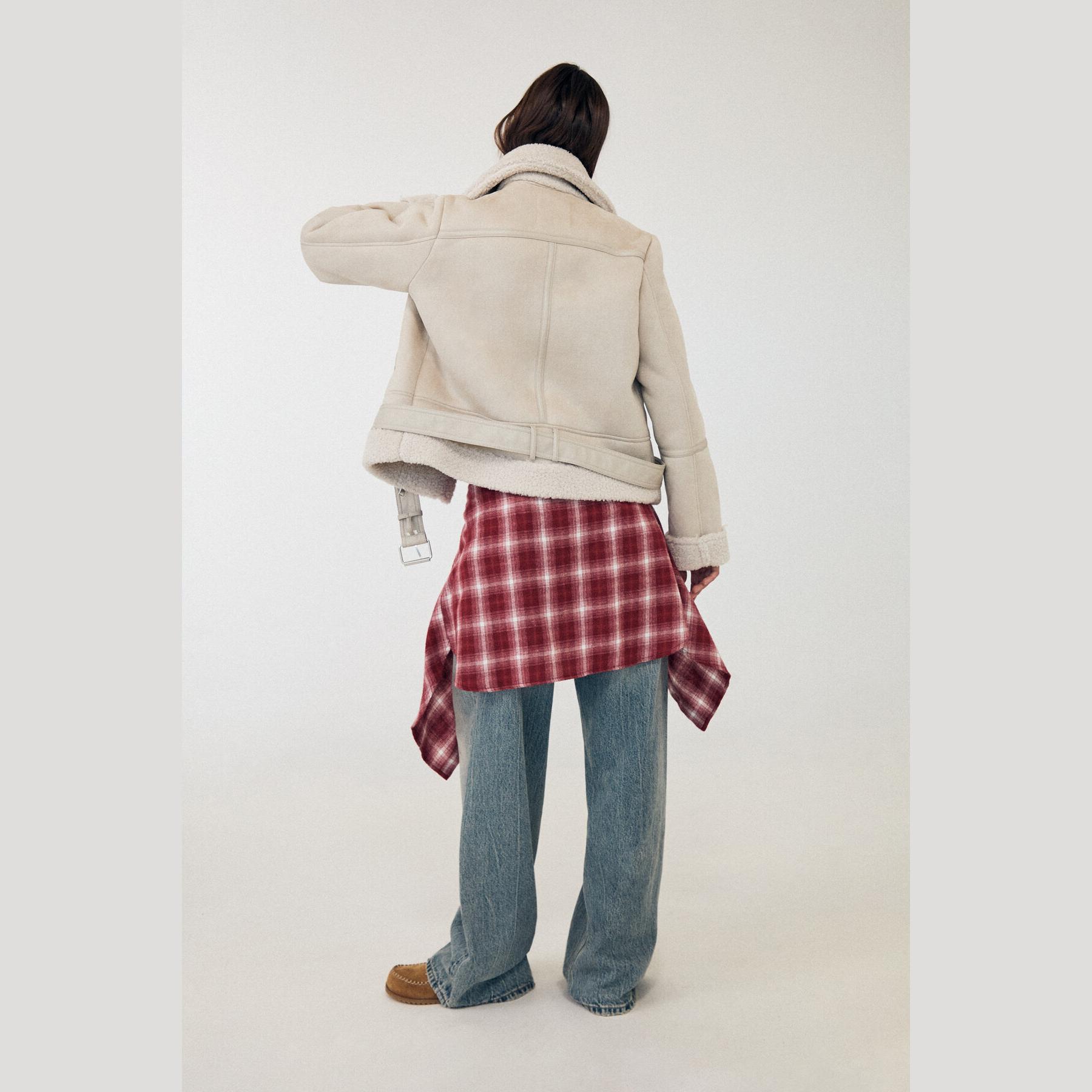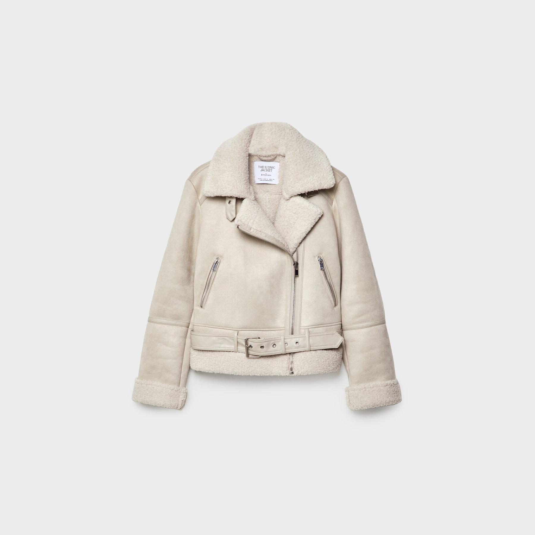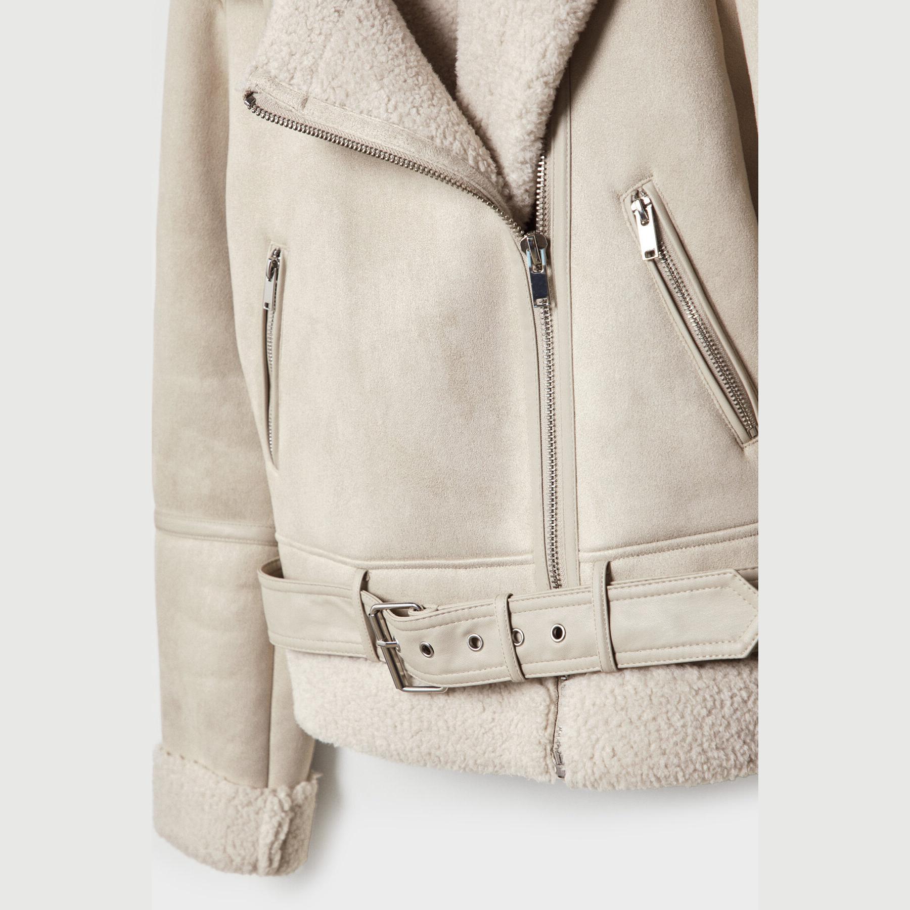 جاكيت بايكر مبطن بالفرو الصناعي – إكرو من Stradivarius