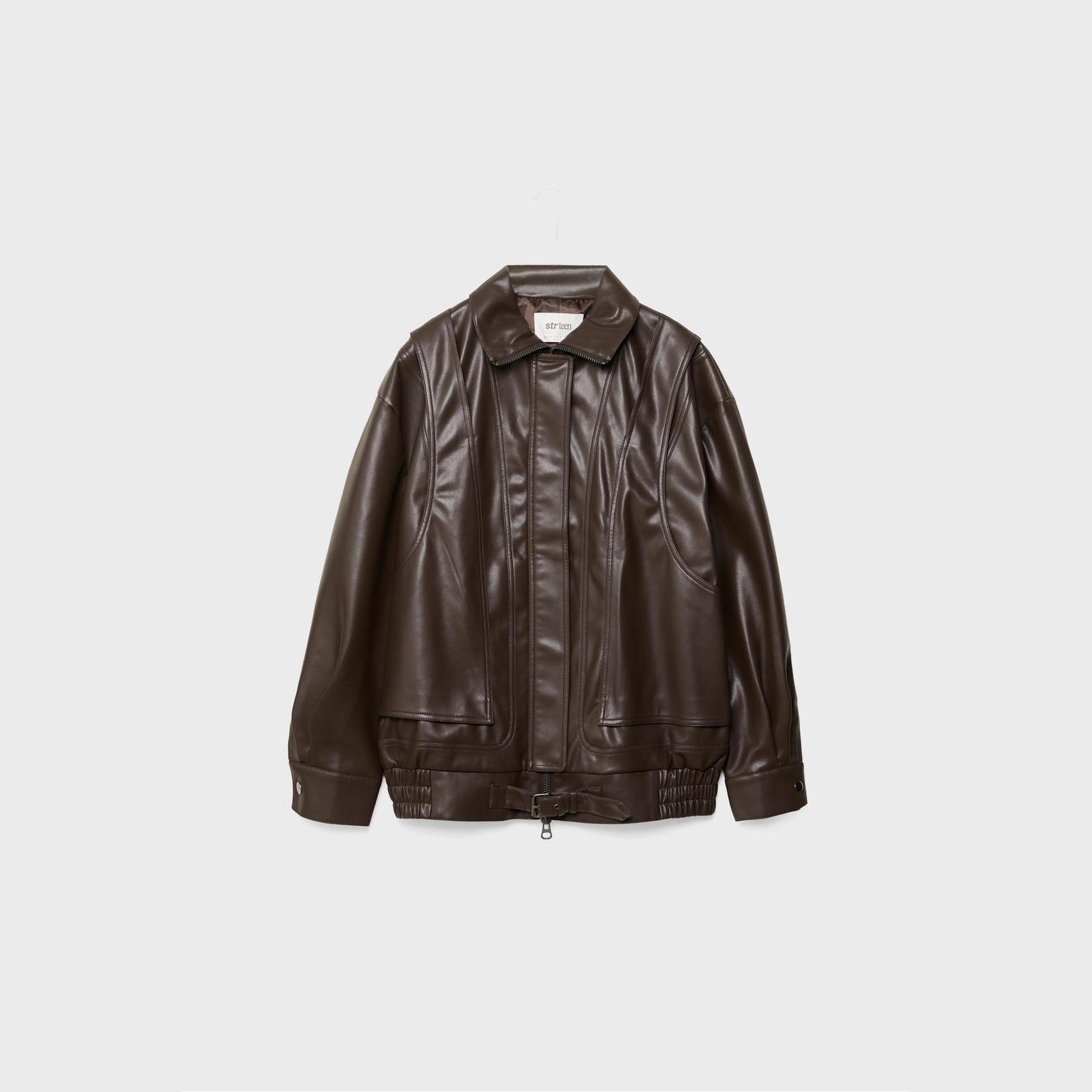 جاكيت واسع من الجلد الصناعي – بني من Stradivarius