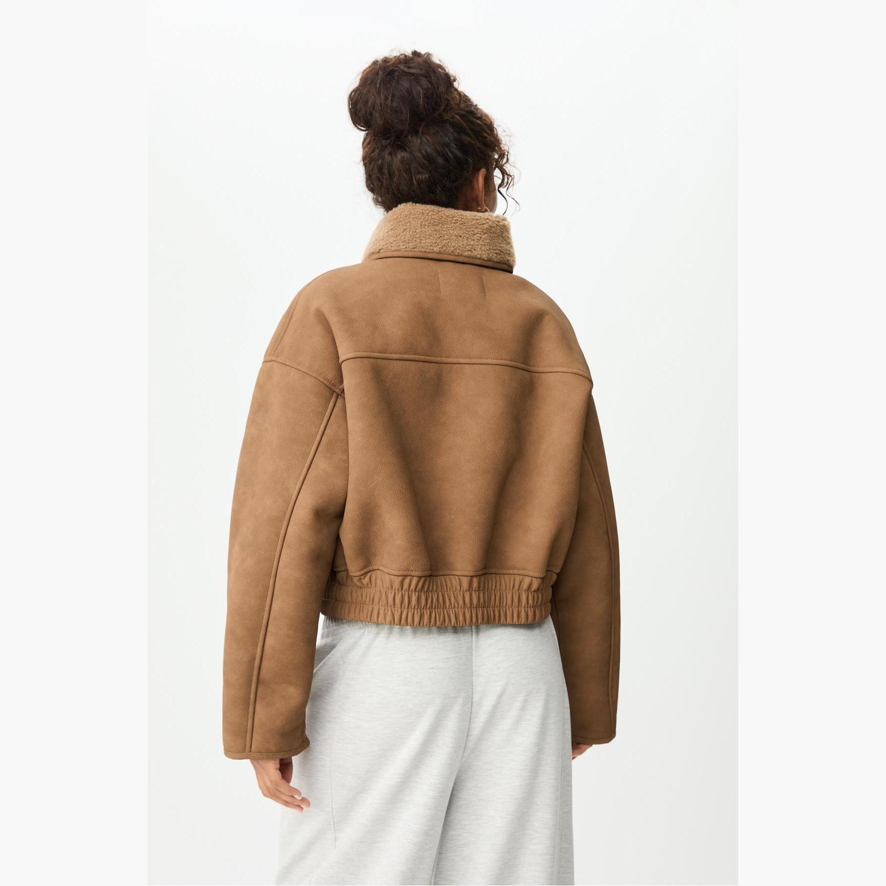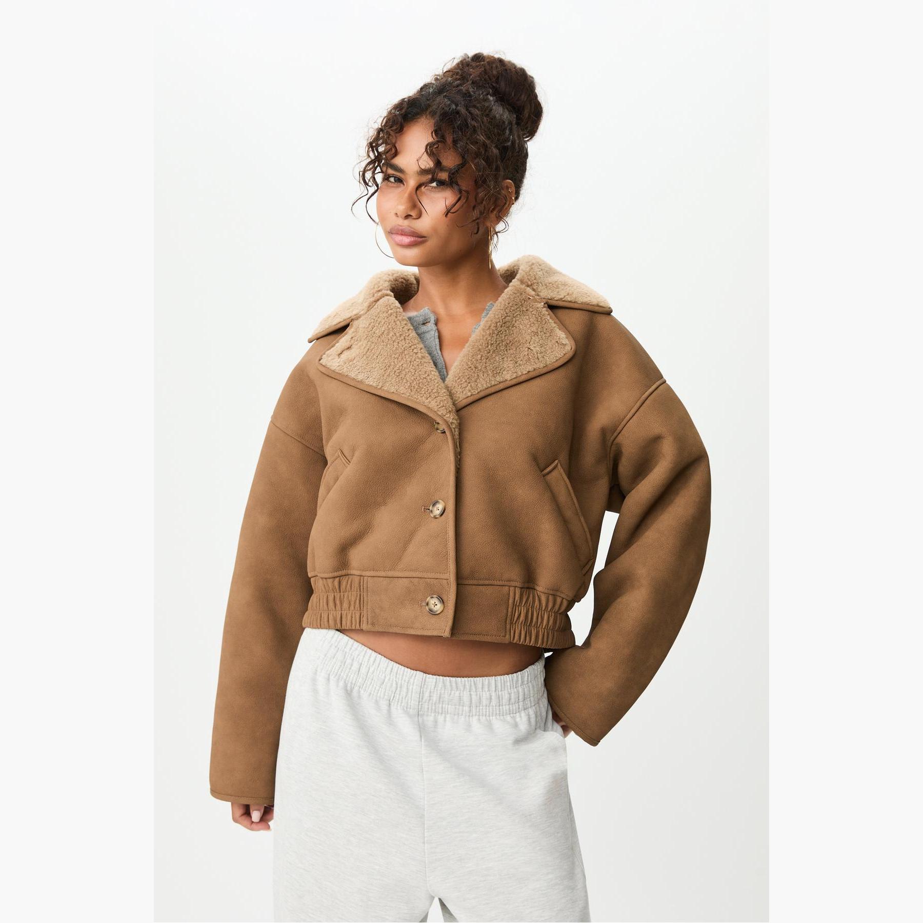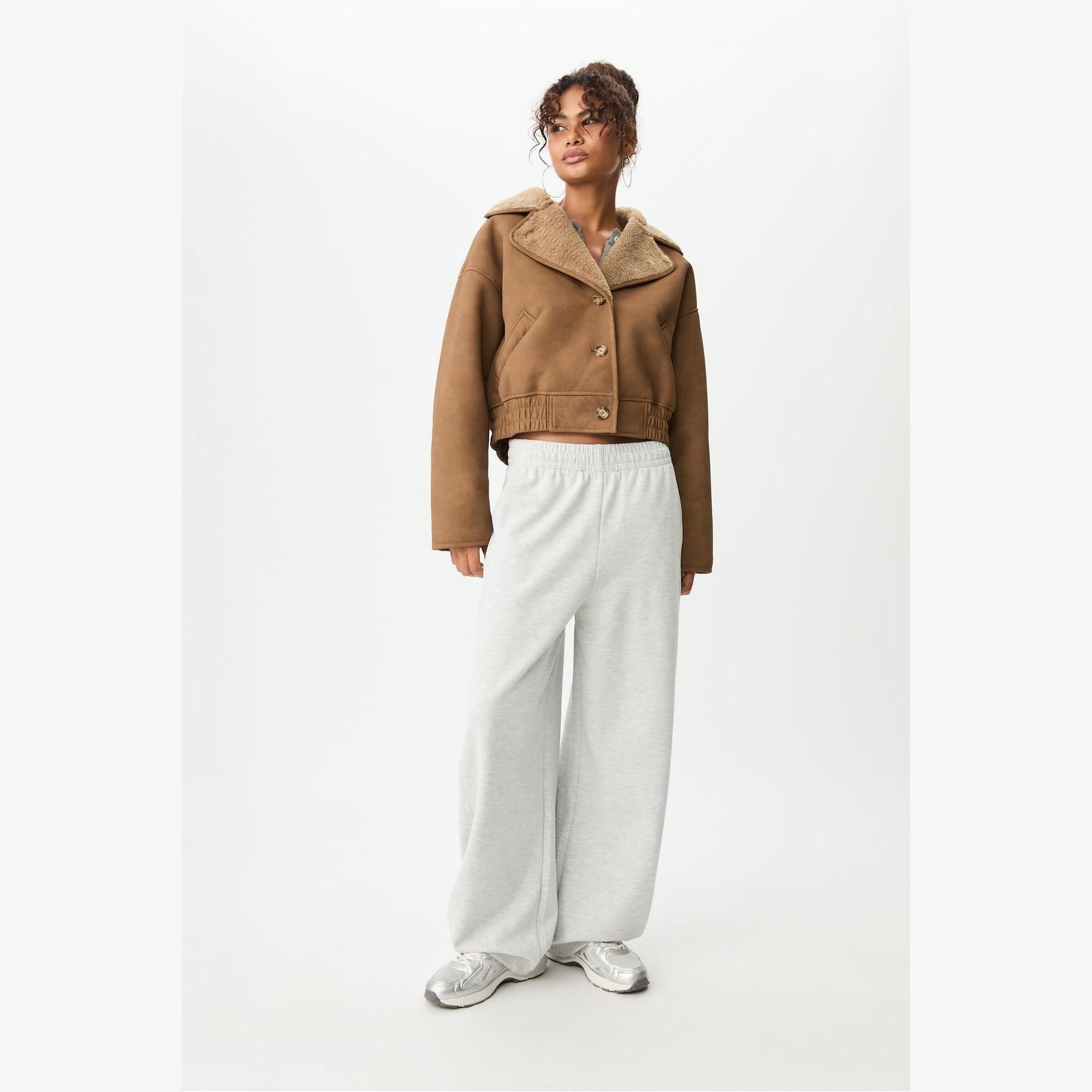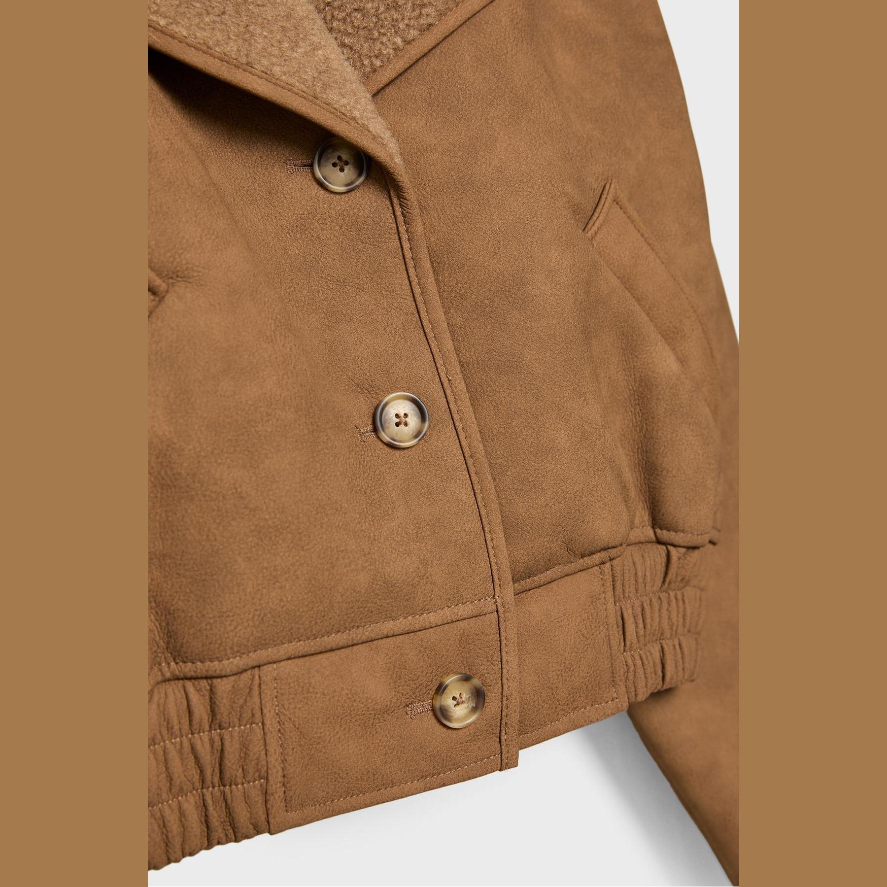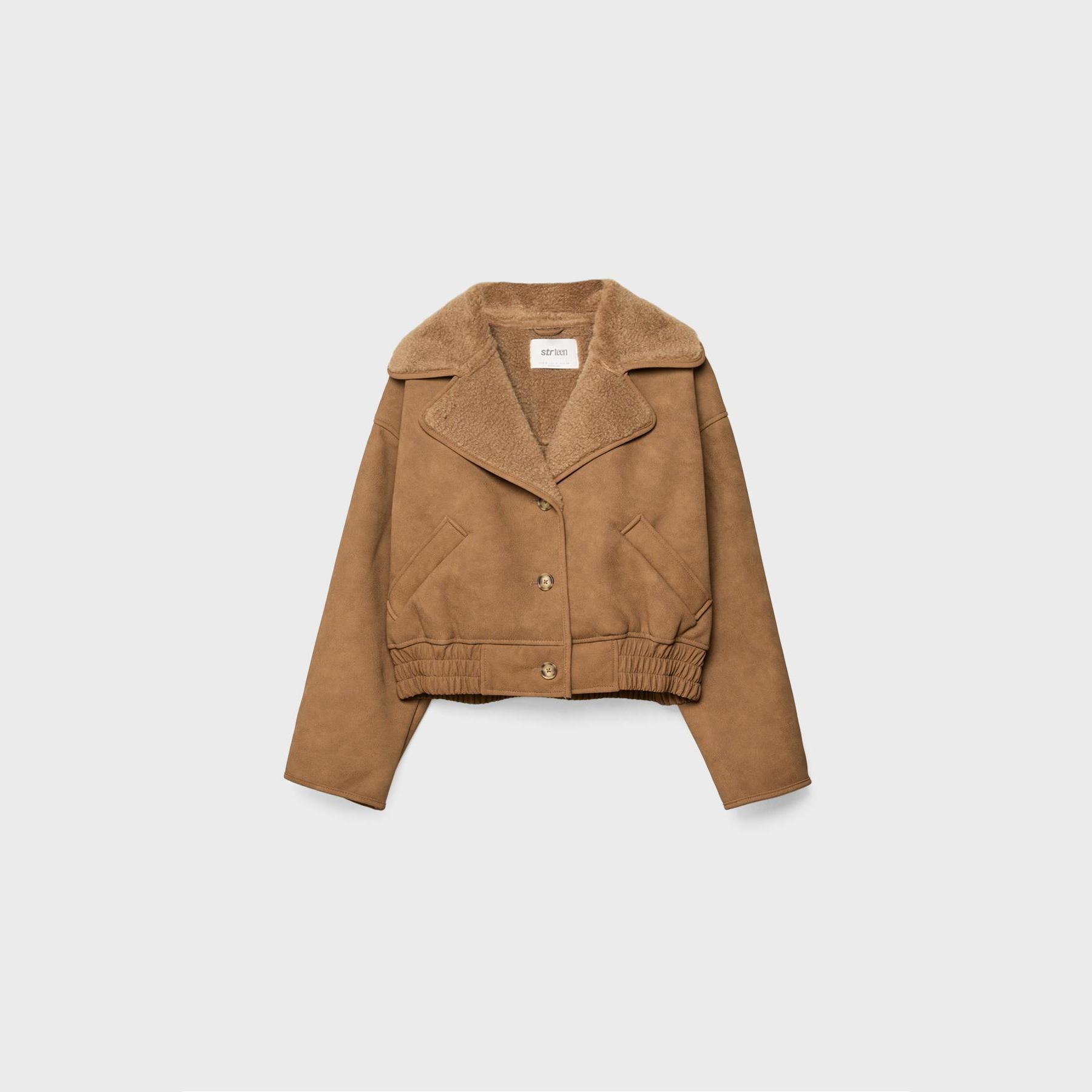 جاكيت قصير مبطن بالفرو الصناعي – كريمي من Stradivarius