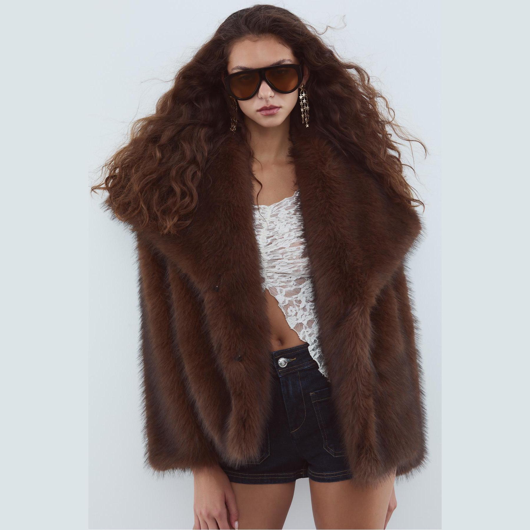 جاكيت قصير من الفرو الصناعي – بني من Stradivarius