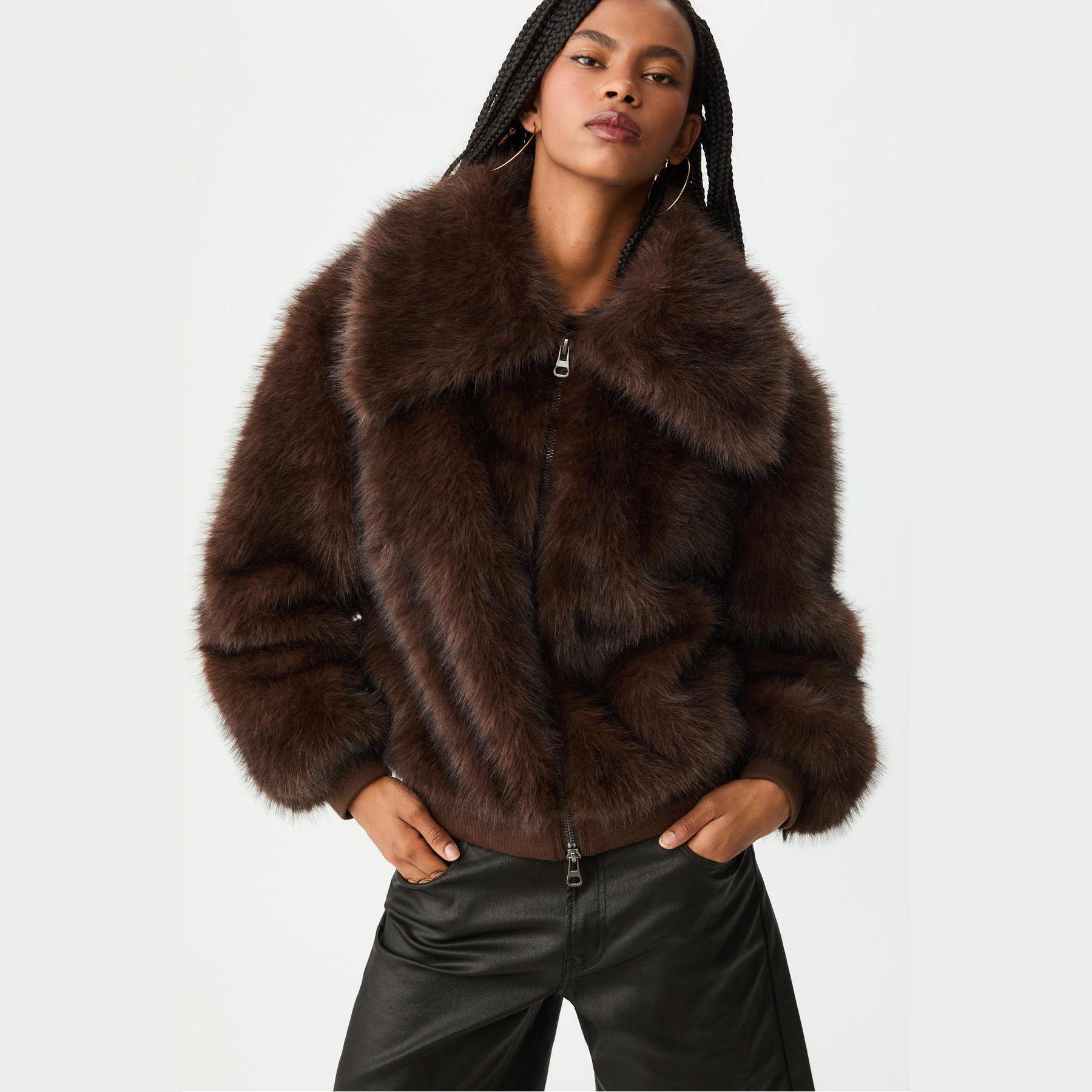 جاكيت من الفرو الصناعي – بني من Stradivarius