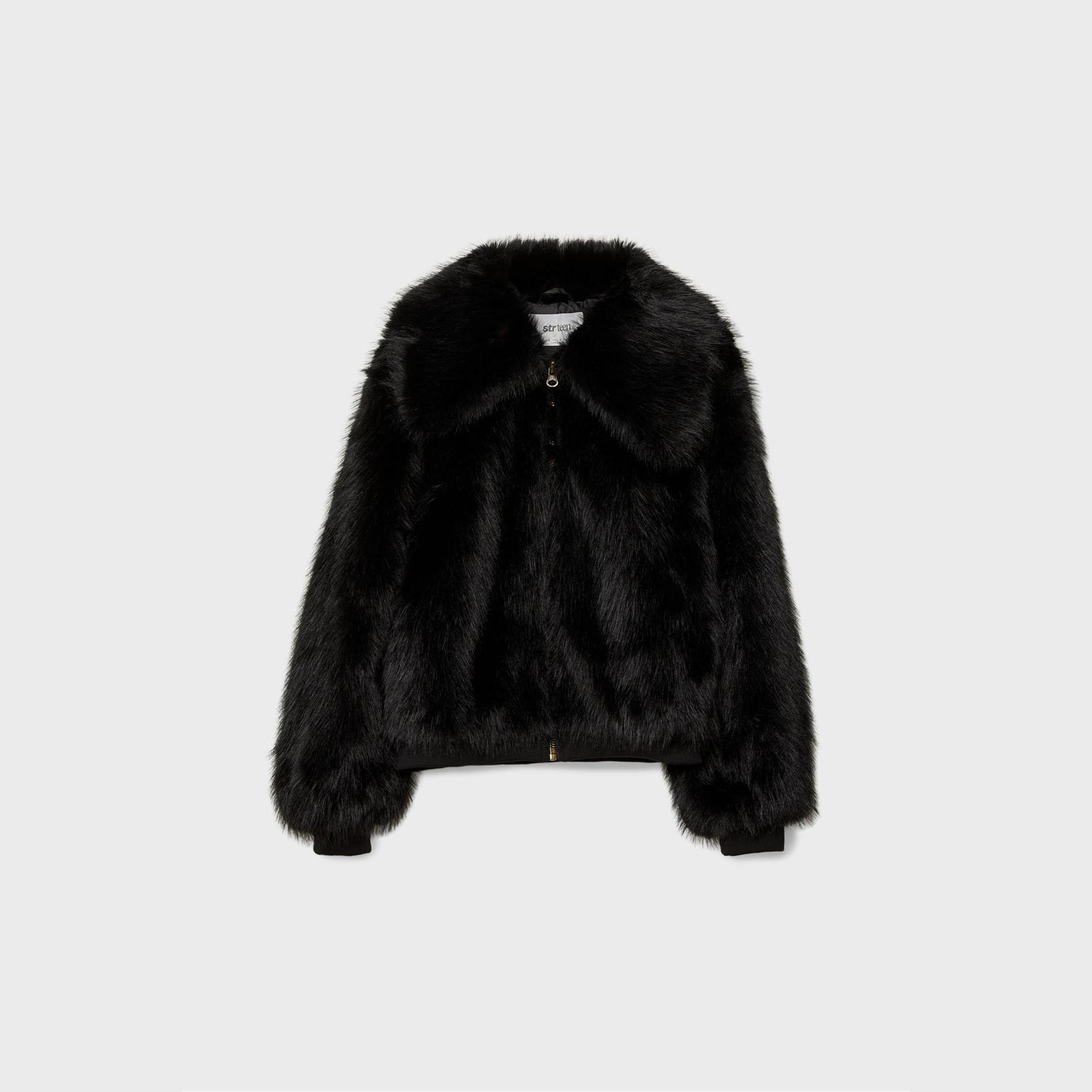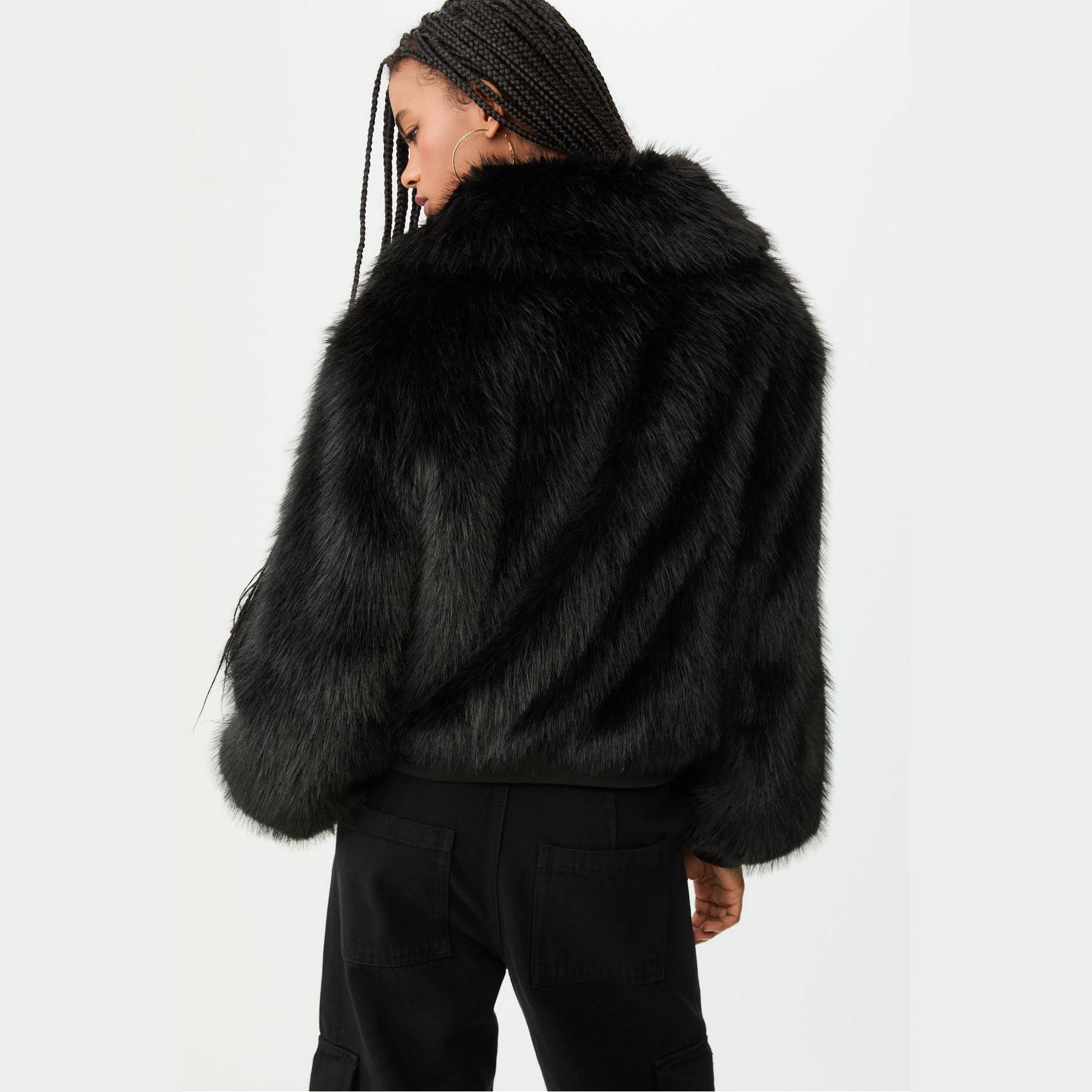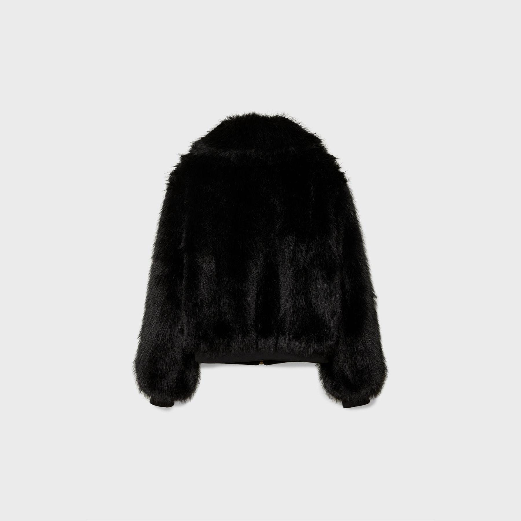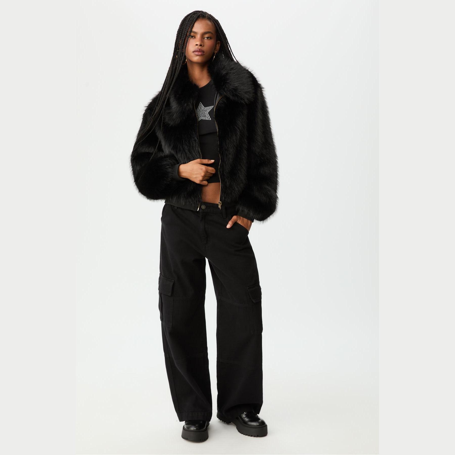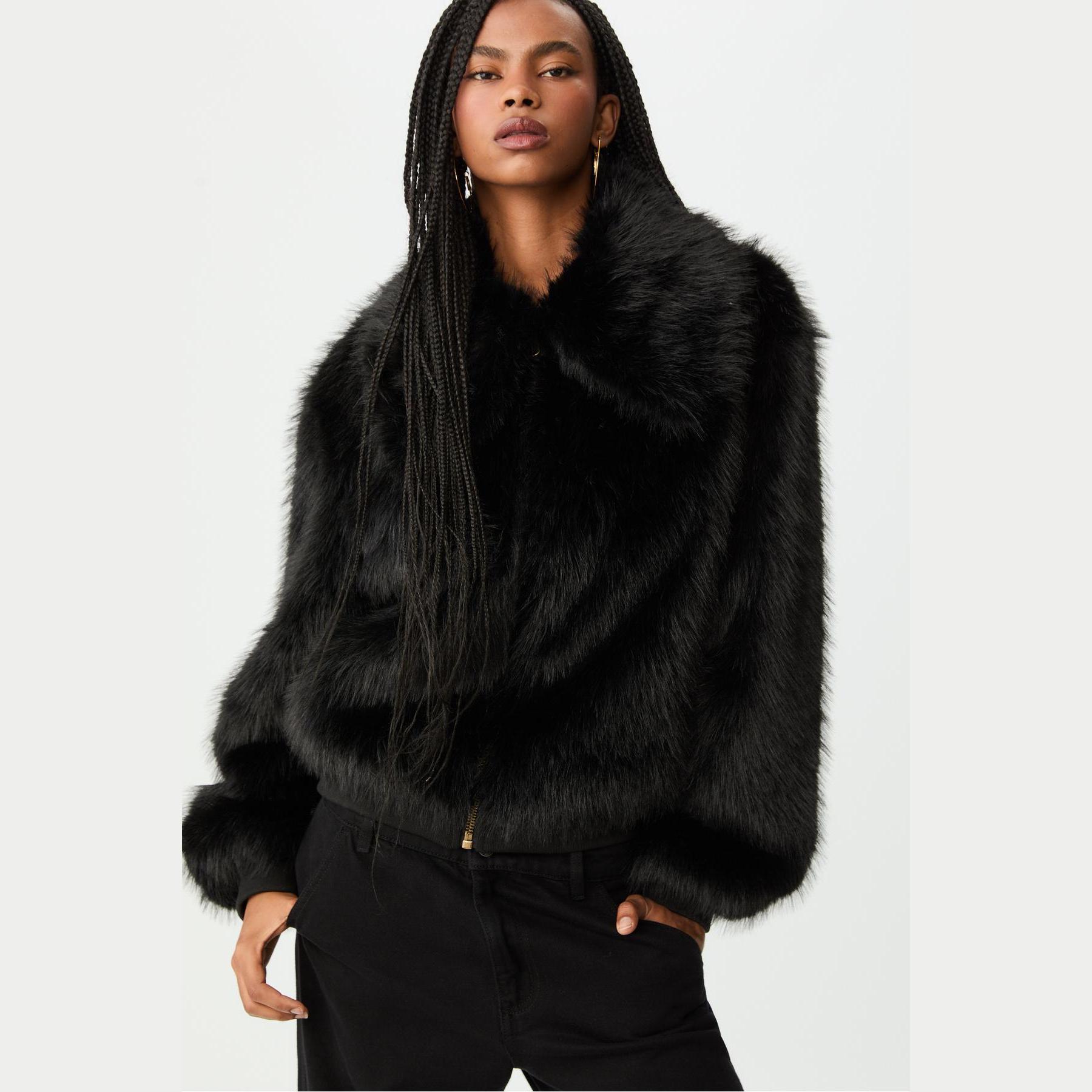 جاكيت من الفرو الصناعي بسحاب أمامي – أسود من Stradivarius