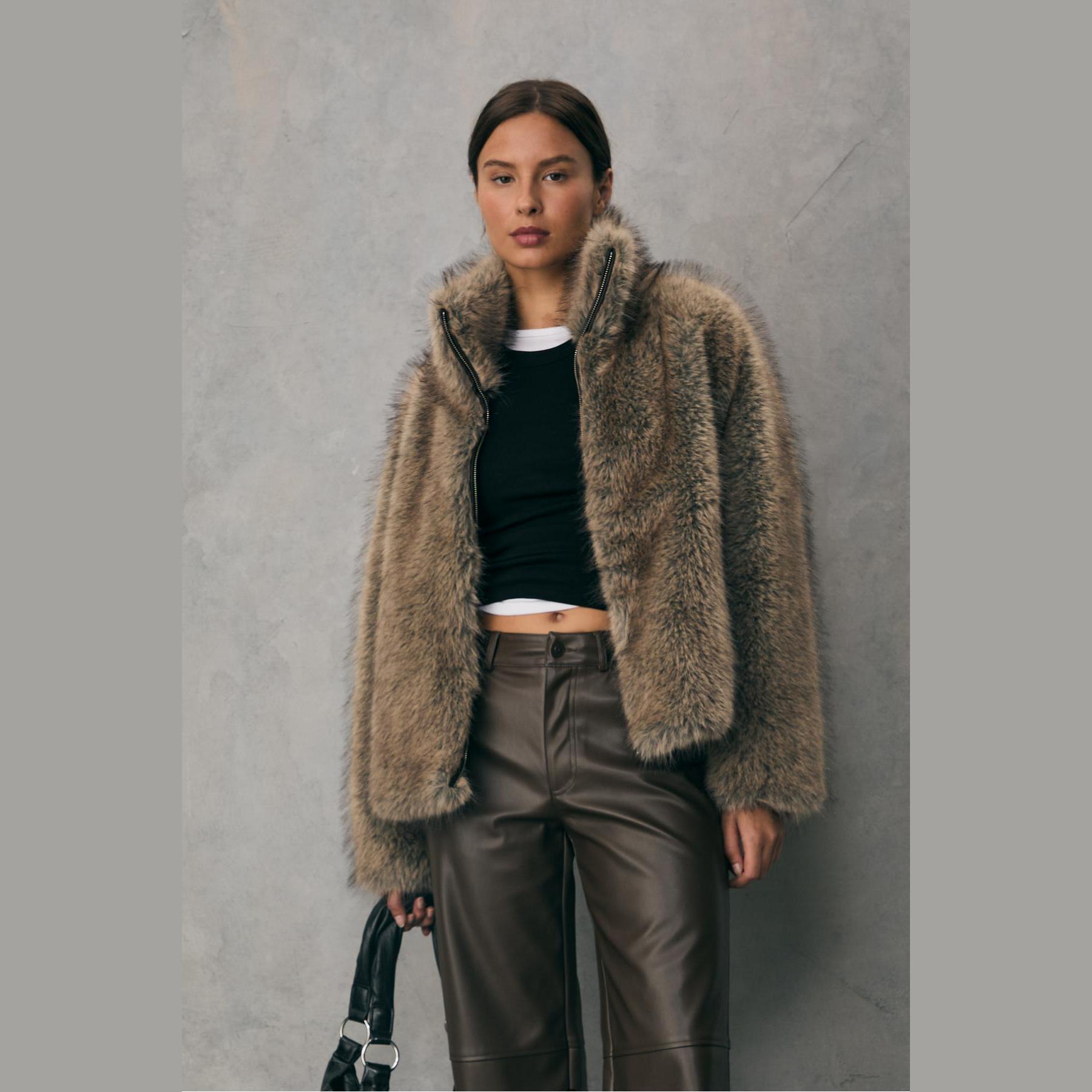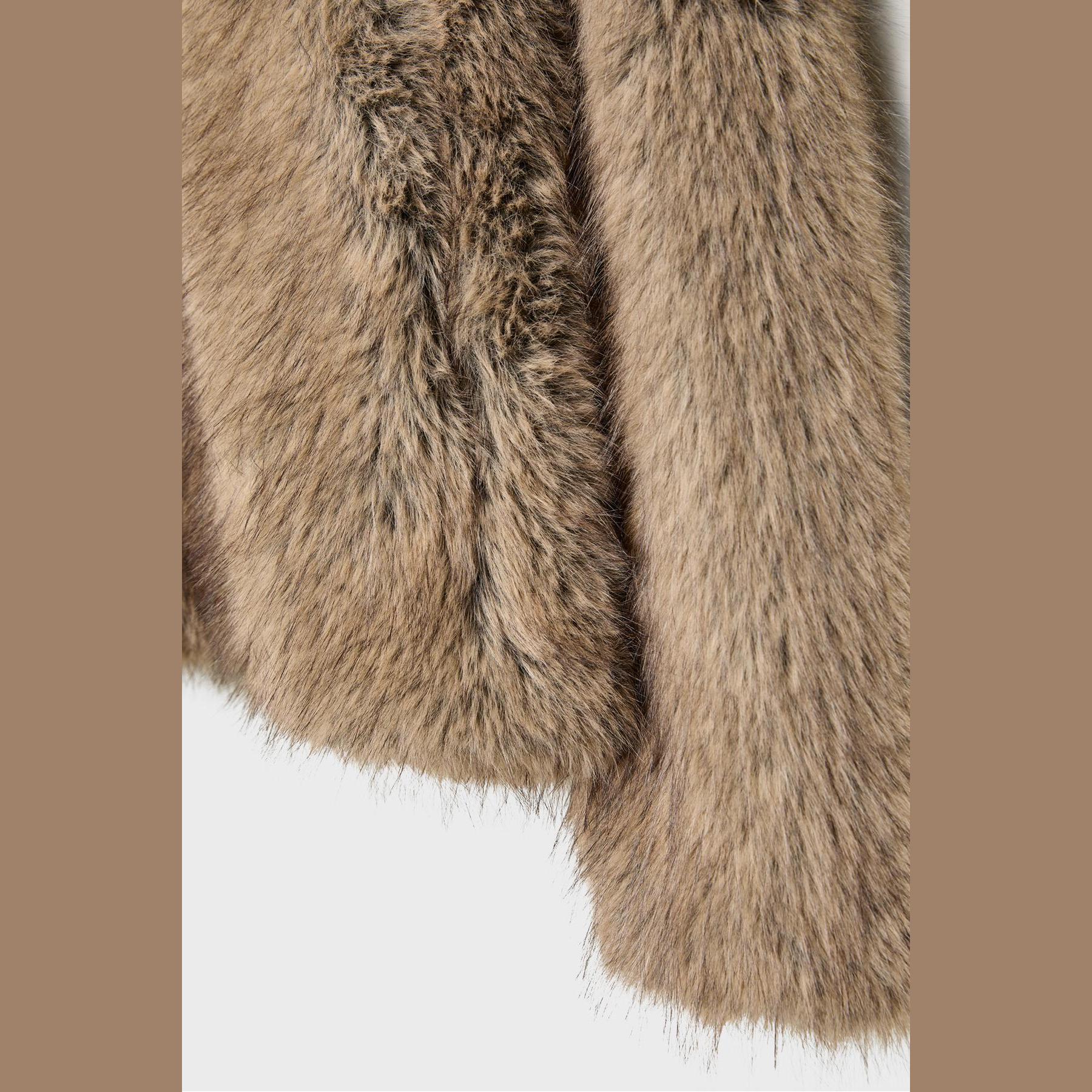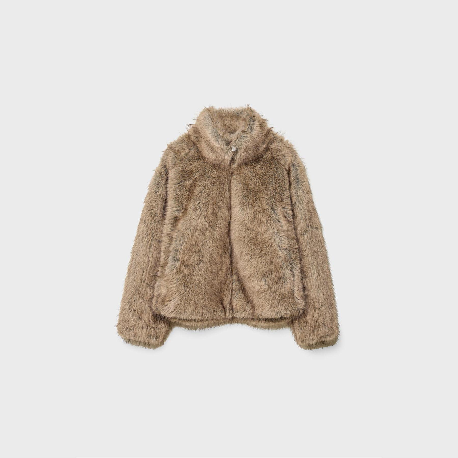 جاكيت من الفرو الصناعي بياقة عالية – بيج من Stradivarius
