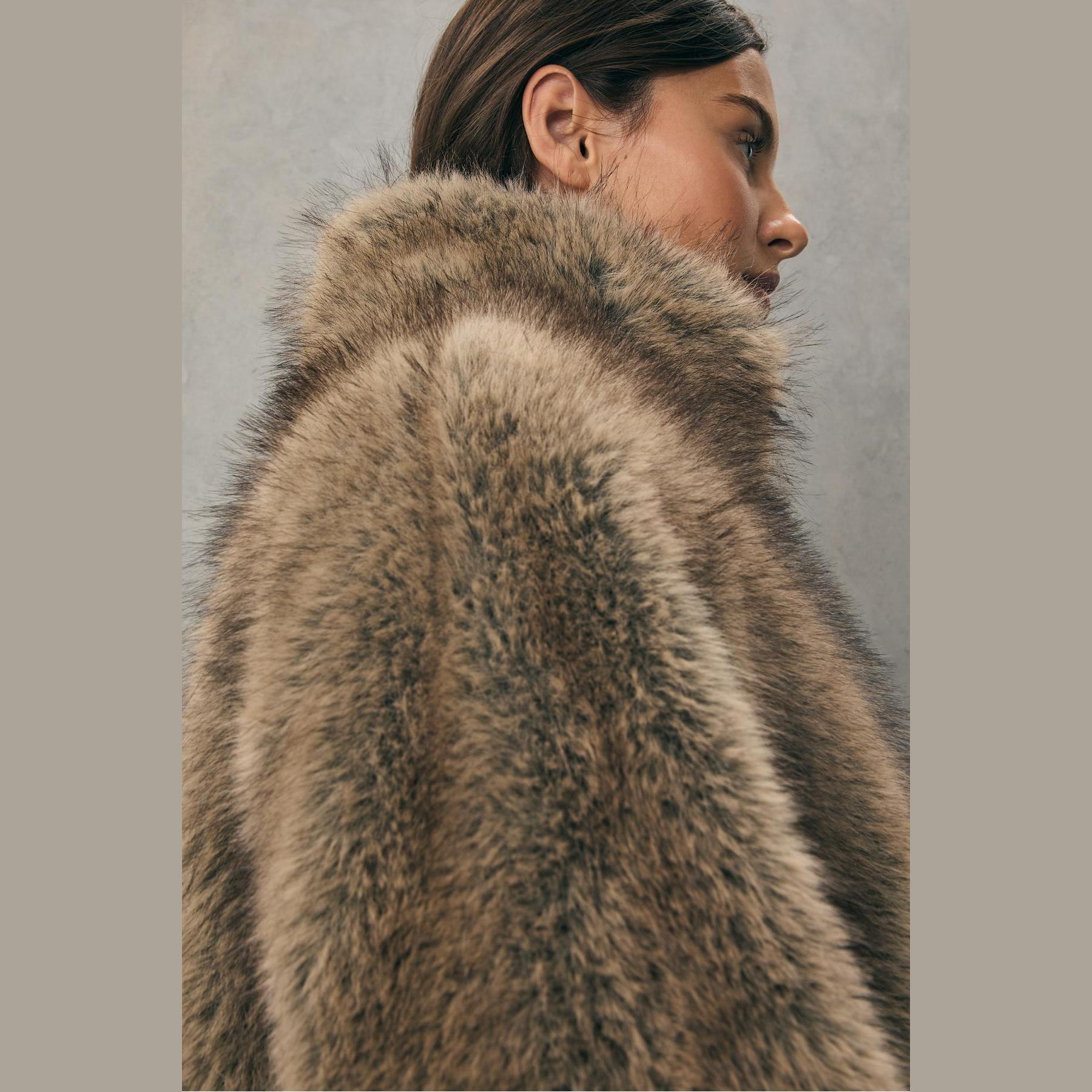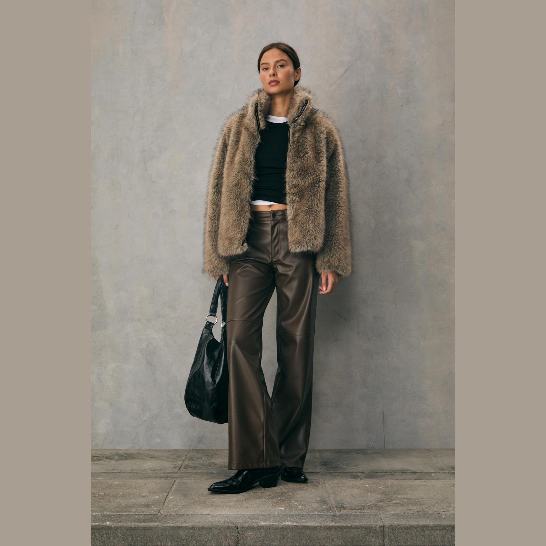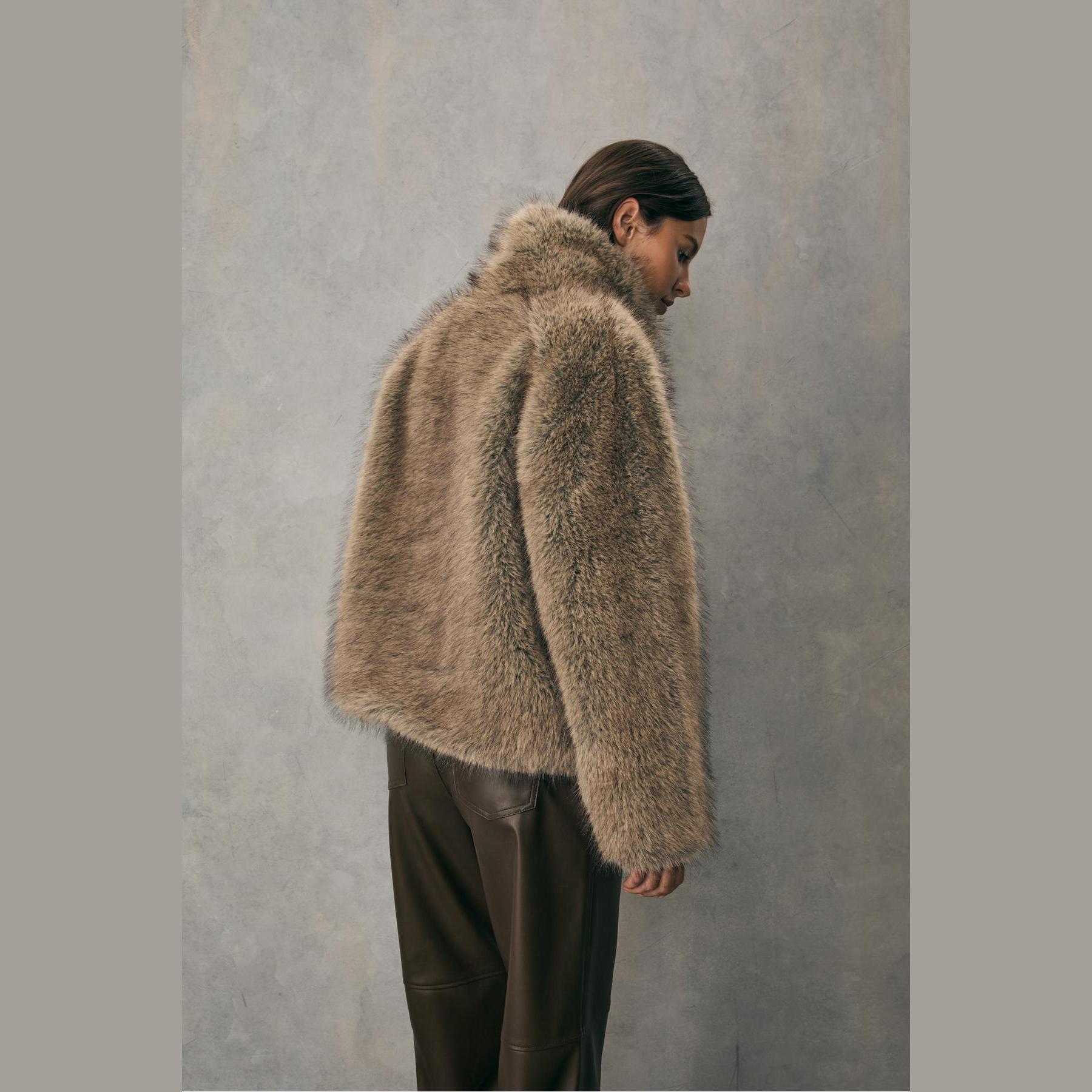 جاكيت من الفرو الصناعي بياقة عالية – بيج من Stradivarius