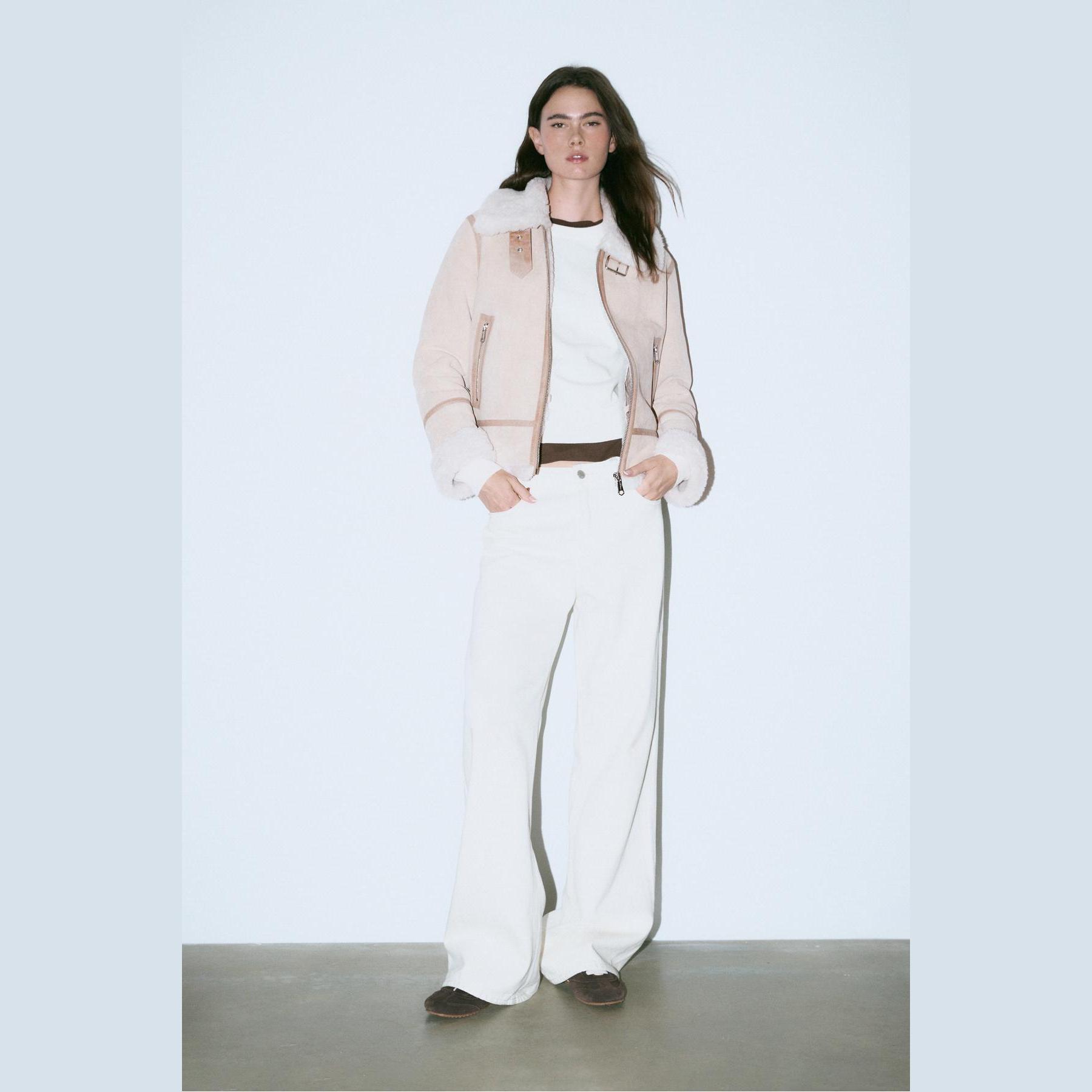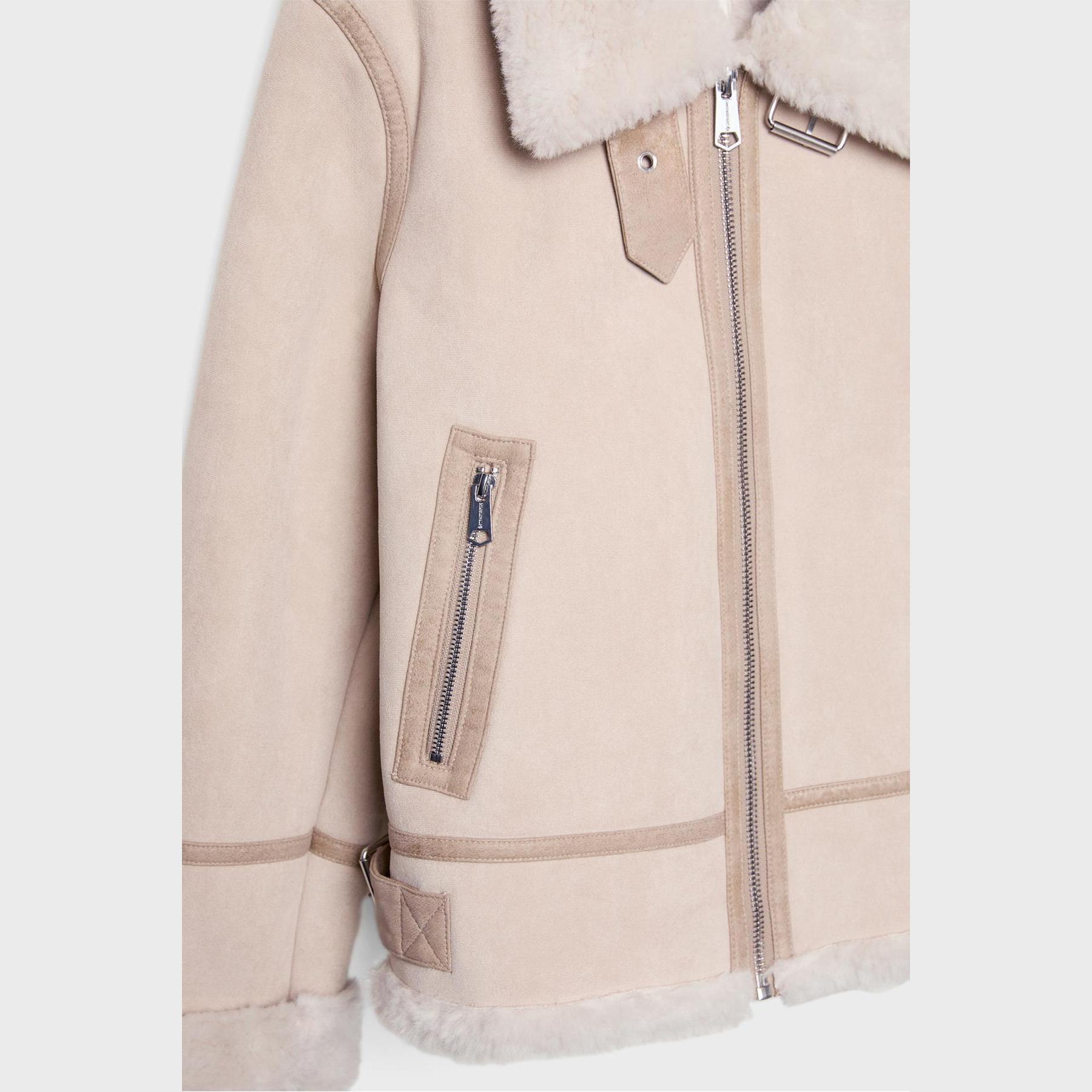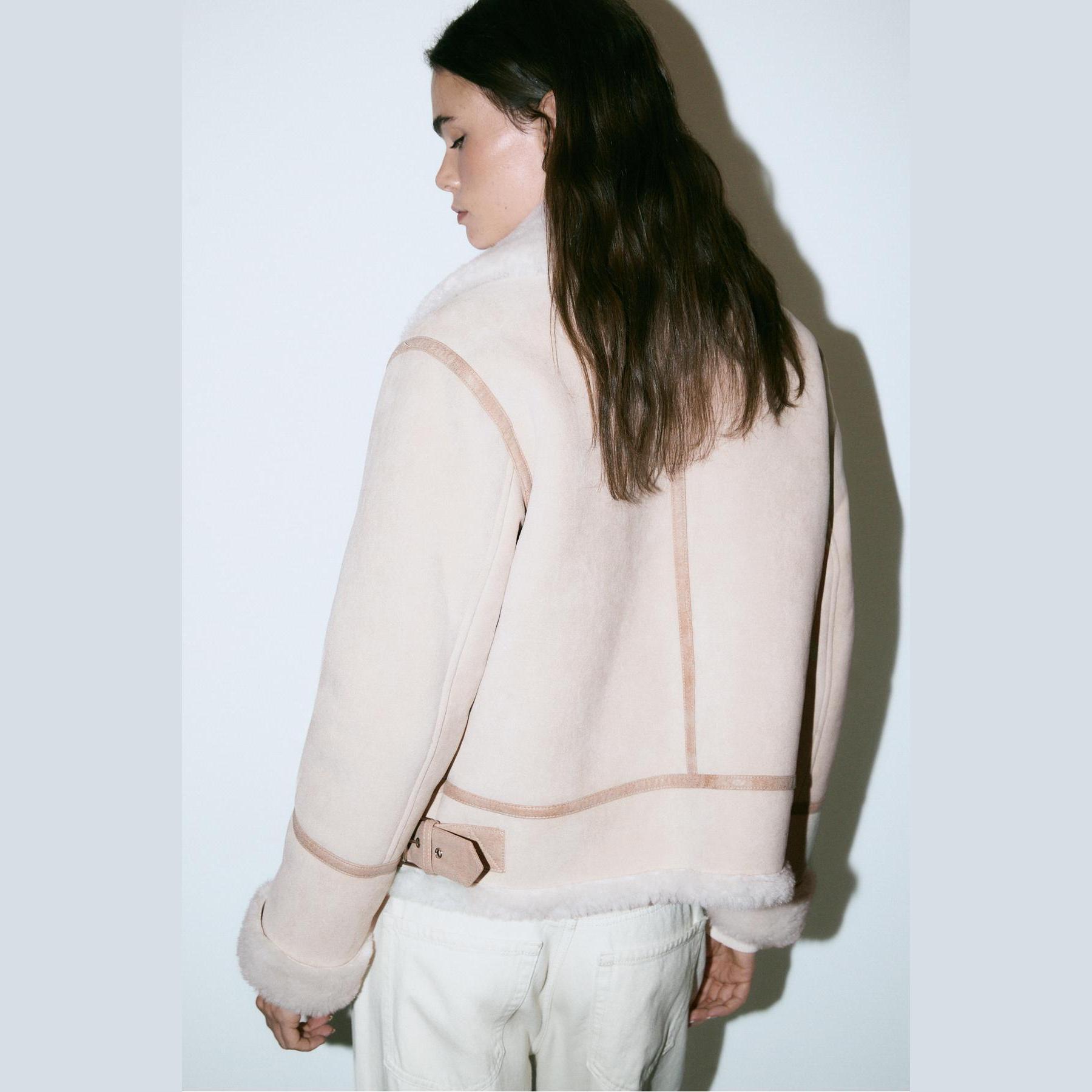 جاكيت بقصة مستقيمة مبطن بالفرو الصناعي – إكرو من Stradivarius