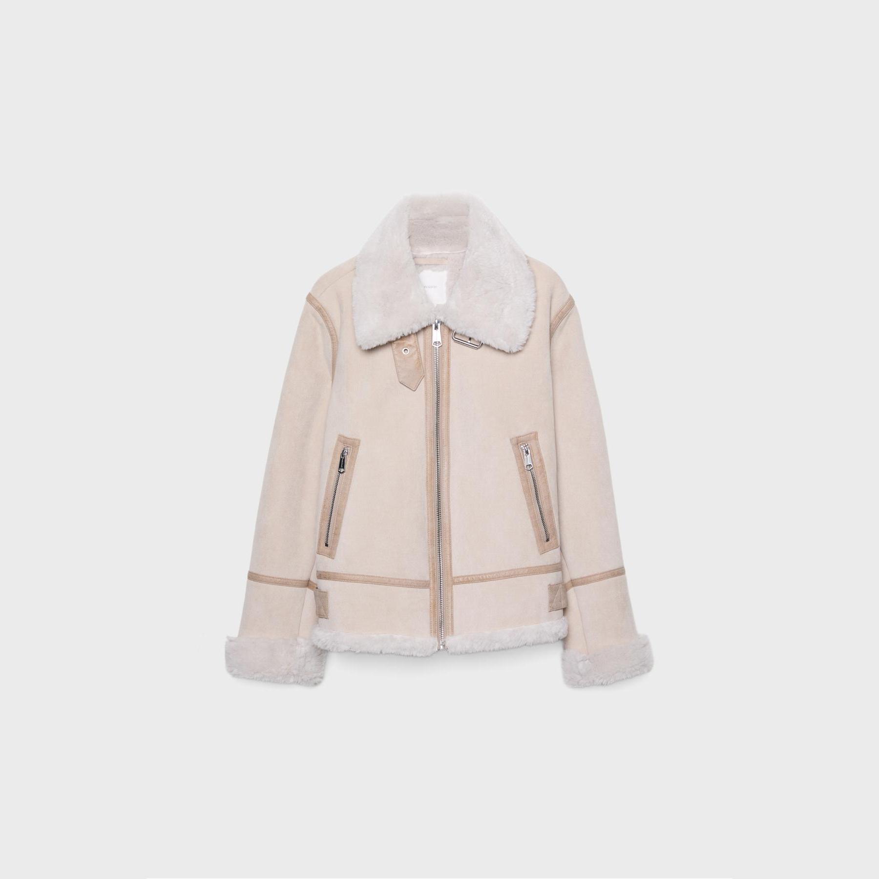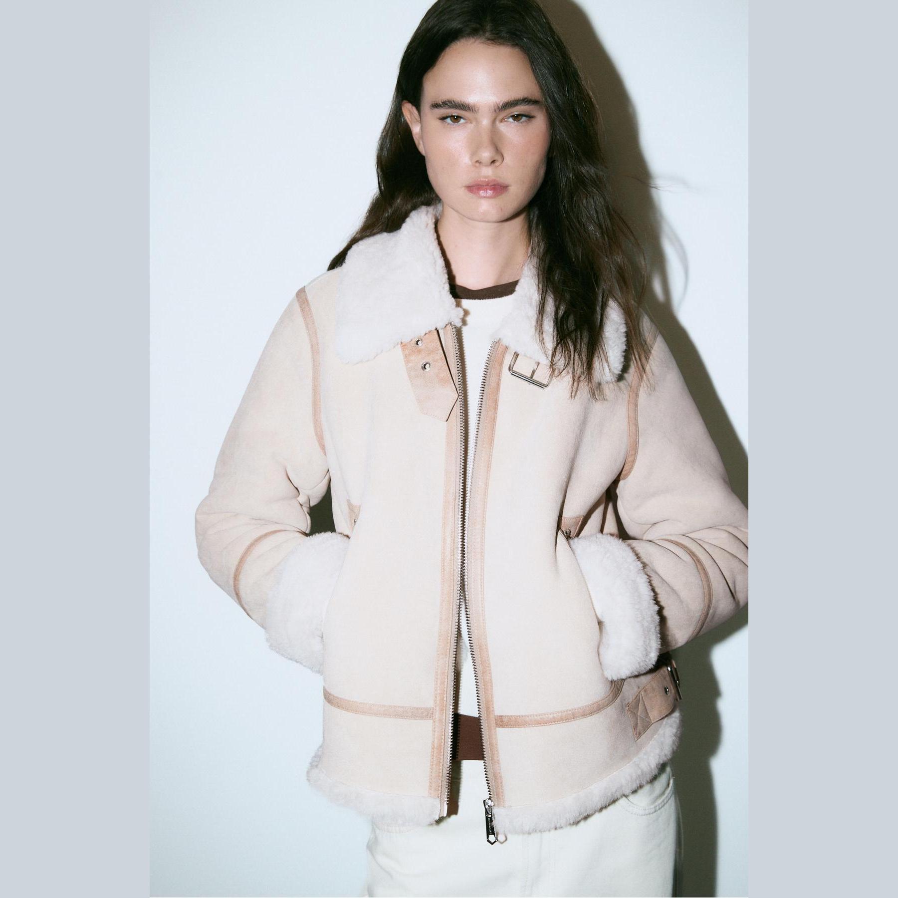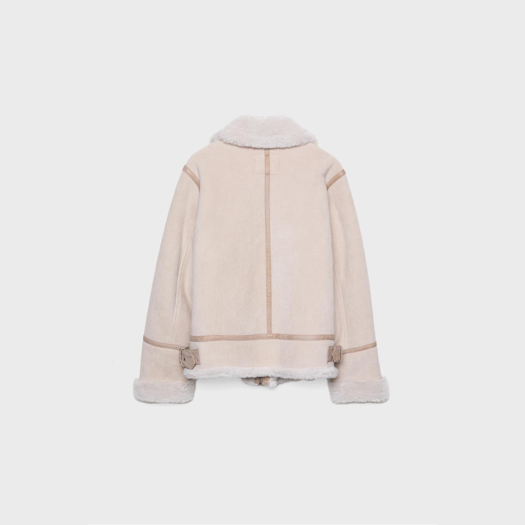 جاكيت بقصة مستقيمة مبطن بالفرو الصناعي – إكرو من Stradivarius