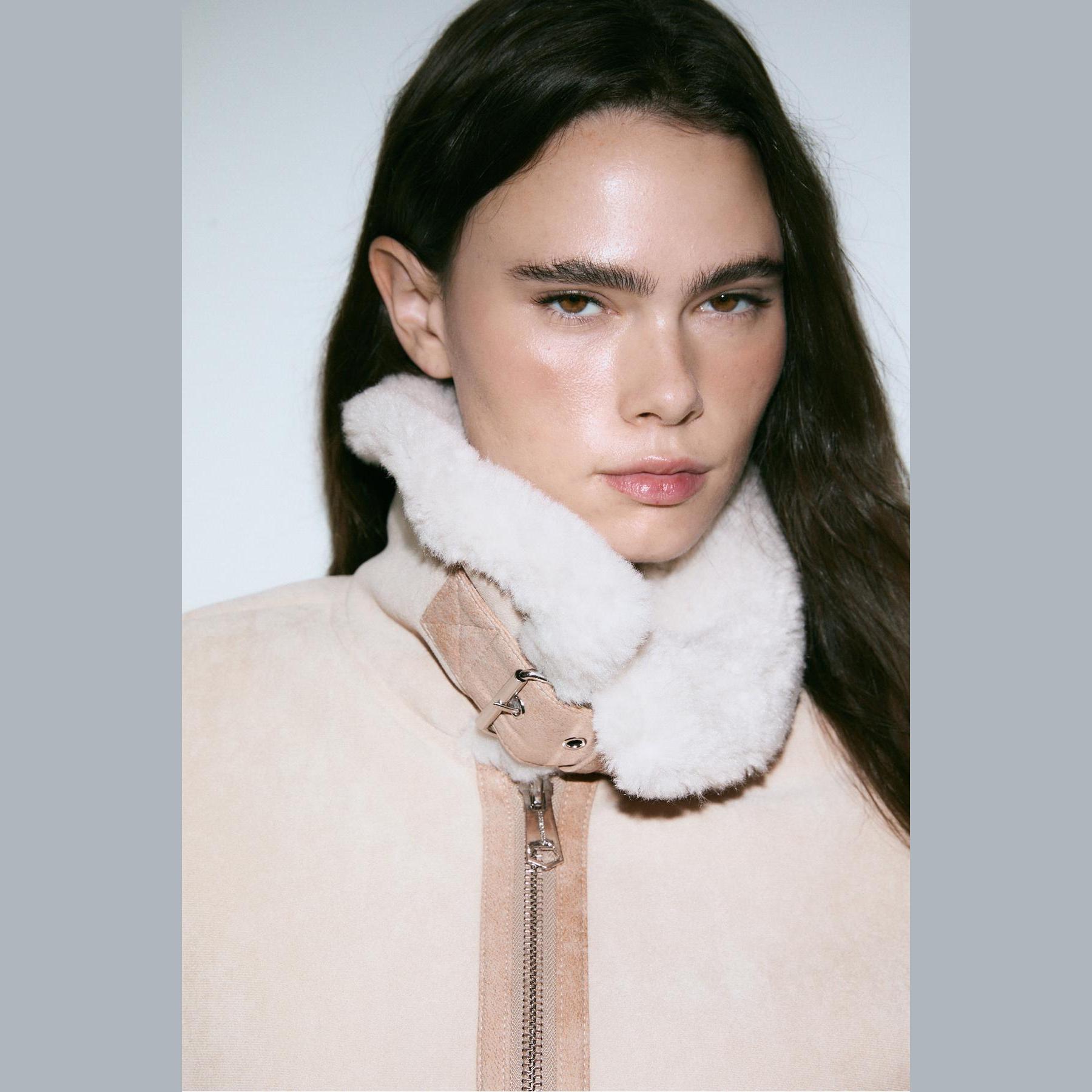 جاكيت شتوي أنيق من Stradivarius بلون إكرو، مصنوع من خامة ناعمة بتركيبة 92% بوليستر، 8% إيلاستان، يتميز بقصة Regular Fit، ياقة Ceket مستقيمة، أكمام طويلة بكُمّات منحنية، إغلاق أمامي بسحاب معدني، مزود بجيوب أمامية بسحاب، تصميم Dokuma بملمس يشبه الفرو الصناعي، مبطن بالكامل من الداخل، مزين بشرائط جانبية عند الحافة، مثالي للتنسيق مع قطع كاجوال لإطلالة شتوية دافئة وعصرية.