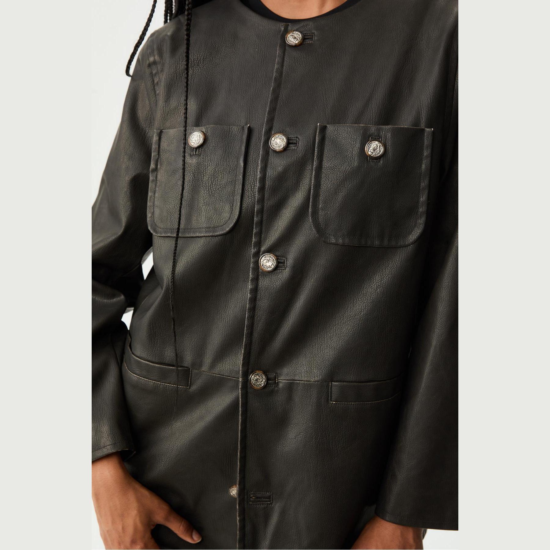 بليزر من الجلد الصناعي بأزرار بارزة – أسود من Stradivarius