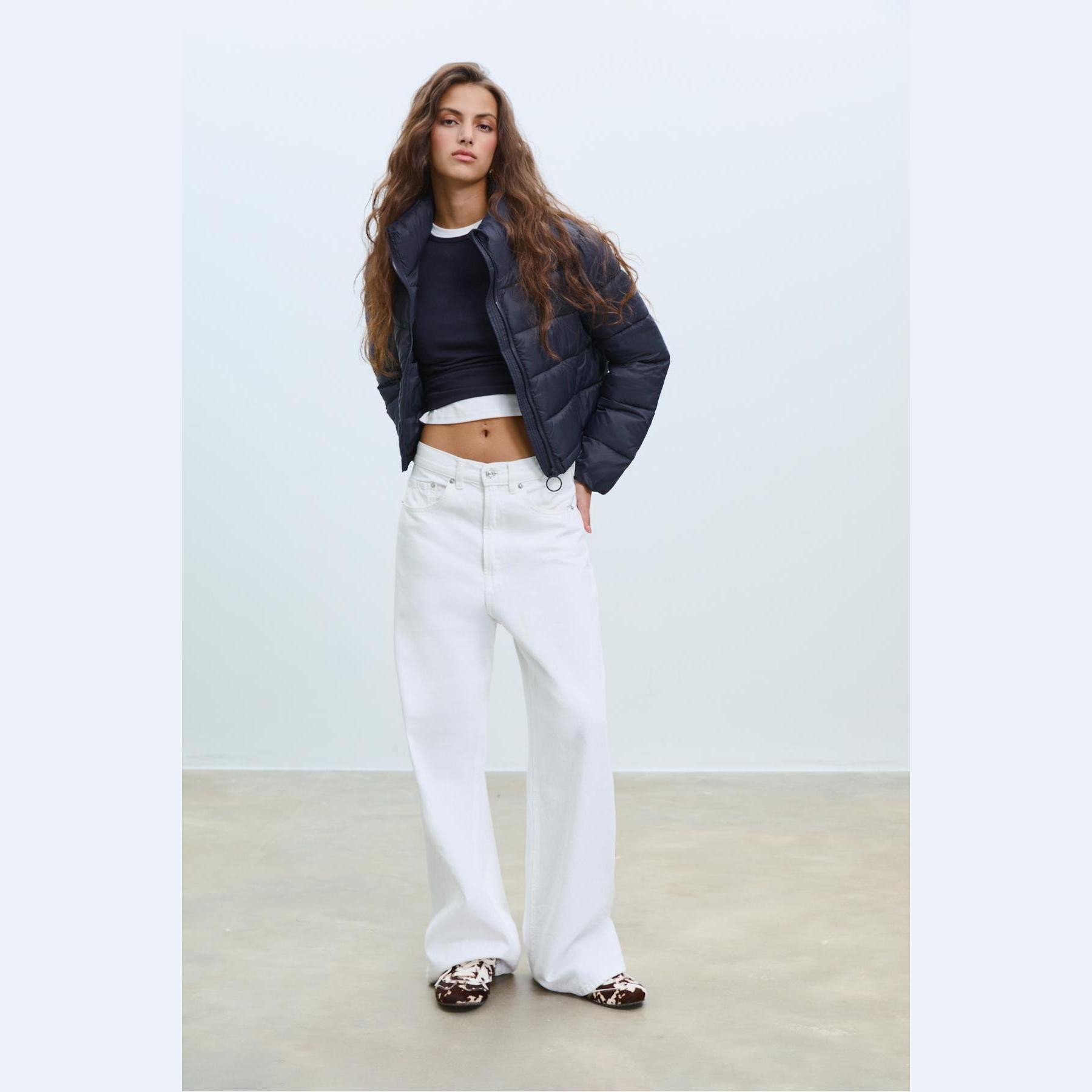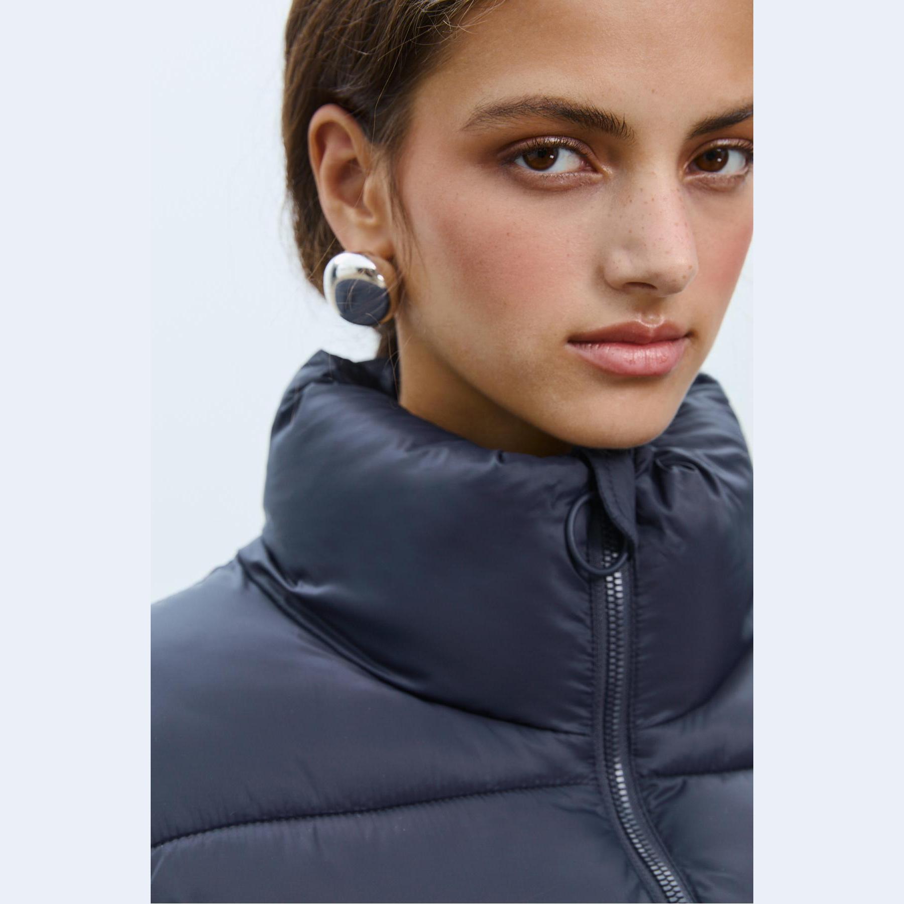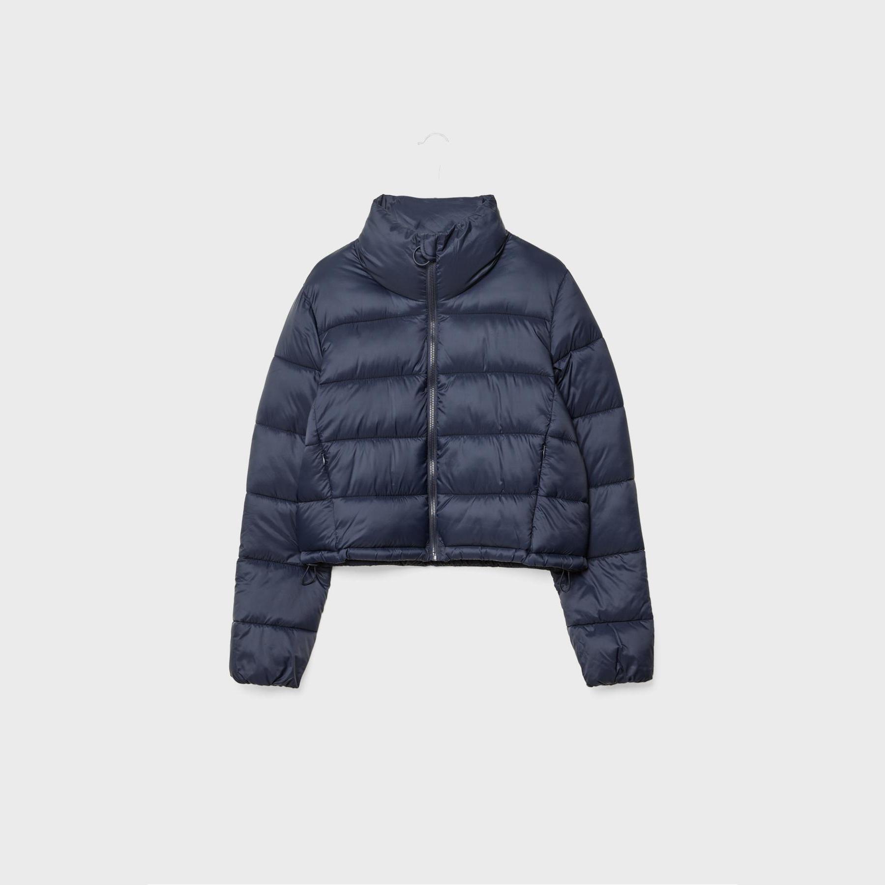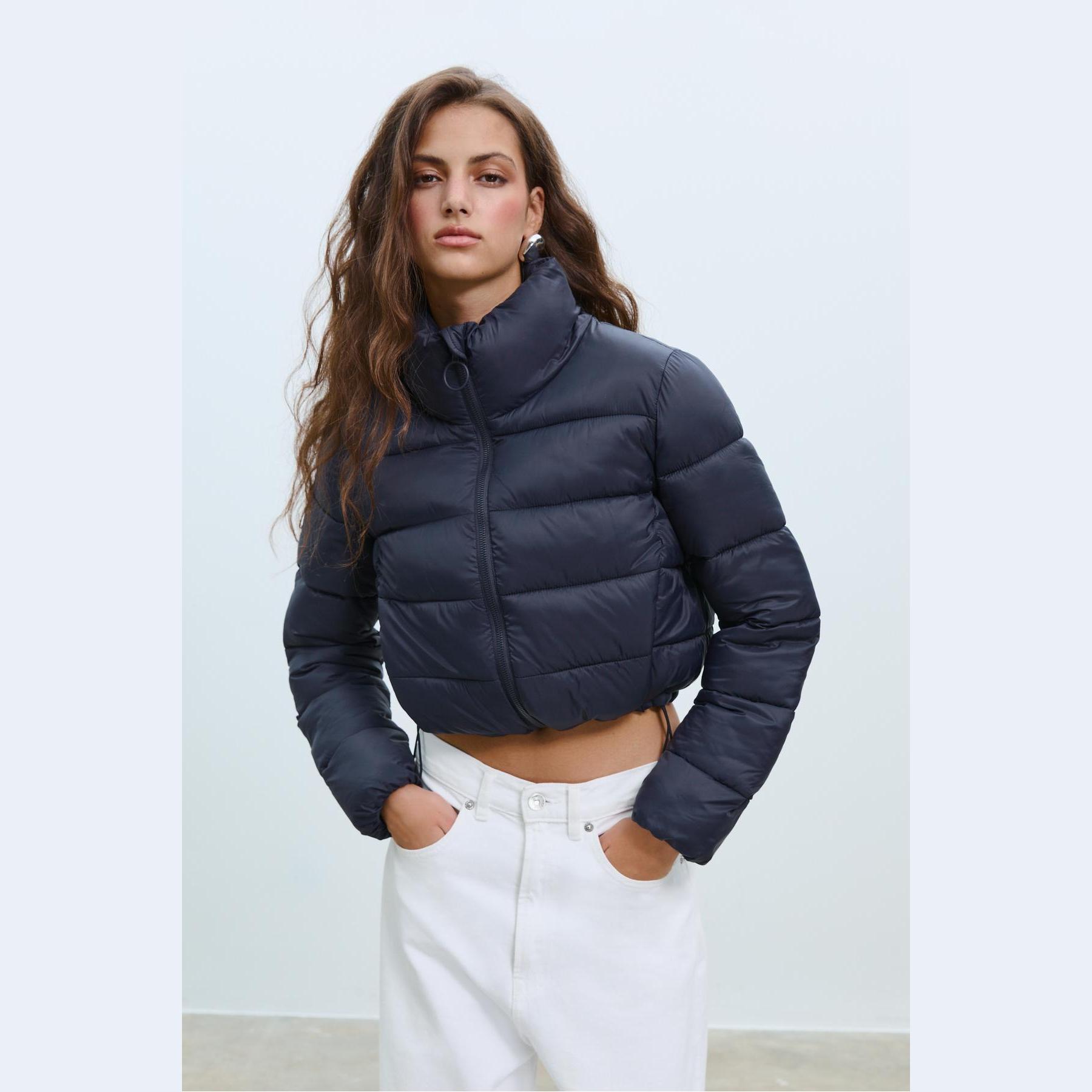 جاكيت قصير مبطن بنقشة كابيتوني وياقة عالية – كحلي من Stradivarius