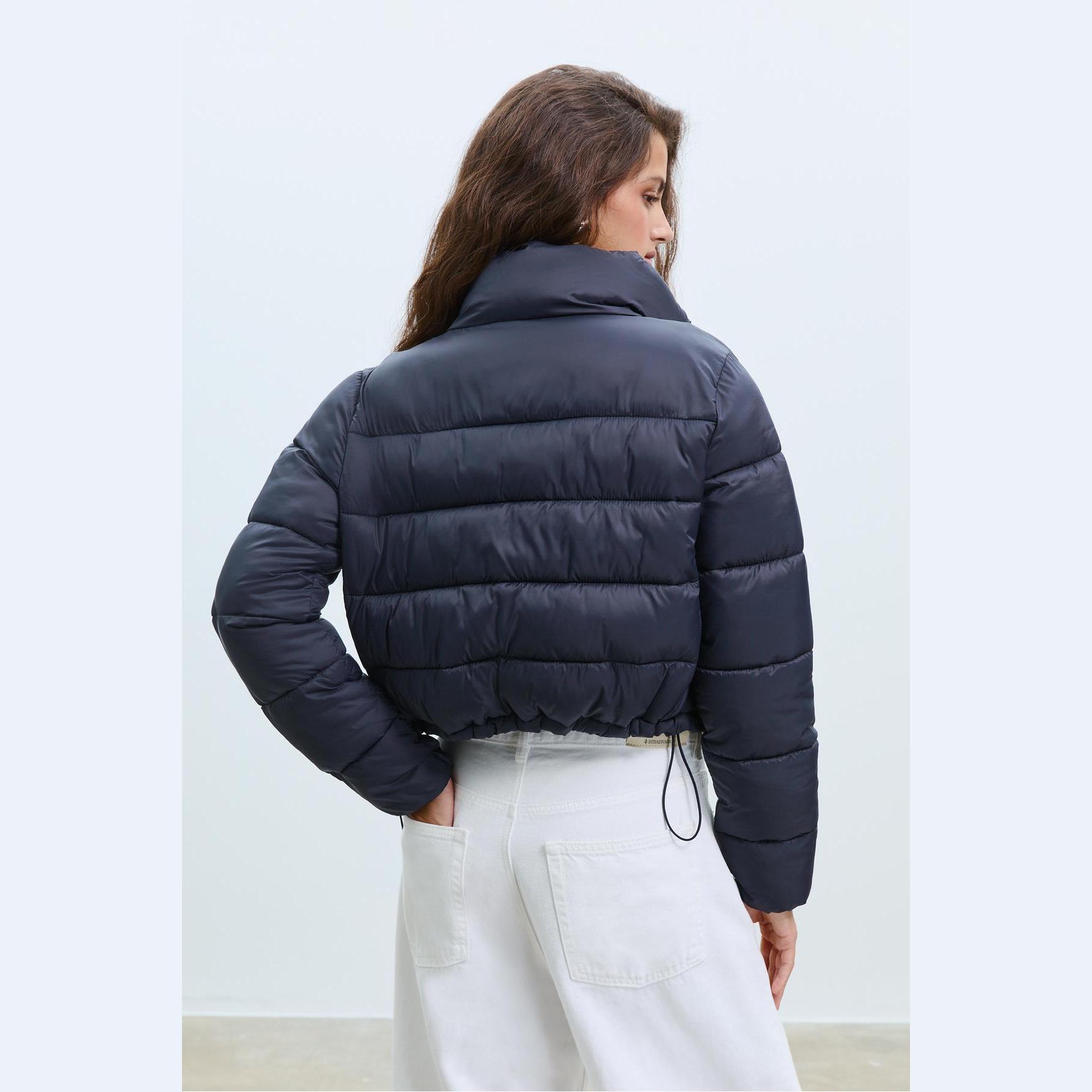 جاكيت شتوي أنيق من Stradivarius بلون كحلي، مصنوع من خامة Dokuma بتركيبة 100% بولياميد، يتميز بقصة Crop Fit قصيرة، ياقة Dik Yaka نصف عالية، أكمام طويلة بكُمّات مطاطية، إغلاق أمامي بسحاب معدني، مزود بجيوب جانبية بسحاب مخفي، تصميم مبطن بنقشة مربعات Ekose، حافة سفلية مزودة برباط مطاطي قابل للتعديل مع ستوبر، مثالي للتنسيق مع قطع كاجوال لإطلالة شتوية دافئة وعصرية.