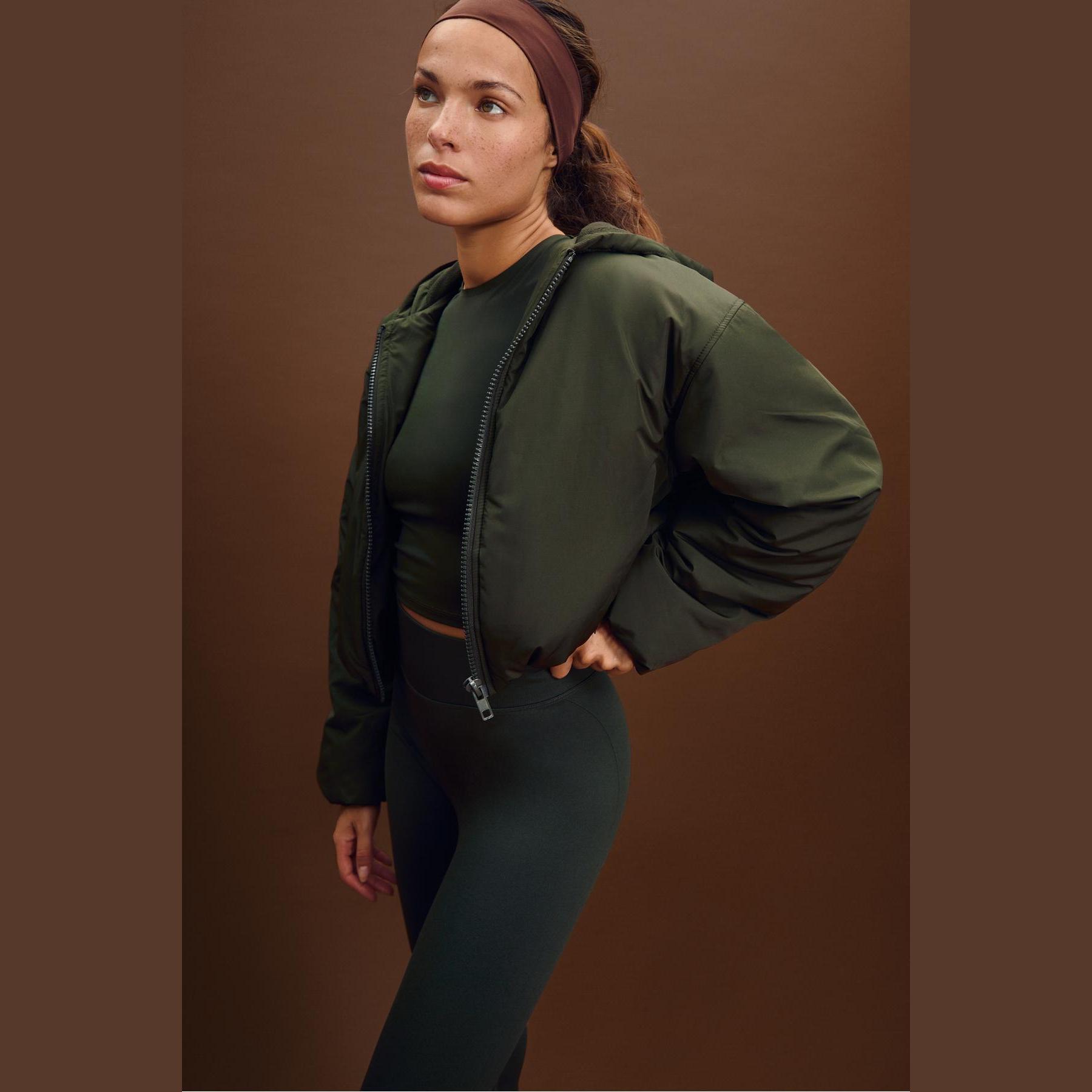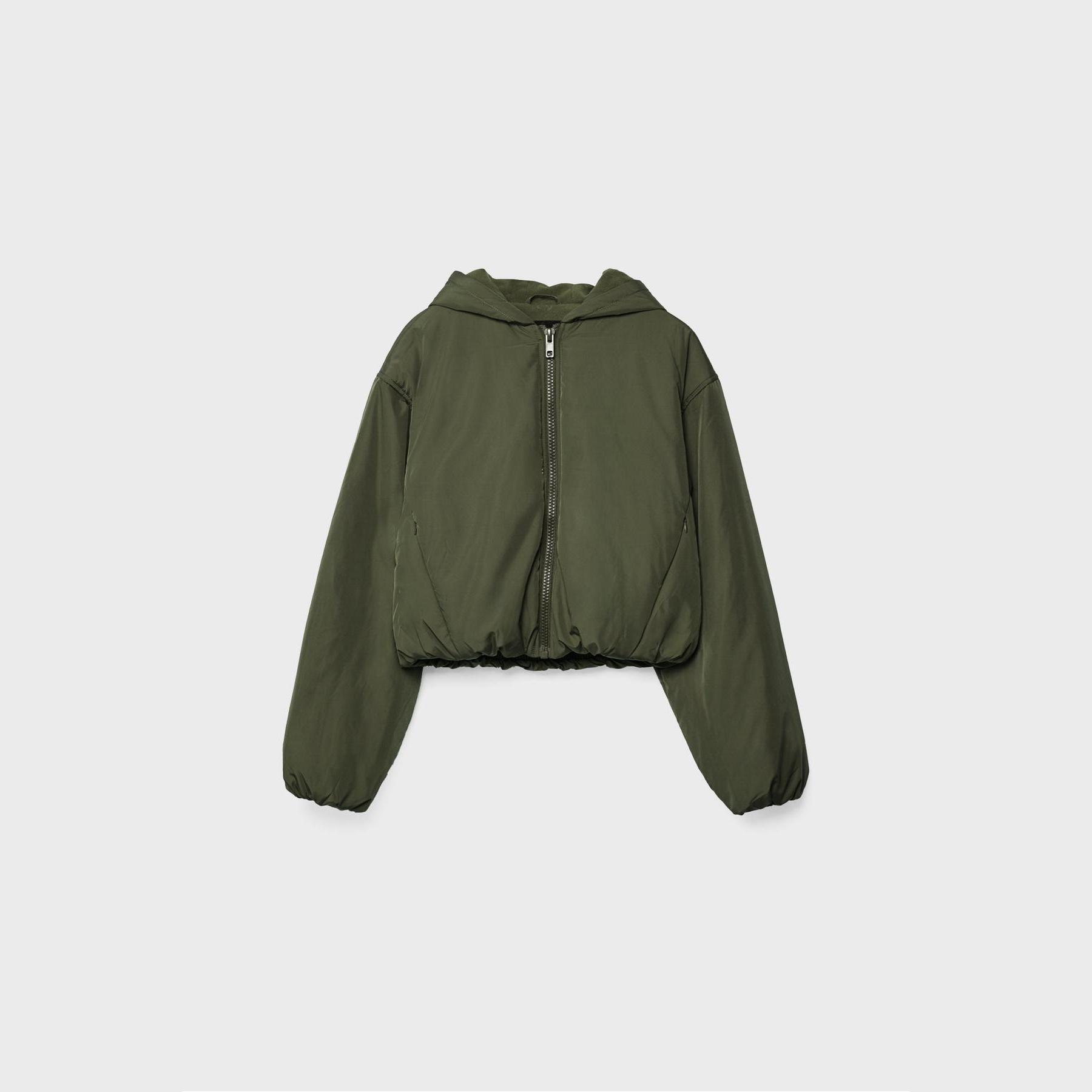 جاكيت شتوي قصير مبطن بنقشة كابيتوني – زيتي من Stradivarius
