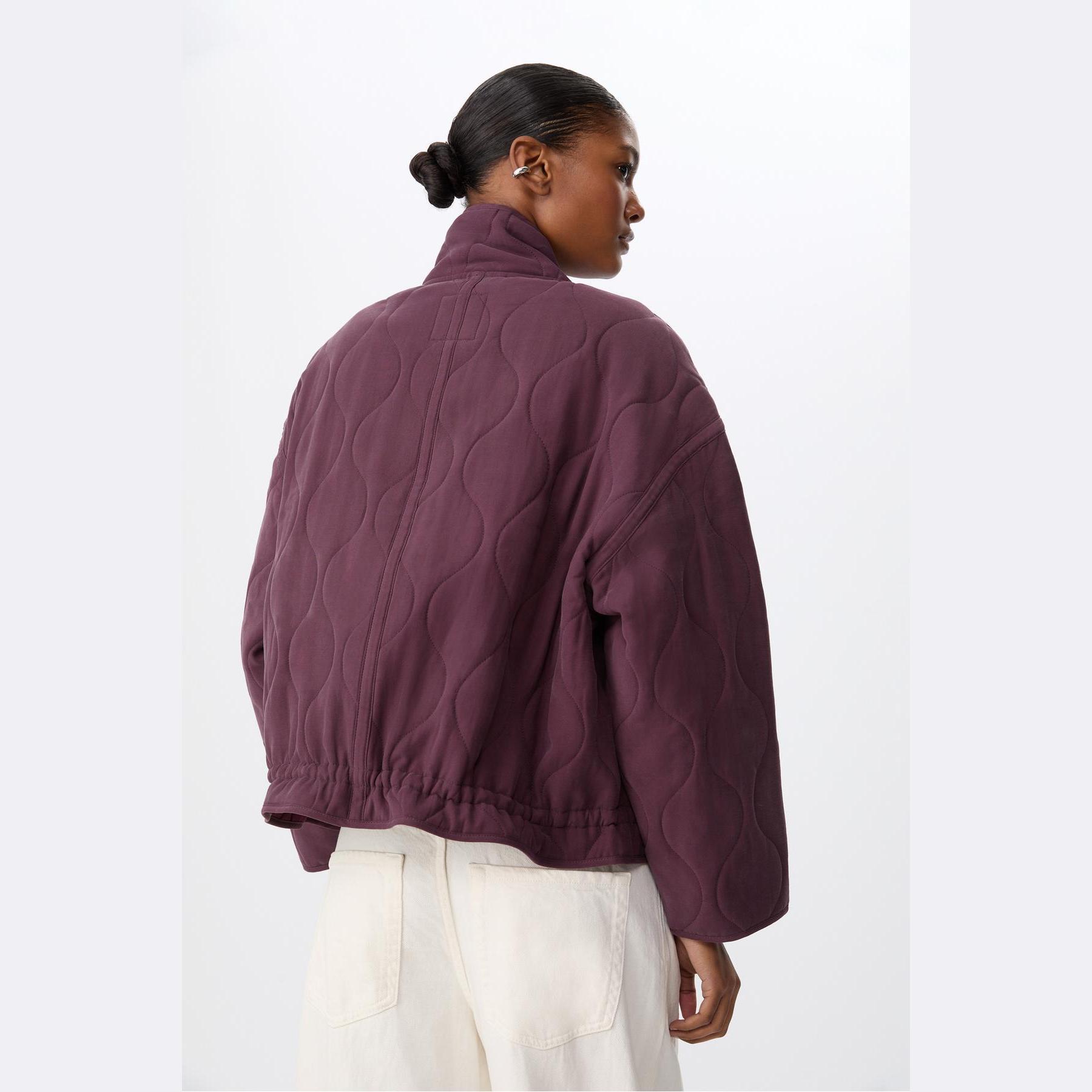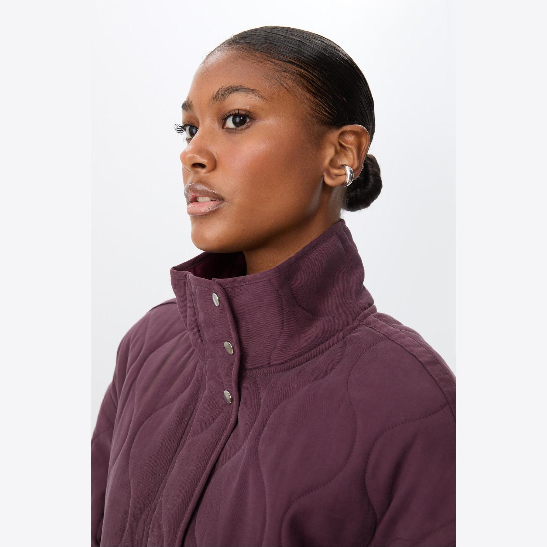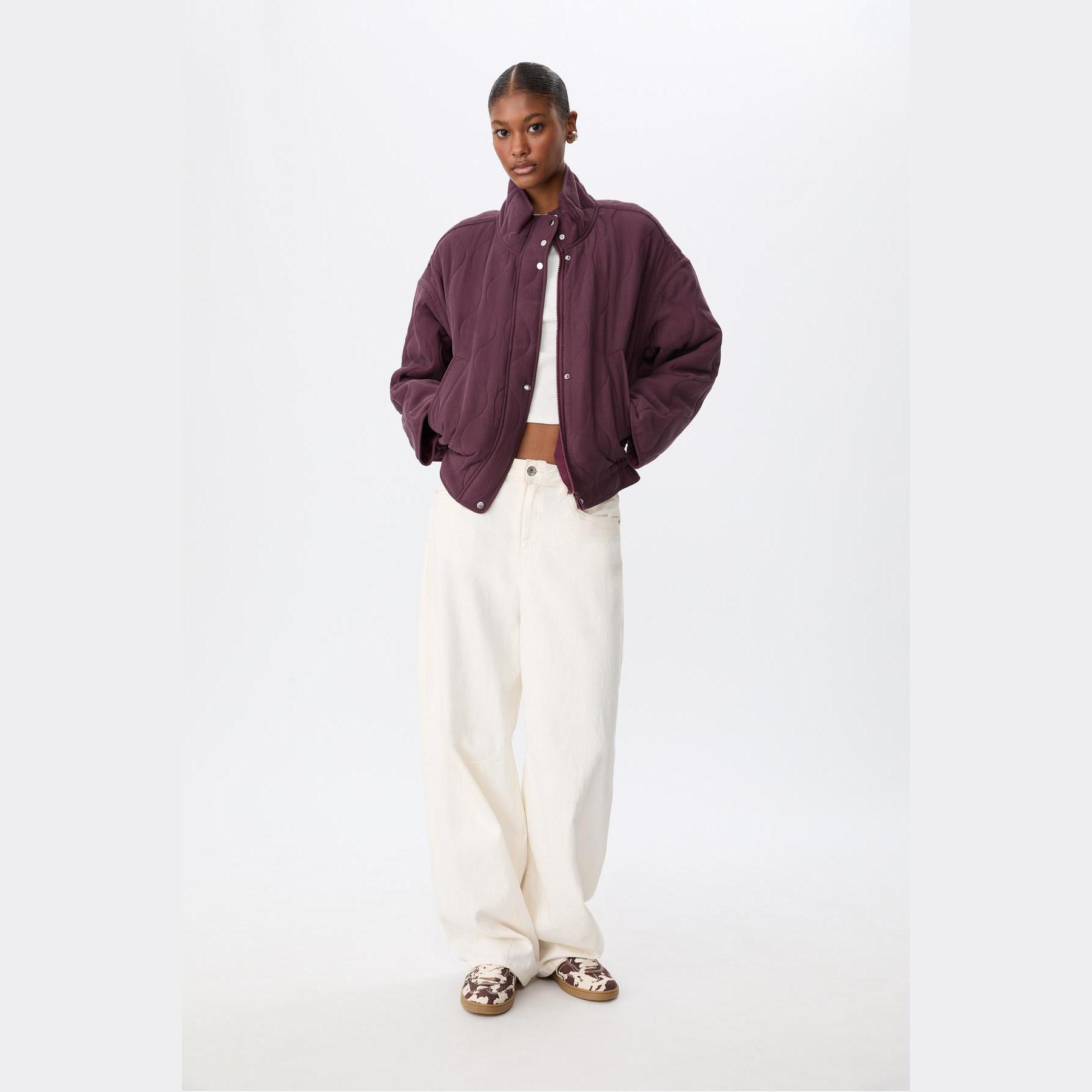 جاكيت قصير مبطن بنقشة كابيتوني وياقة عالية – بوردو من Stradivarius