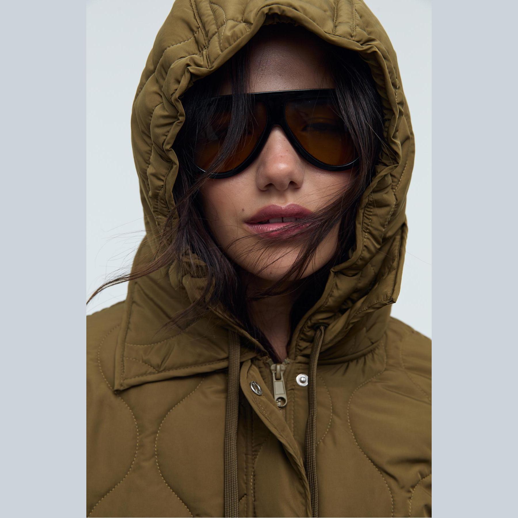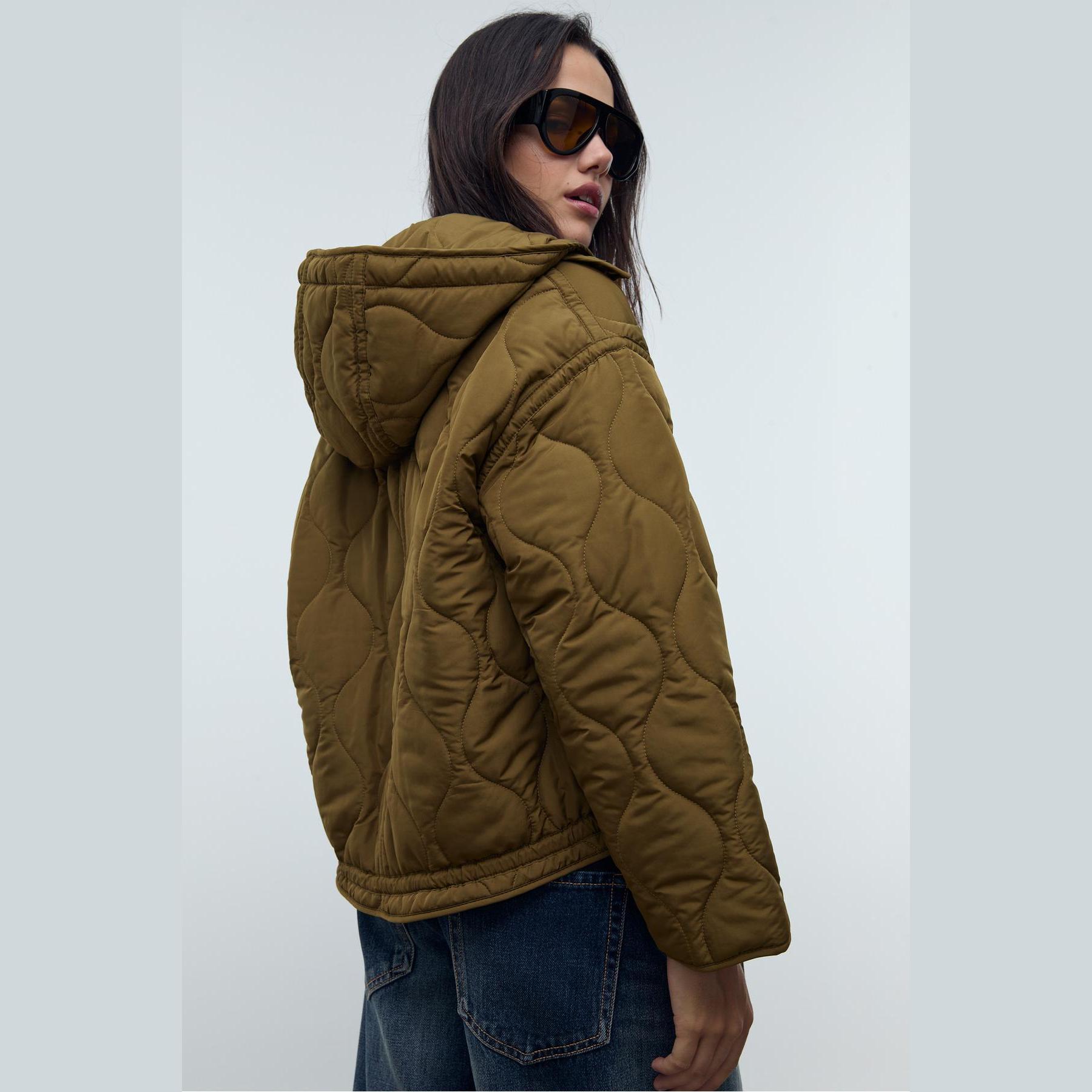 جاكيت شتوي مبطن بنقشة كابيتوني وكابيشون قابل للفصل – زيتي من Stradivarius