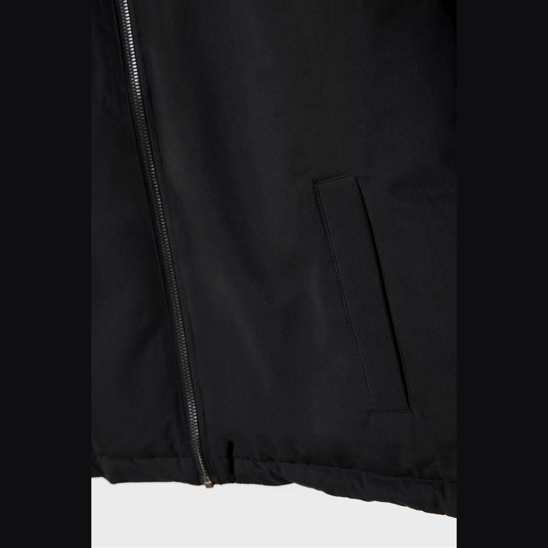 جاكيت شتوي أنيق من Stradivarius بلون أسود، مصنوع من خامة Dokuma بتركيبة 100% بوليستر، يتميز بقصة Regular Fit، ياقة Dik Yaka عالية، أكمام طويلة، إغلاق أمامي بسحاب معدني، مزود بجيوب جانبية بِييه، تصميم Kapitone بنقشة مربعات، مبطن بالكامل، ملمس ناعم وخفيف، مثالي للتنسيق مع قطع كاجوال أو رسمية لإطلالة شتوية دافئة وعصرية.