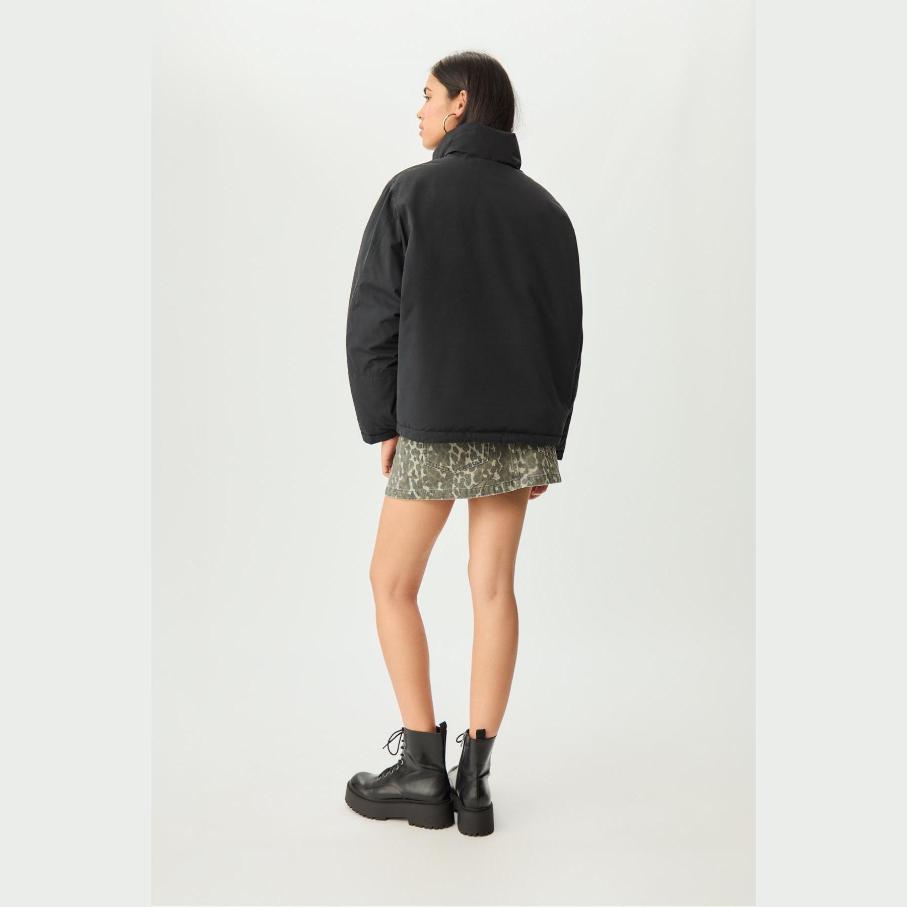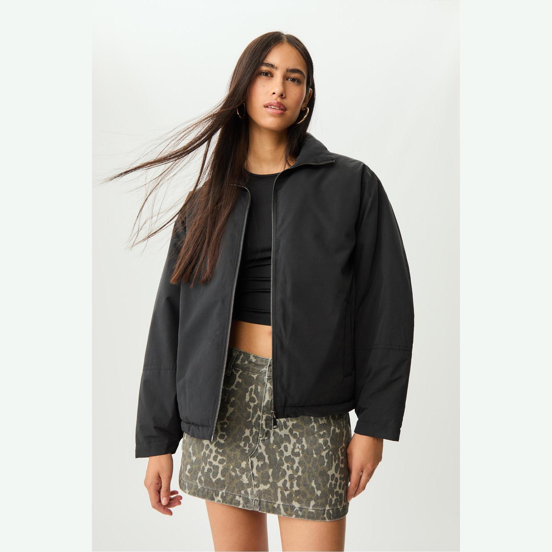 جاكيت شتوي مبطن بنقشة كابيتوني وياقة عالية – أسود من Stradivarius