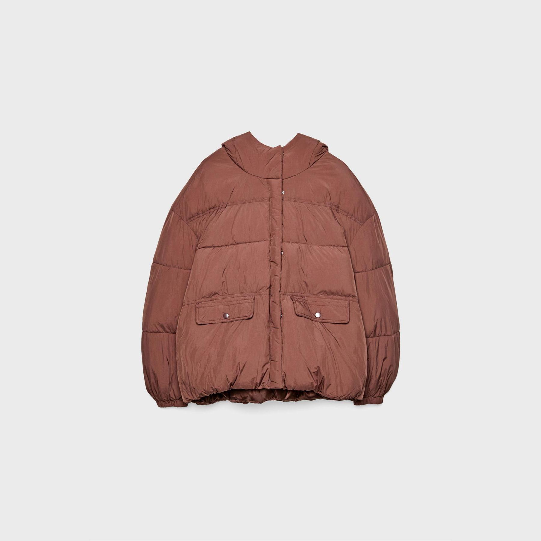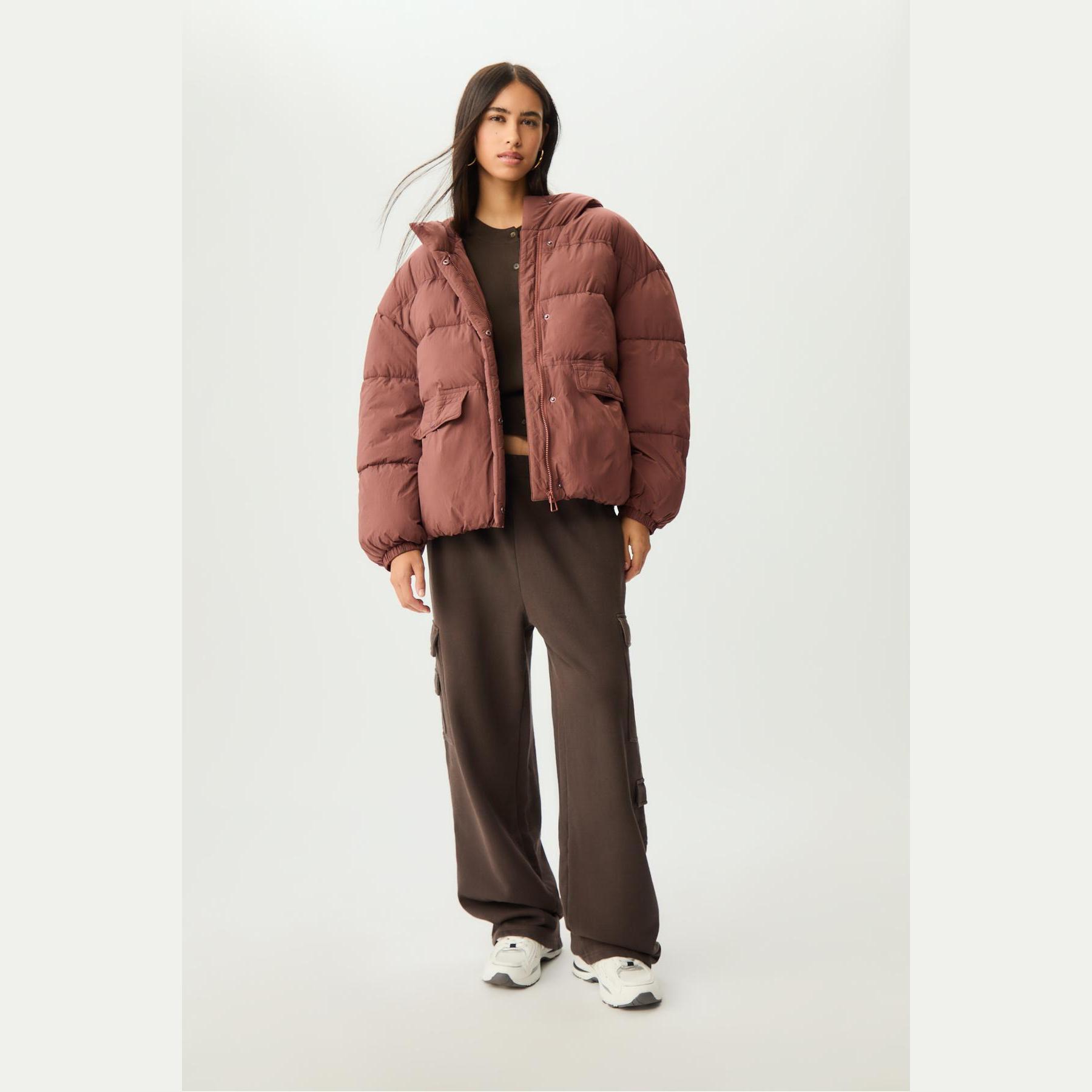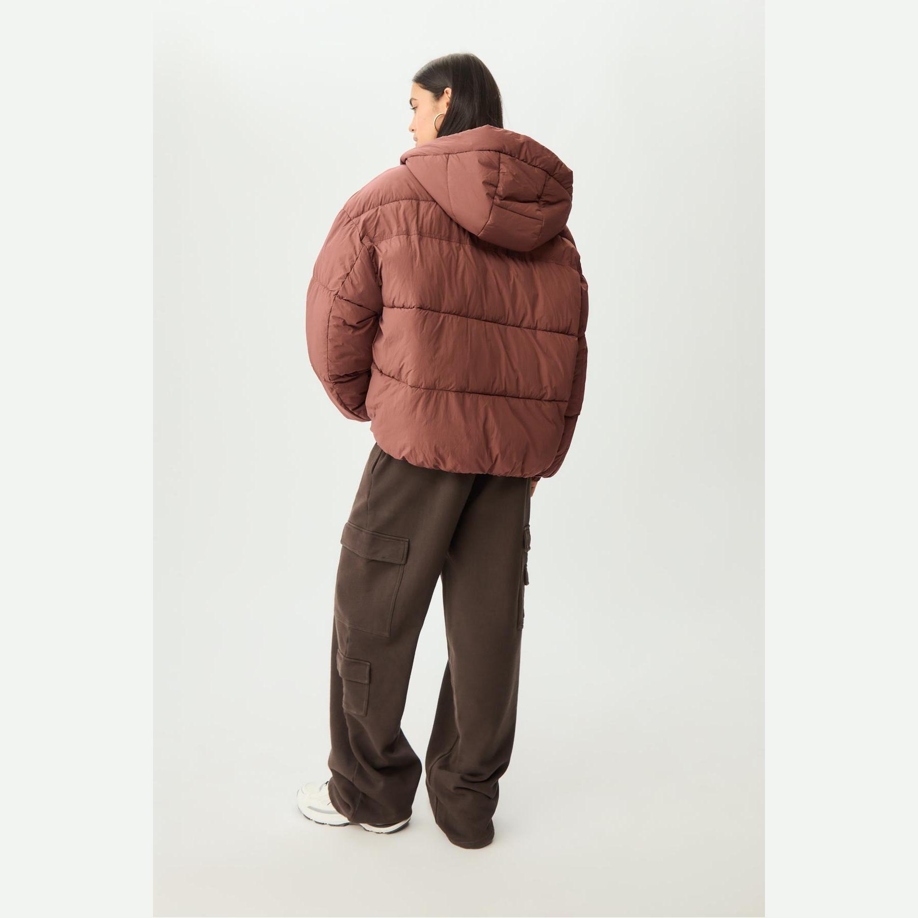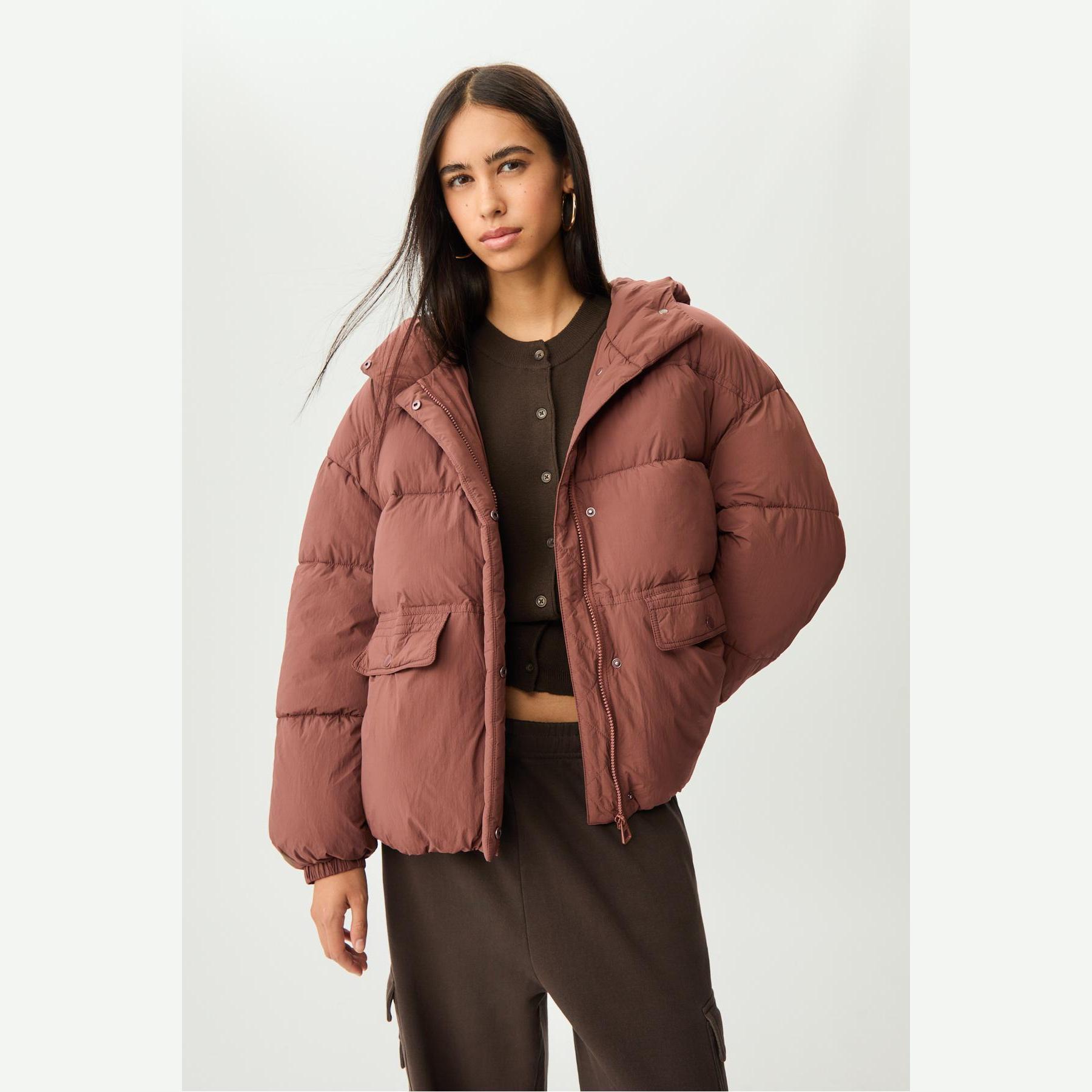 جاكيت شتوي مبطن بكابيشون وياقة عالية – بني من Stradivarius