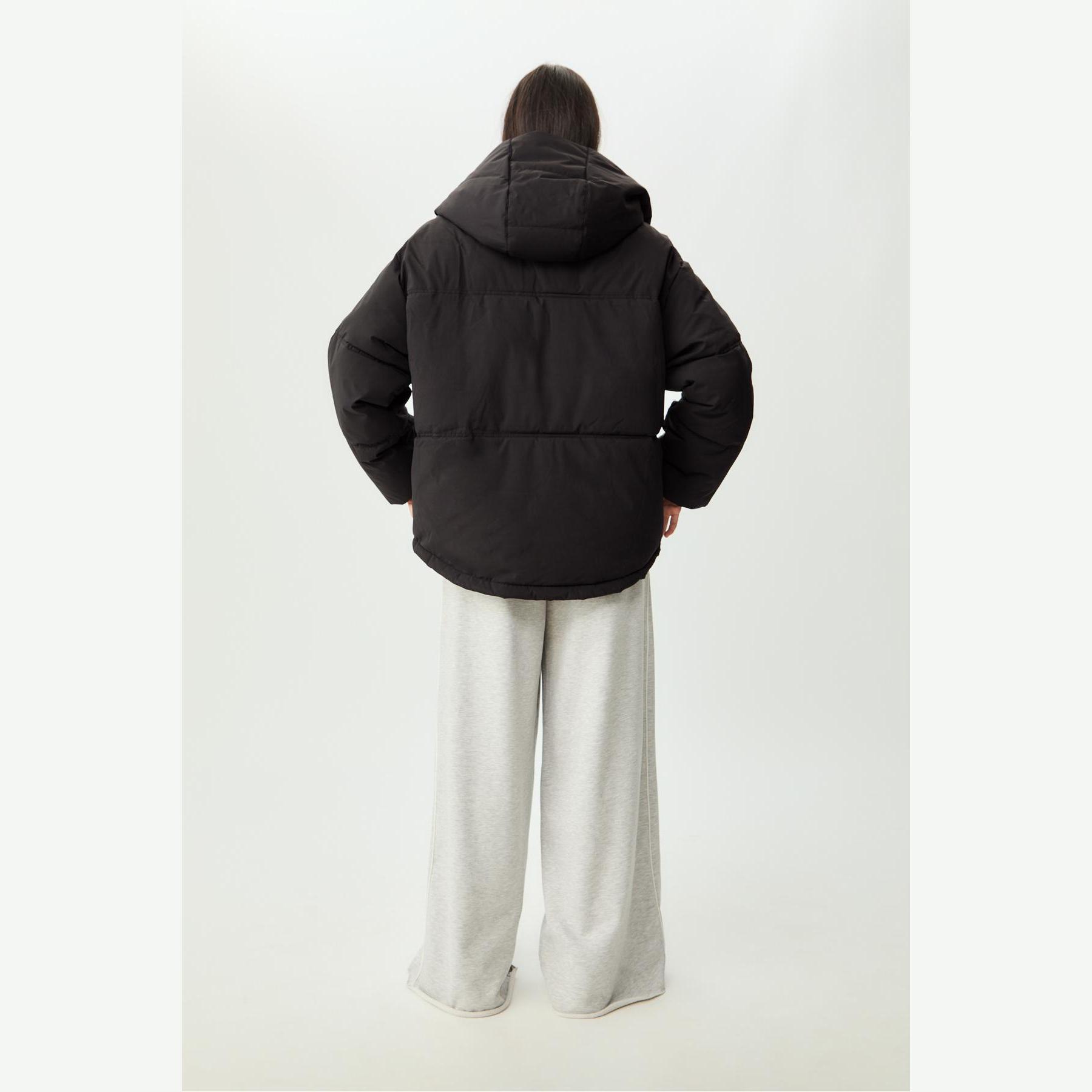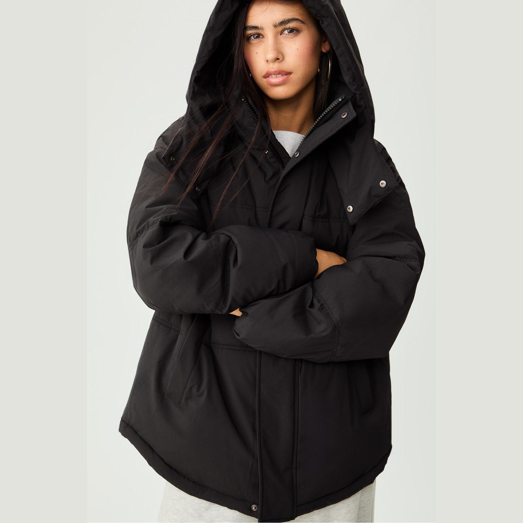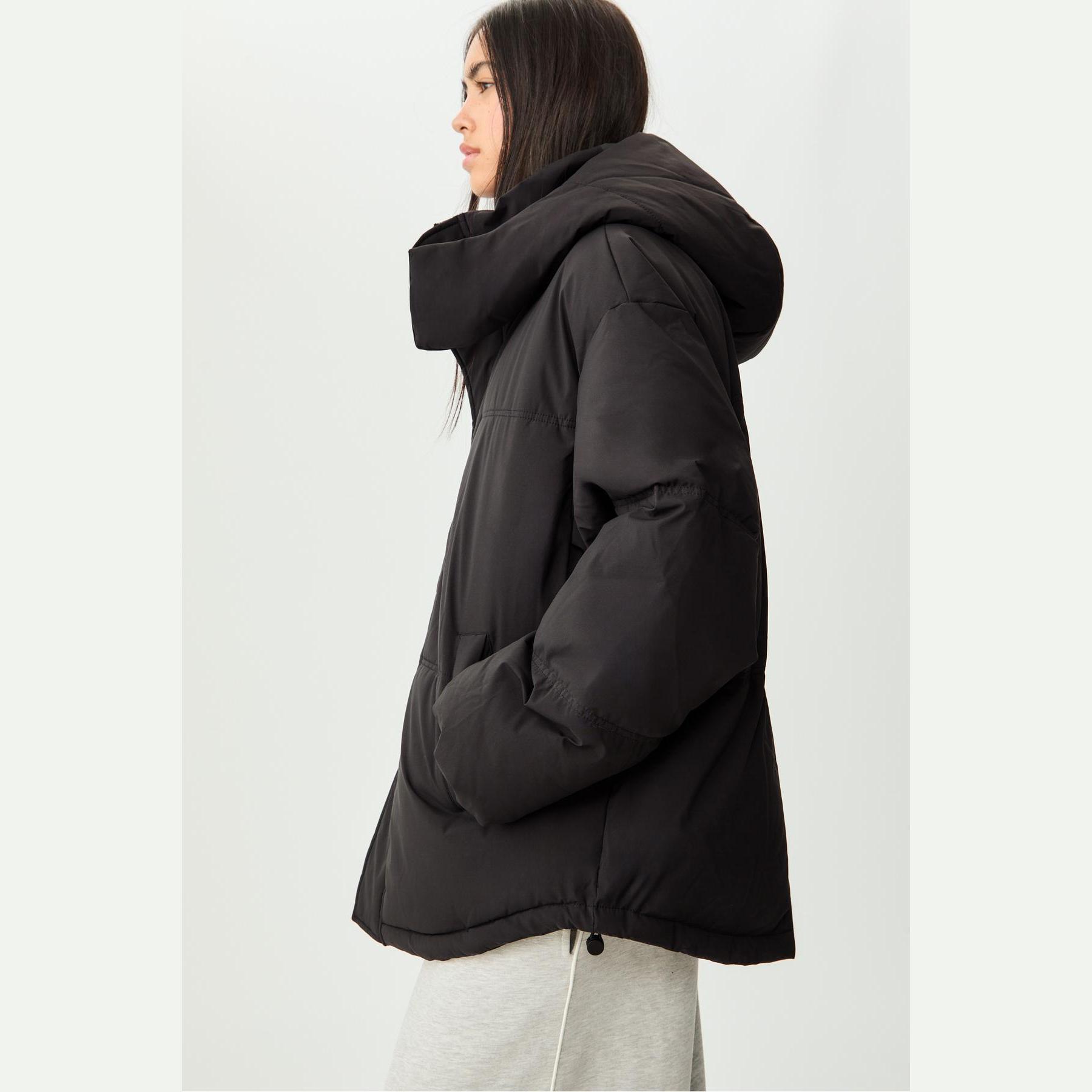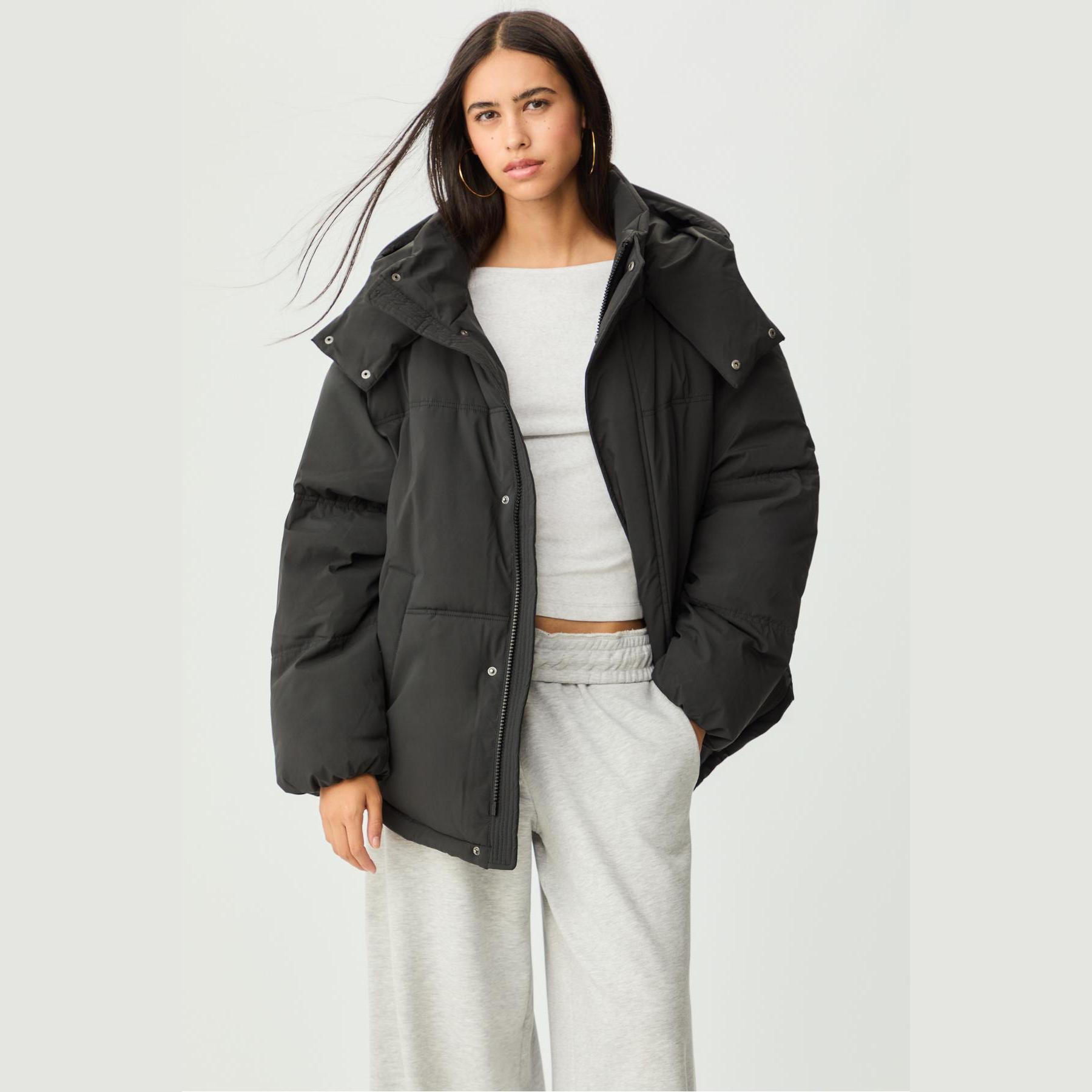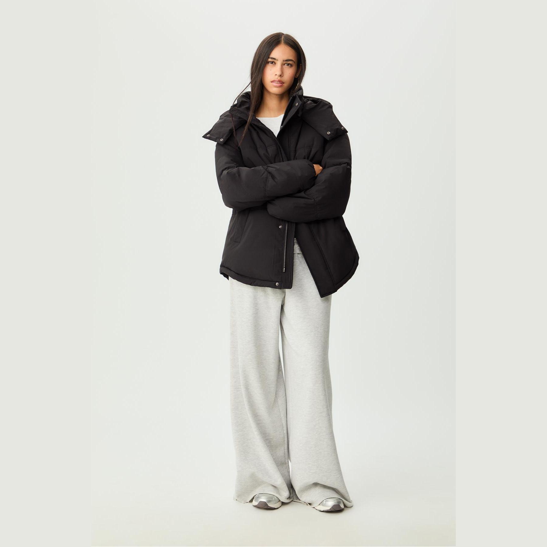 جاكيت شتوي مبطن بقصة واسعة وكابيشون قابل للتعديل – أسود من Stradivarius