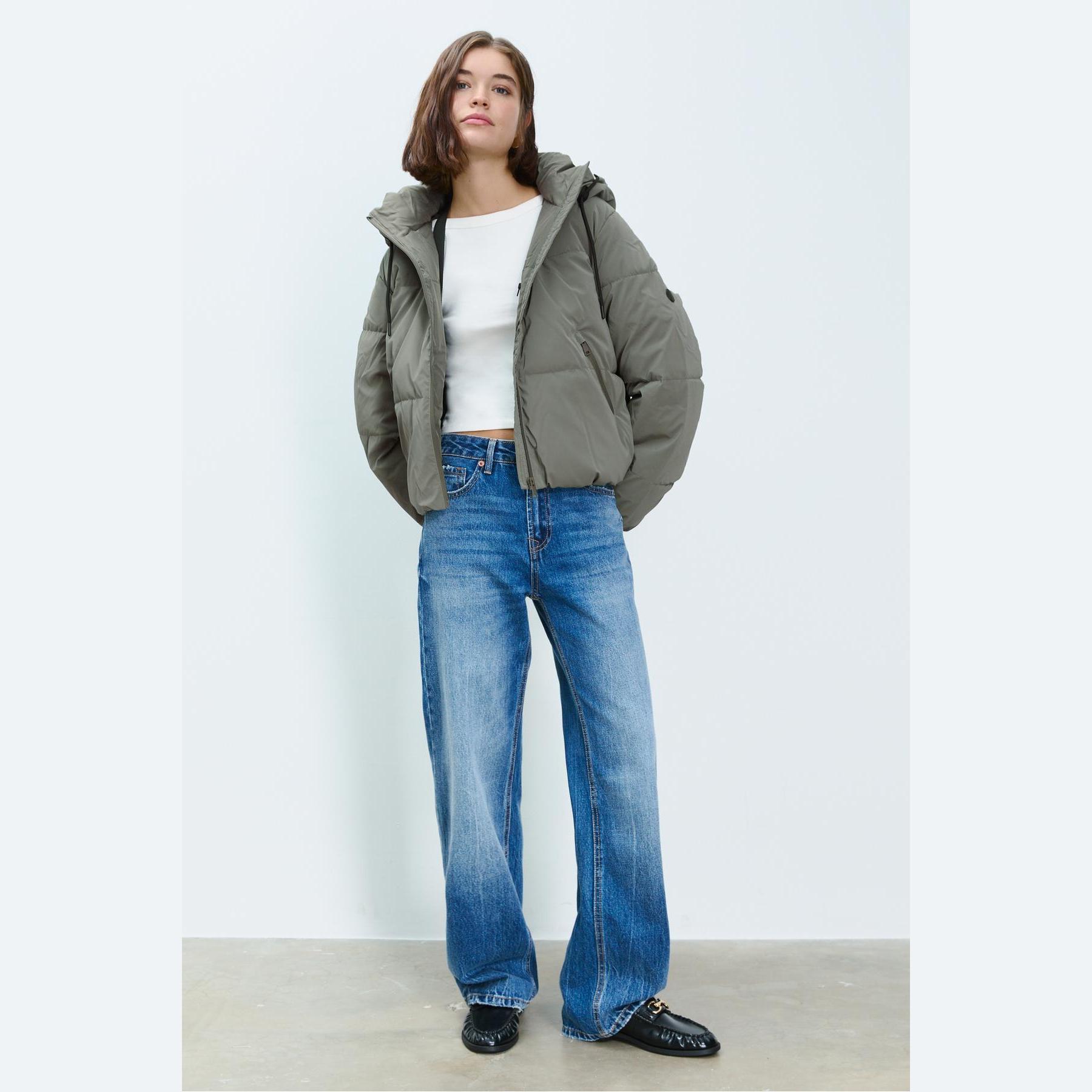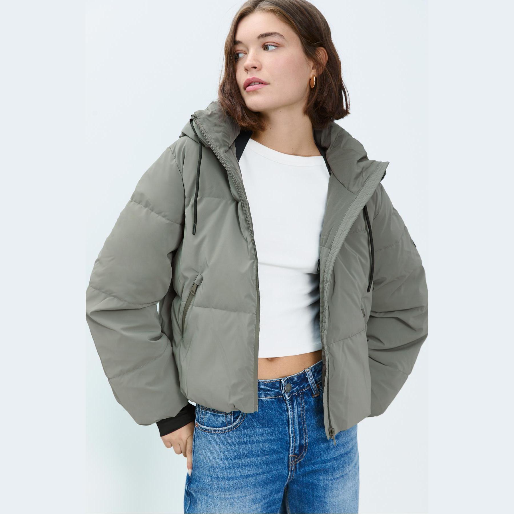 جاكيت شتوي مبطن بنقشة كابيتوني وكابيشون – زيتي من Stradivarius