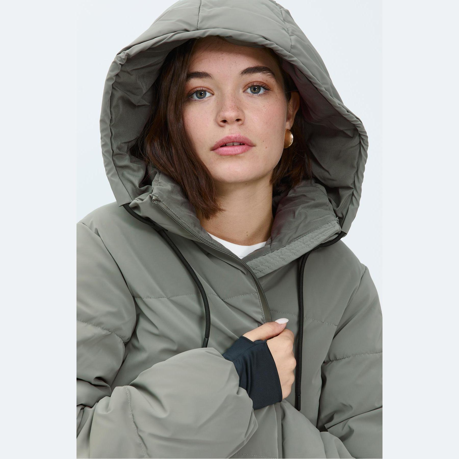 جاكيت شتوي أنيق من Stradivarius بلون زيتي، مصنوع من خامة Dokuma بتركيبة 50% بوليستر، 50% بولي يوريثان، يتميز بقصة Regular Fit، ياقة Kapüşonlu مدمجة، أكمام طويلة، إغلاق أمامي بسحاب معدني، تصميم Kapitone بنقشة مربعات Ekose، مبطن بالكامل، بدون بطانة إضافية، ملمس ناعم وخفيف، مثالي للتنسيق مع قطع كاجوال لإطلالة شتوية دافئة وعصرية.