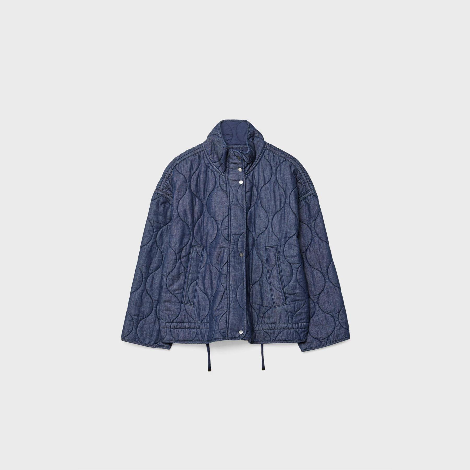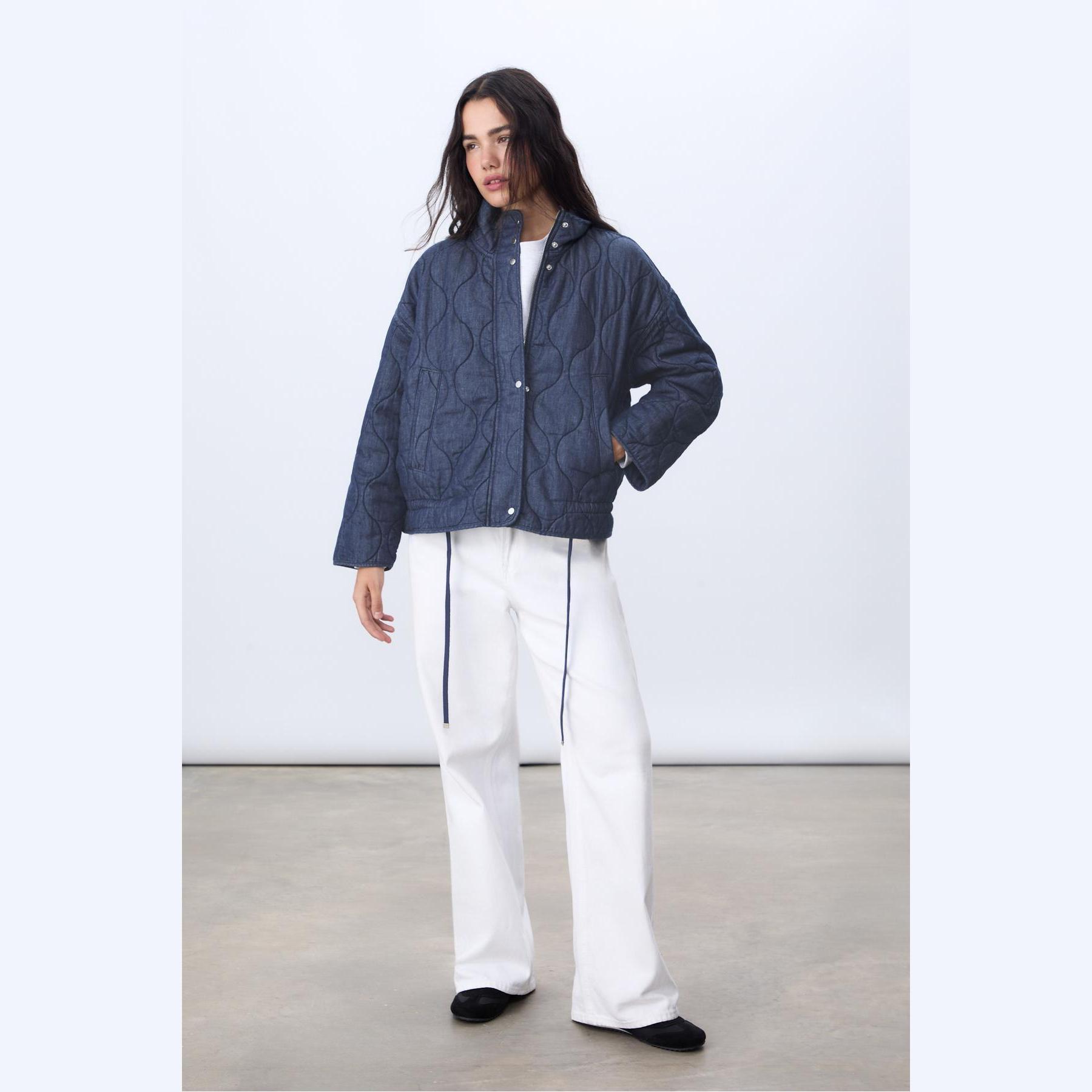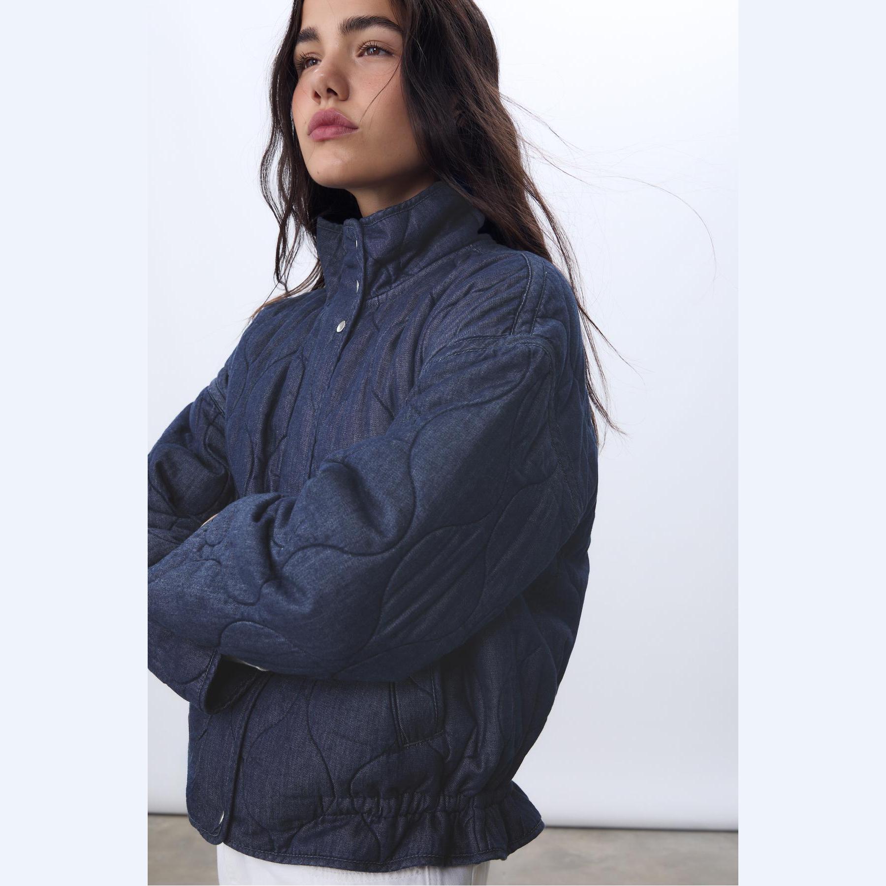 جاكيت دنيم مبطن بنقشة كابيتوني وياقة نصف عالية – كحلي من Stradivarius