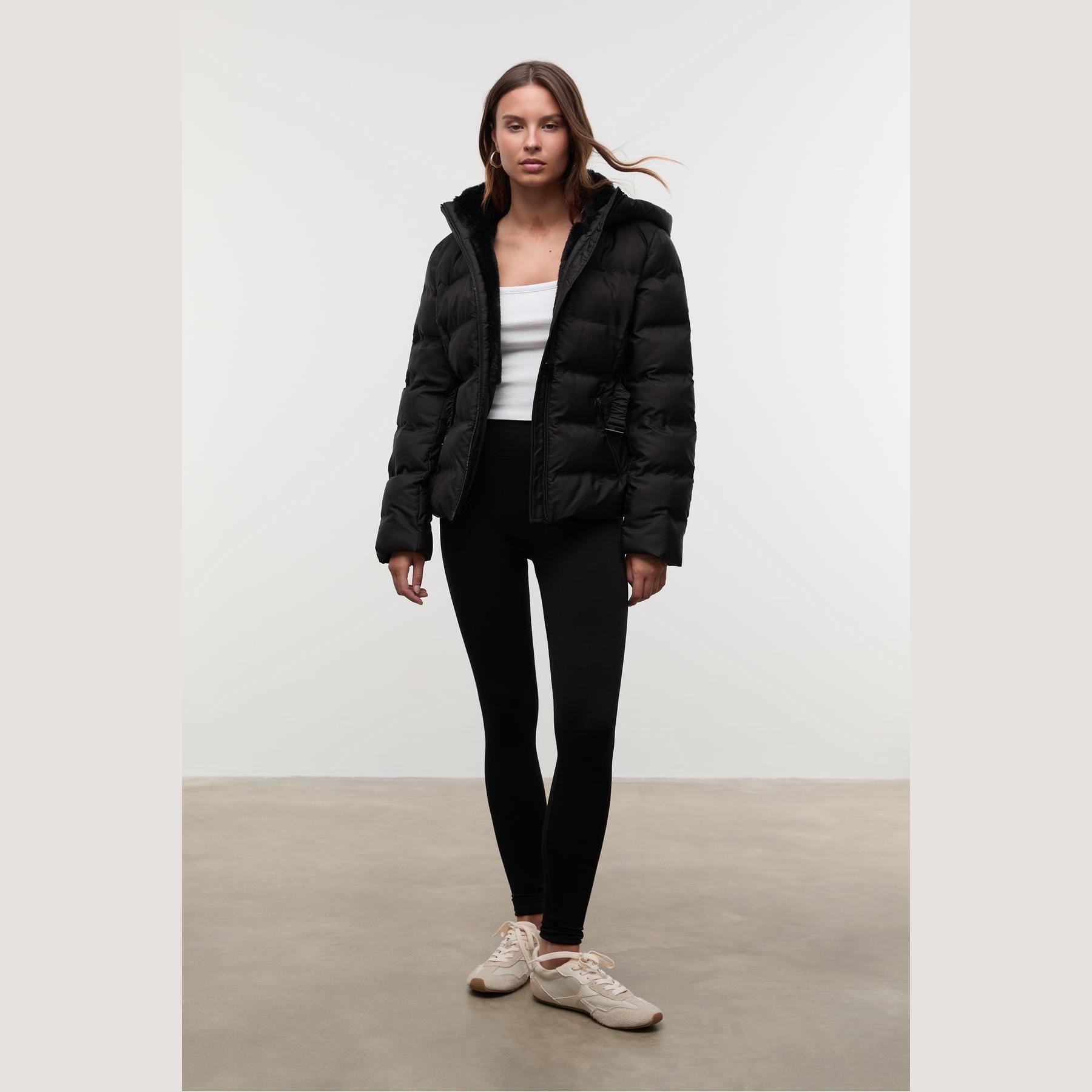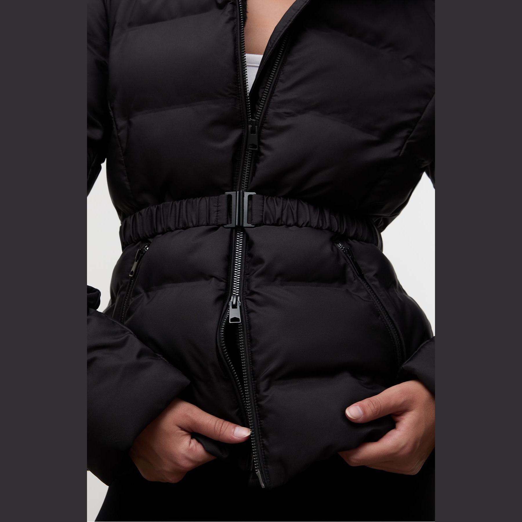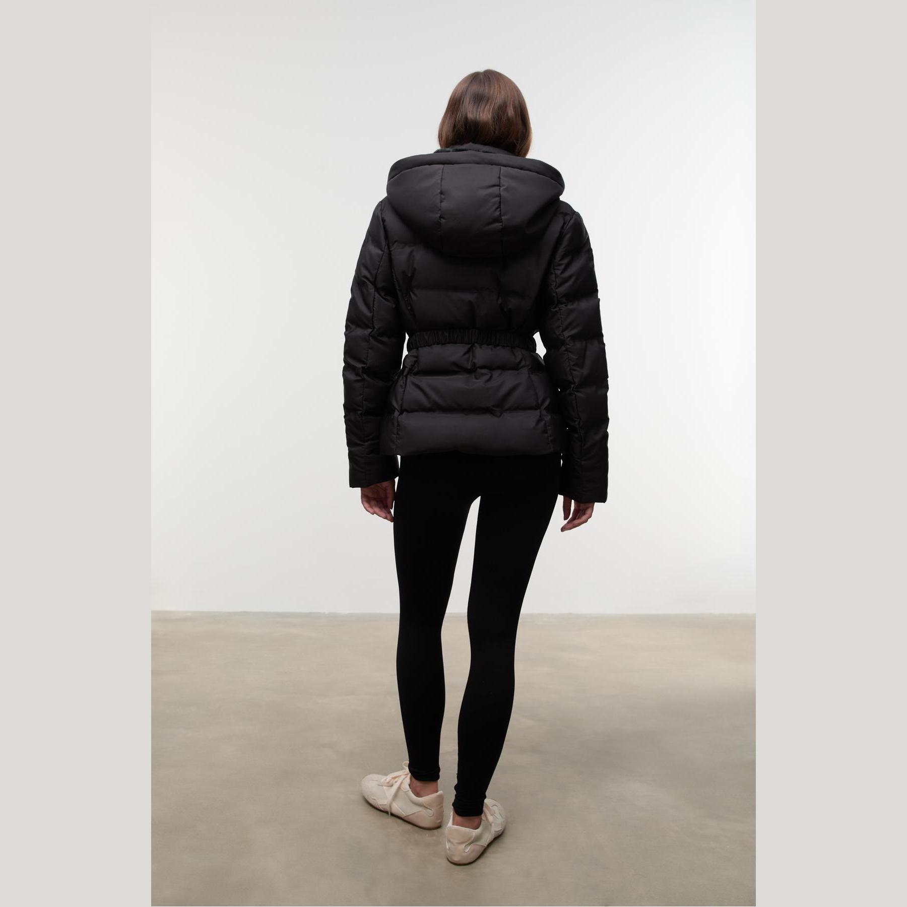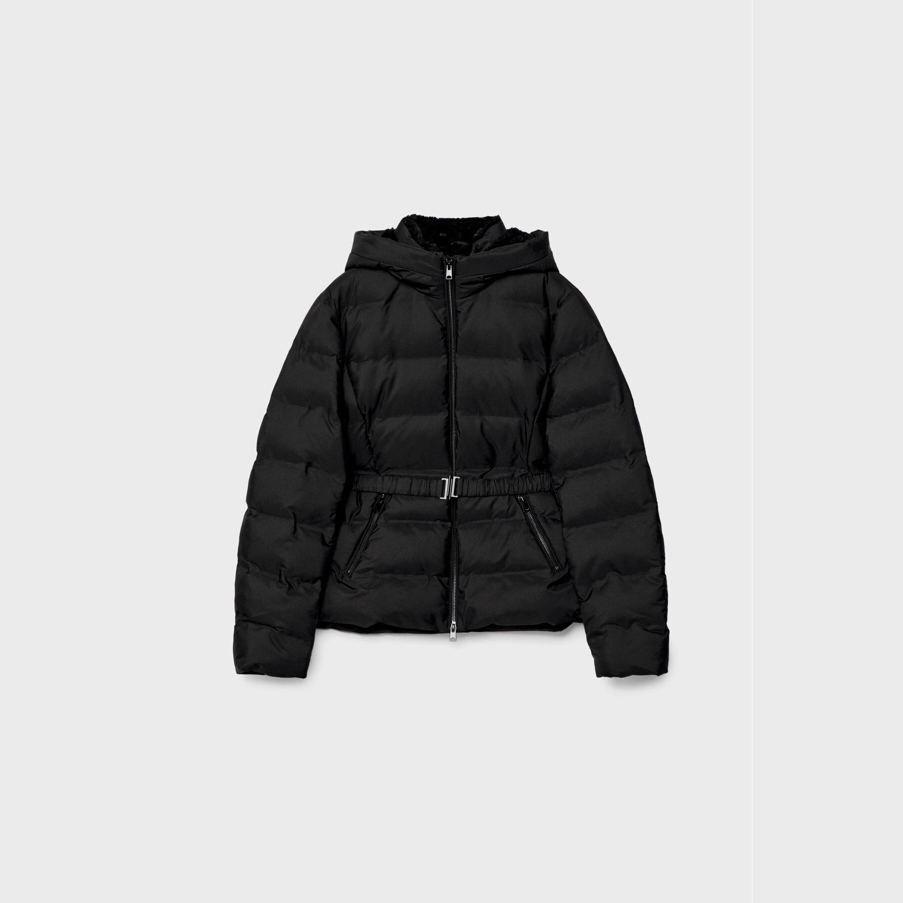 جاكيت شتوي مبطن بكابيشون وحزام خصر – أسود من Stradivarius