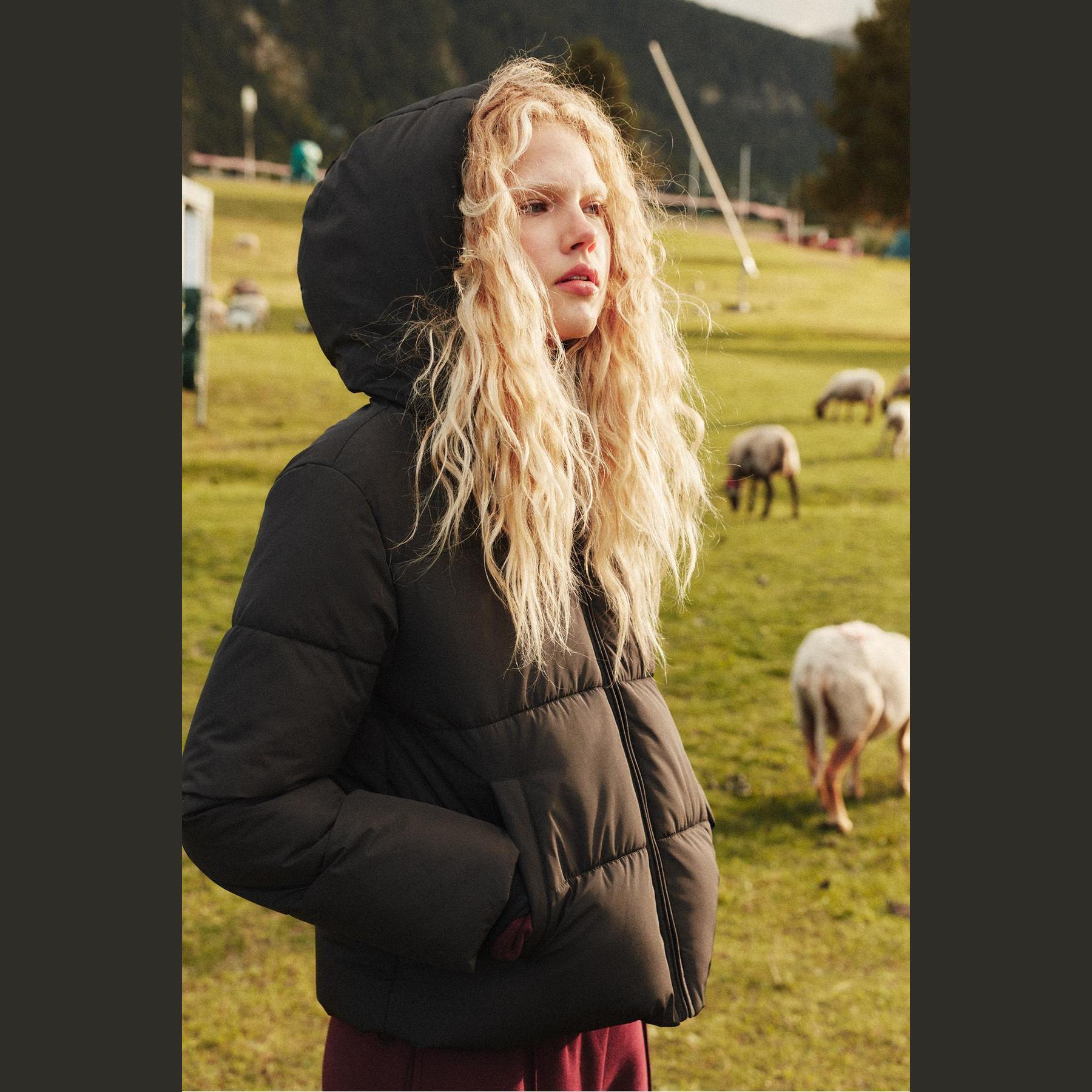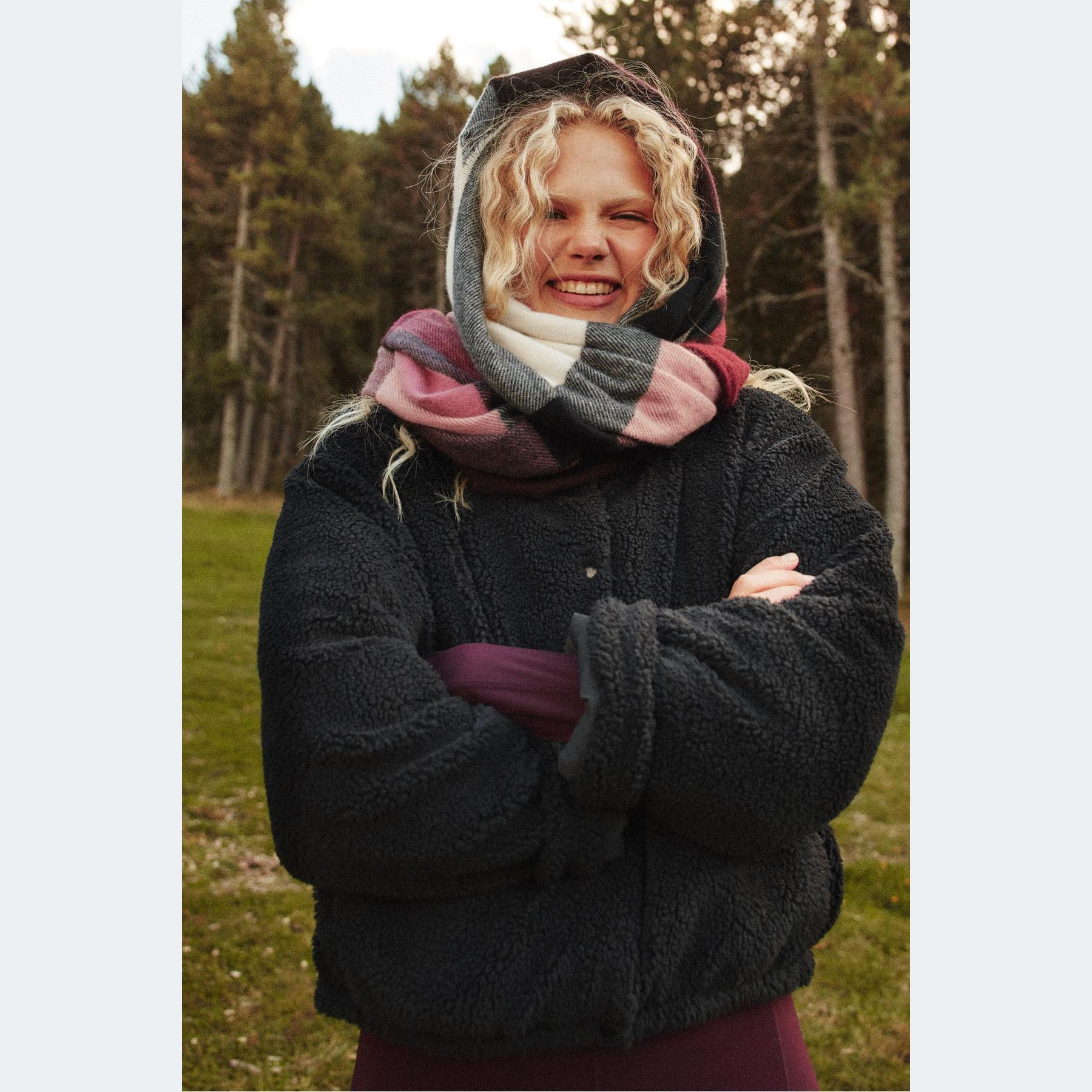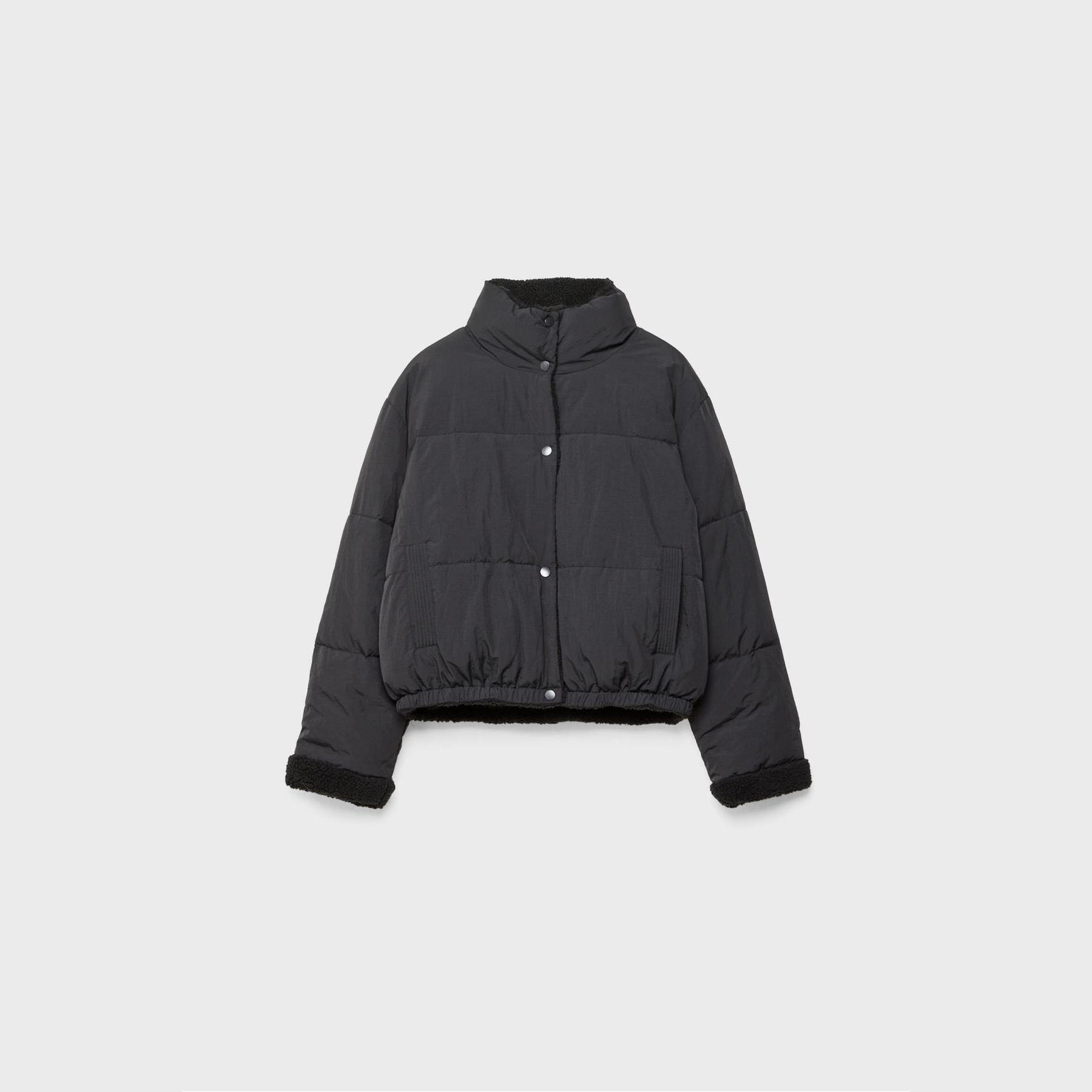 جاكيت شتوي مبطن بنقشة كابيتوني وصوف صناعي مزدوج الوجه – أسود من Stradivarius